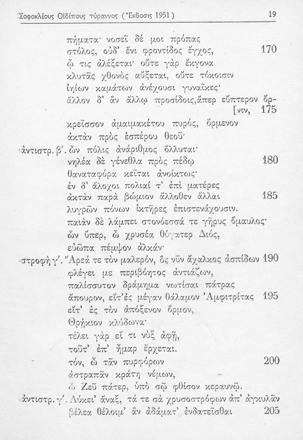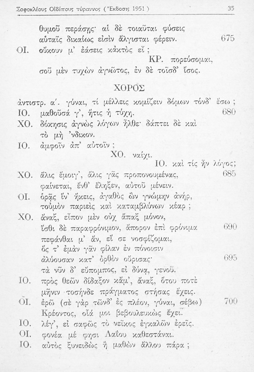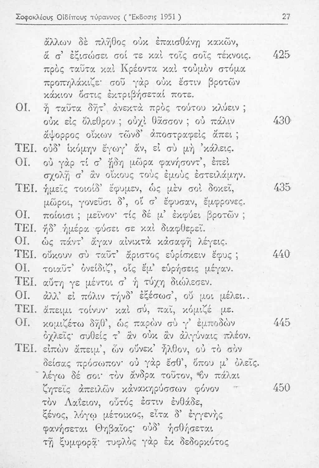 Σοφοκλέους Οιδίπους Τύραννος. Δια την ΣΤ΄ Τάξιν των Γυμνασίων