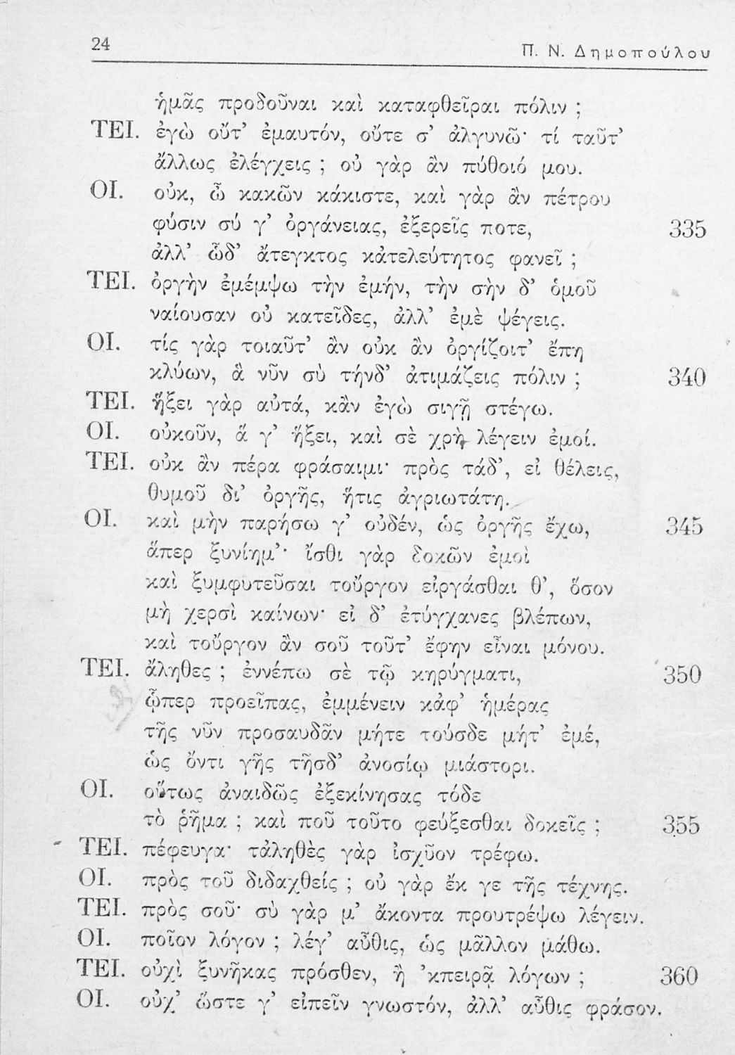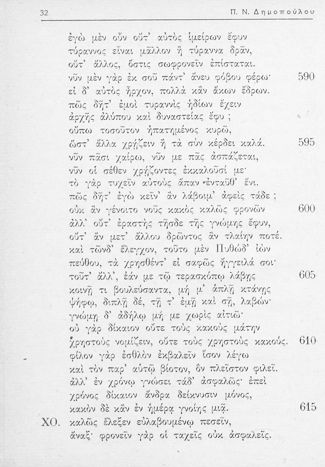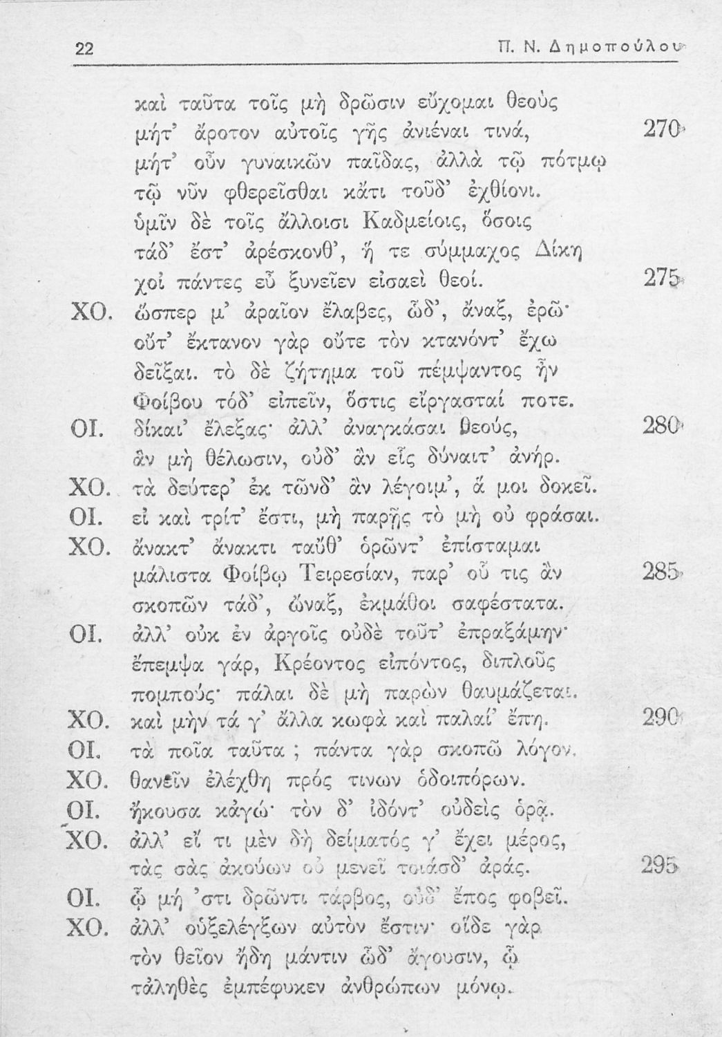 Σοφοκλής, Π.Ν Δημόπουλος (σχόλια)