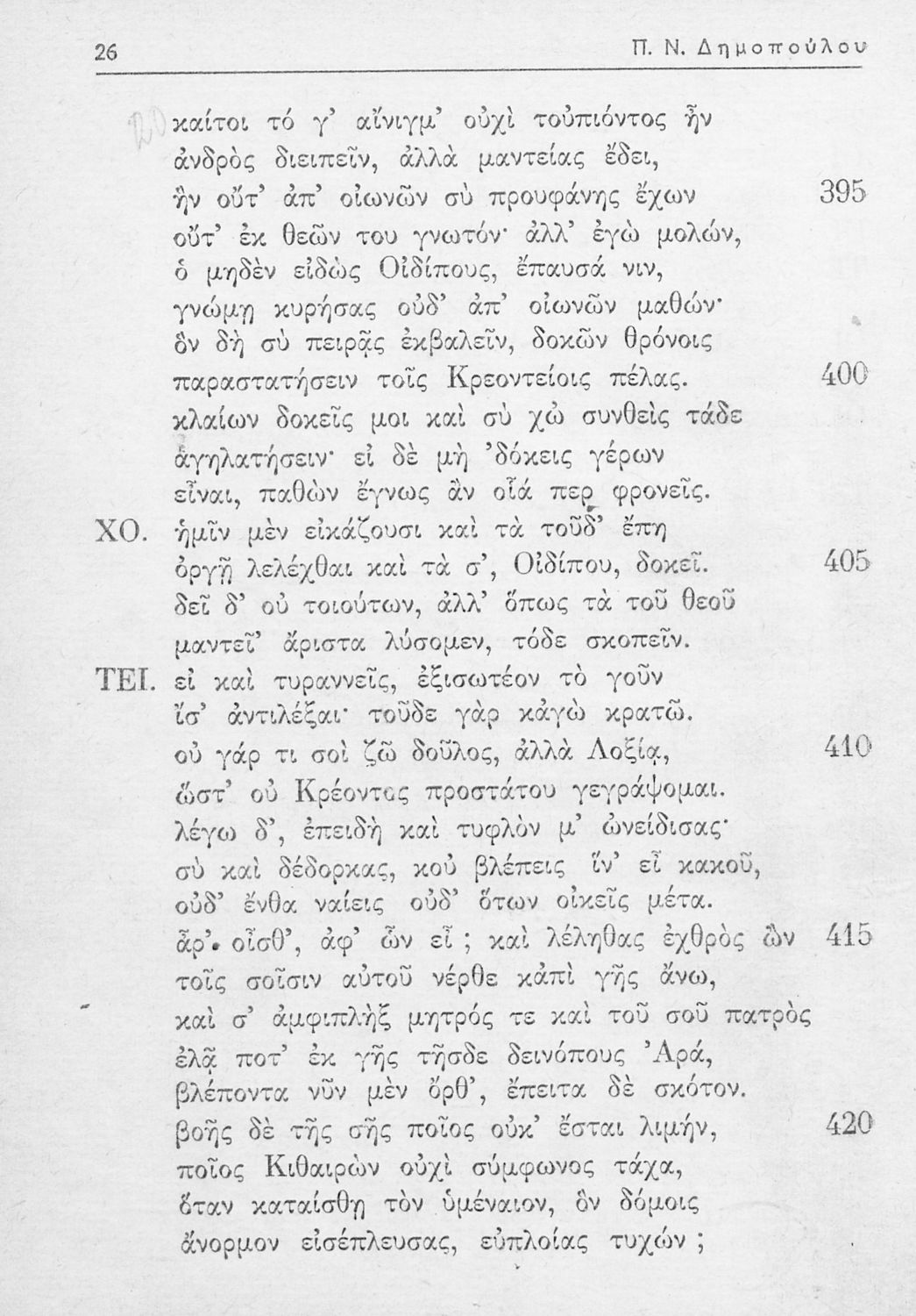 Σοφοκλής, Π. Ν. Δημόπουλος (σχόλια)