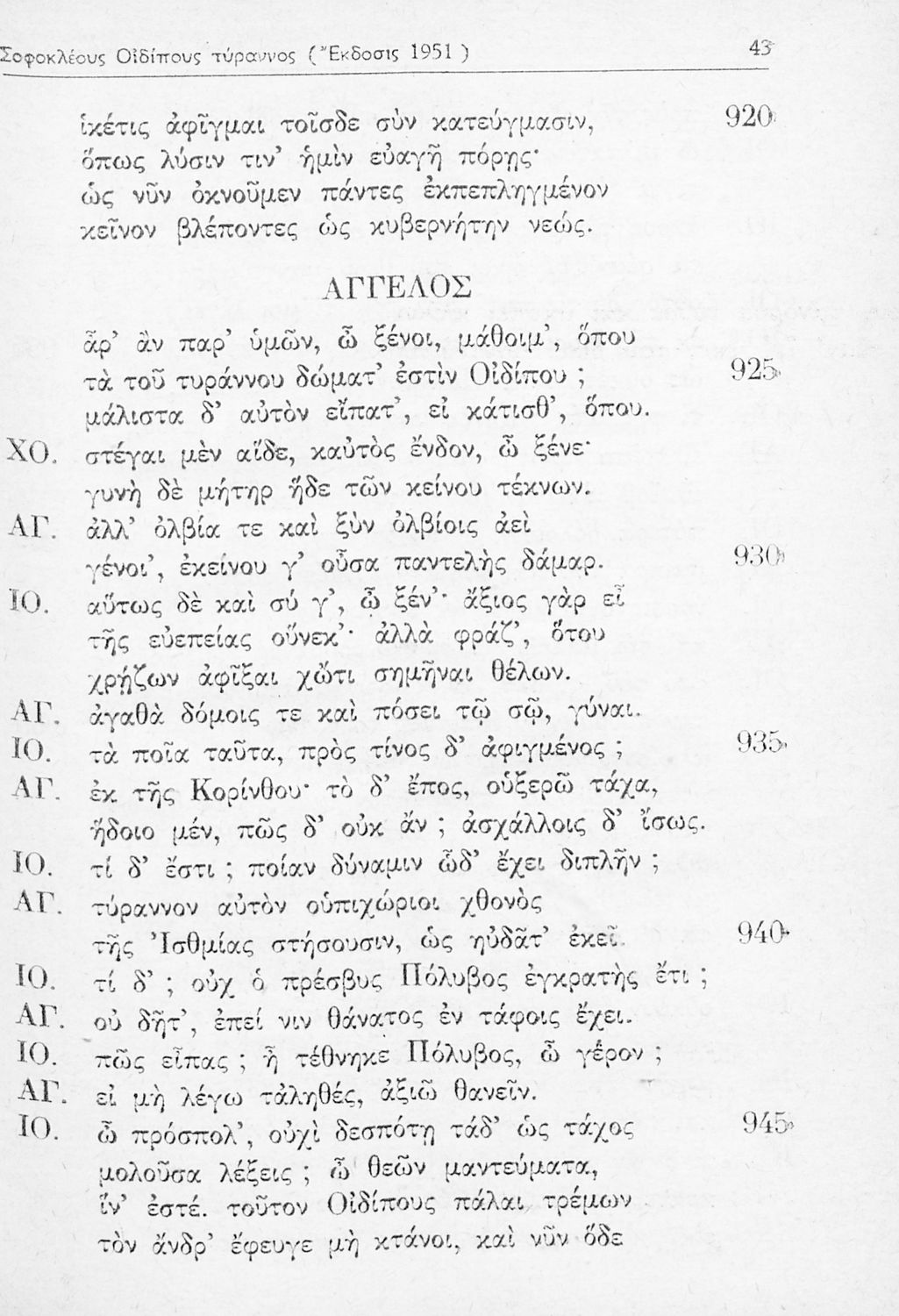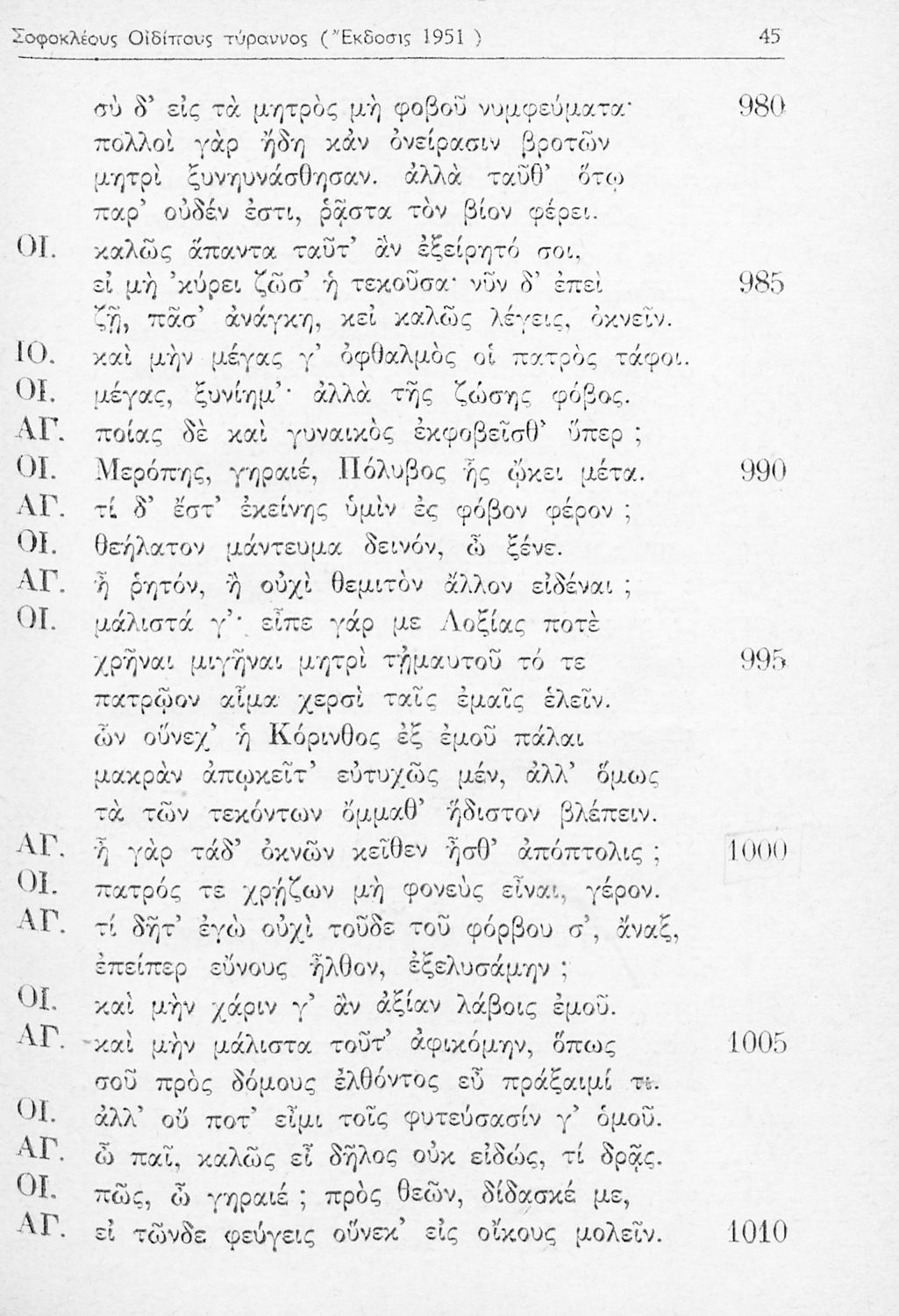 245 0# _aΣοφοκλέους Οιδίπους Τύραννος. Δια την ΣΤ΄ Τάξιν των Γυμνασίων