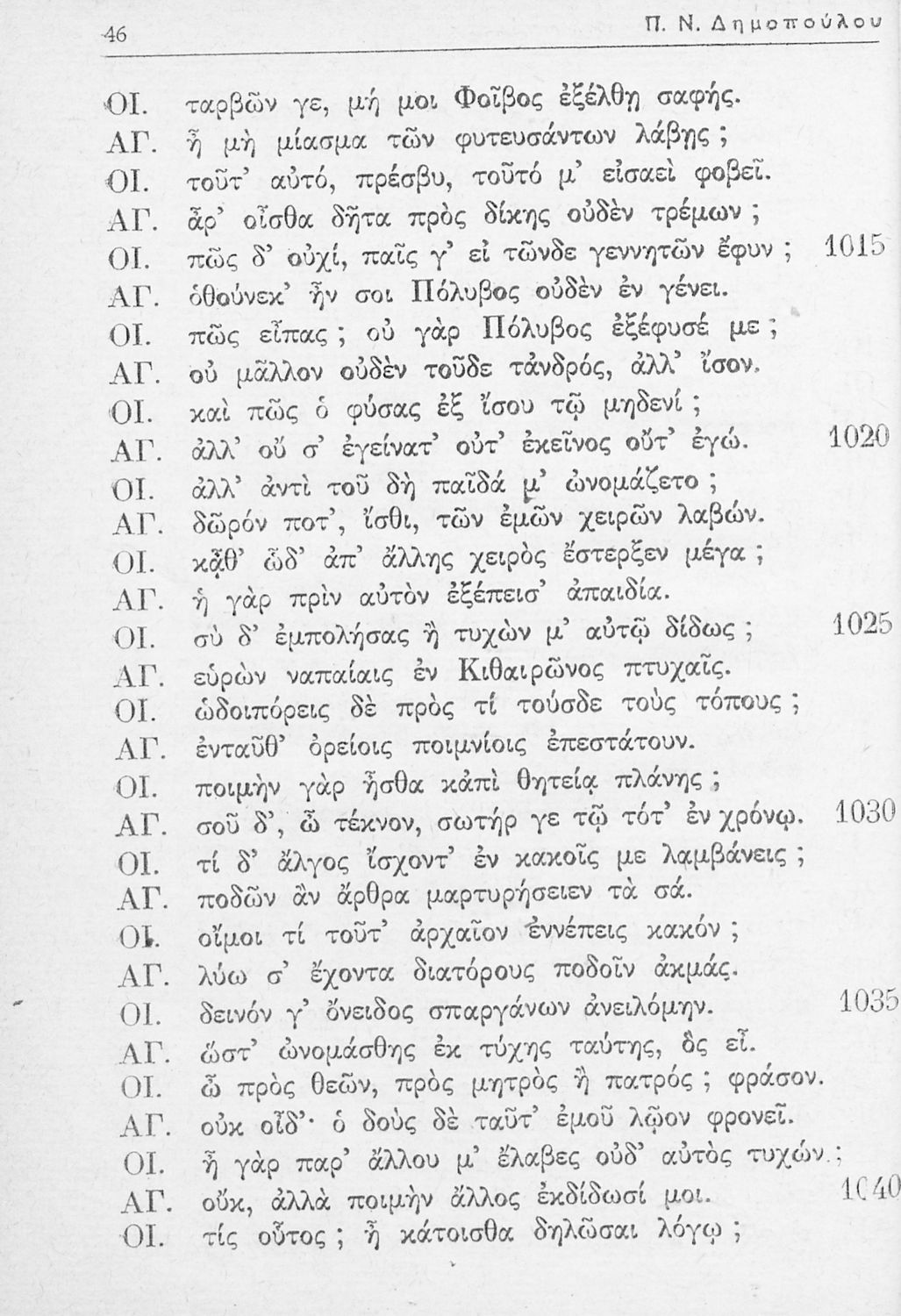 520 ## _aΤο σύγγραμμα ήταν σχολικό εγχειρίδιο για το μάθημα των Αρχαίων Ελληνικών στο Γυμνάσιο. Περιέχει το πρωτότυπο κείμενο της τραγωδίας του Σοφοκλή. Επίσης, περιλαμβάνει ερμηνευτικές και λεξιλογικές παρατηρήσεις του συγγραφέα.