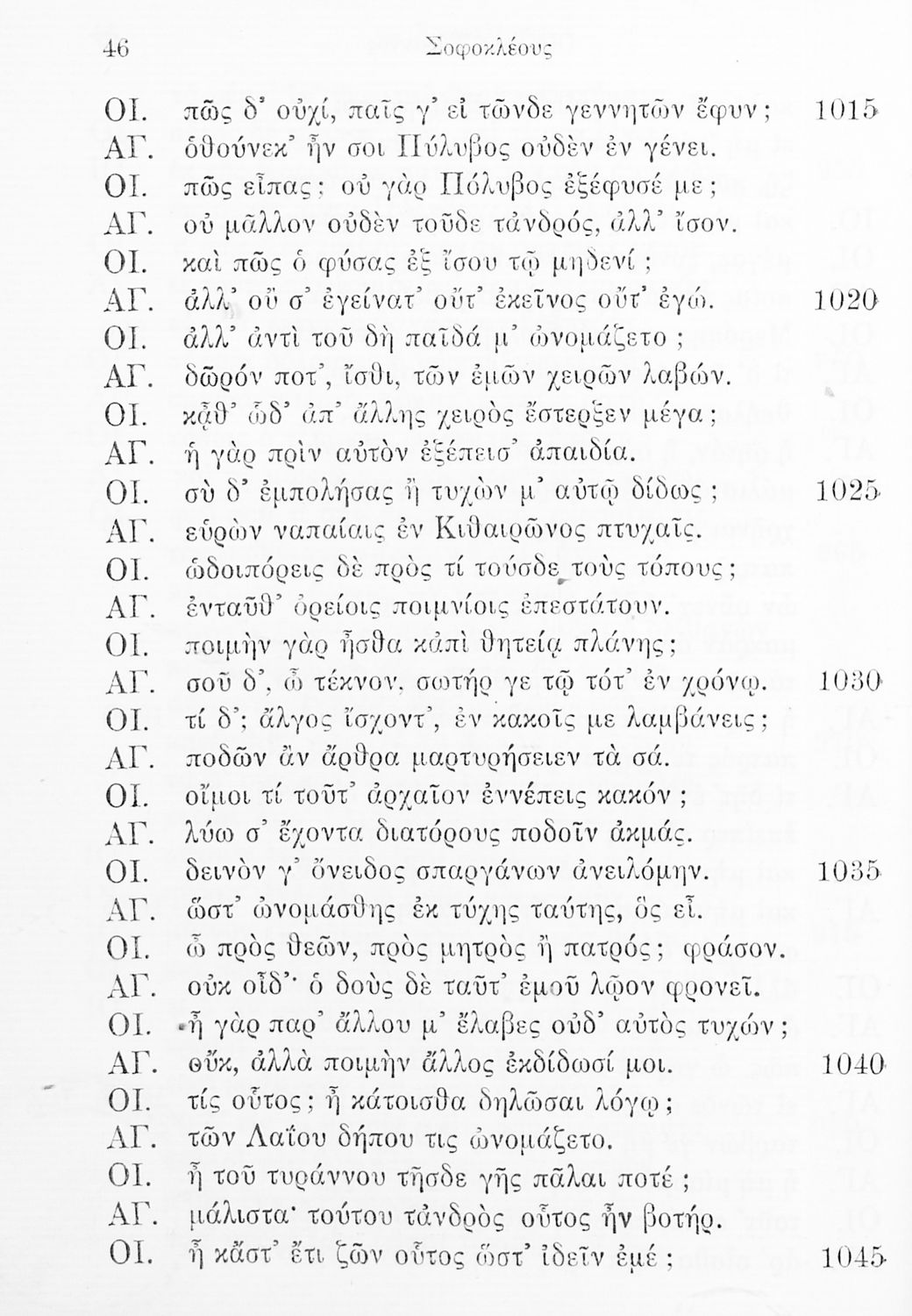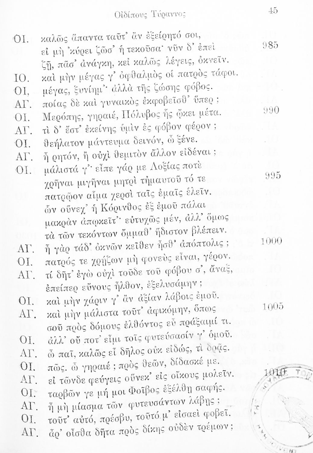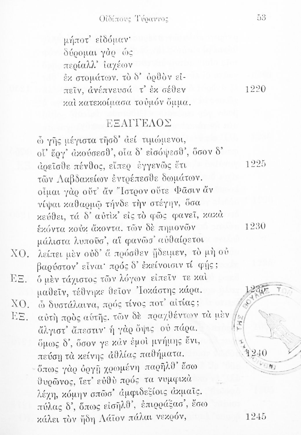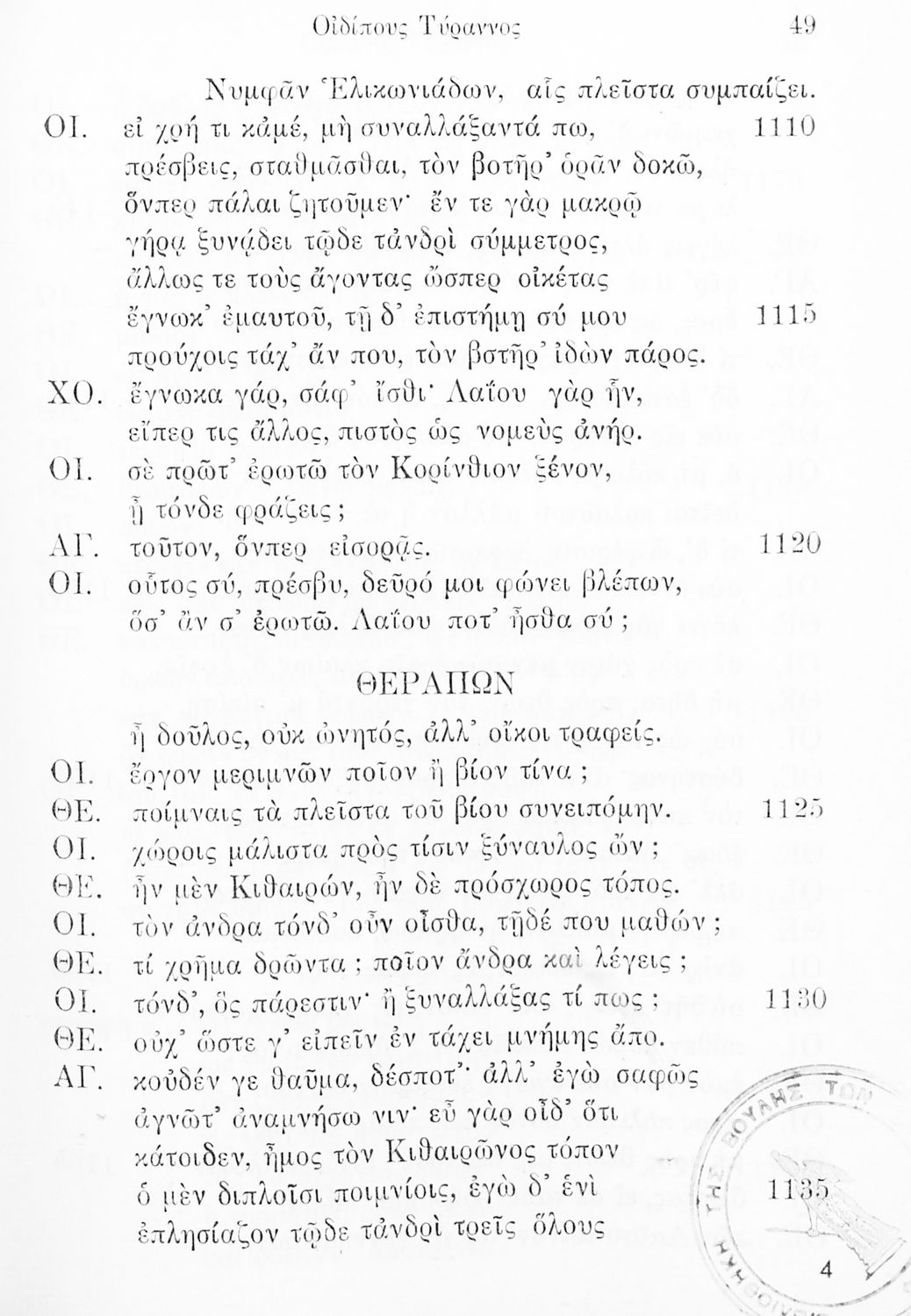 Σοφοκλέους Οιδίπους Τύραννος, δια την ΣΤ΄ τάξιν των Γυμνασίων Π. Τ.