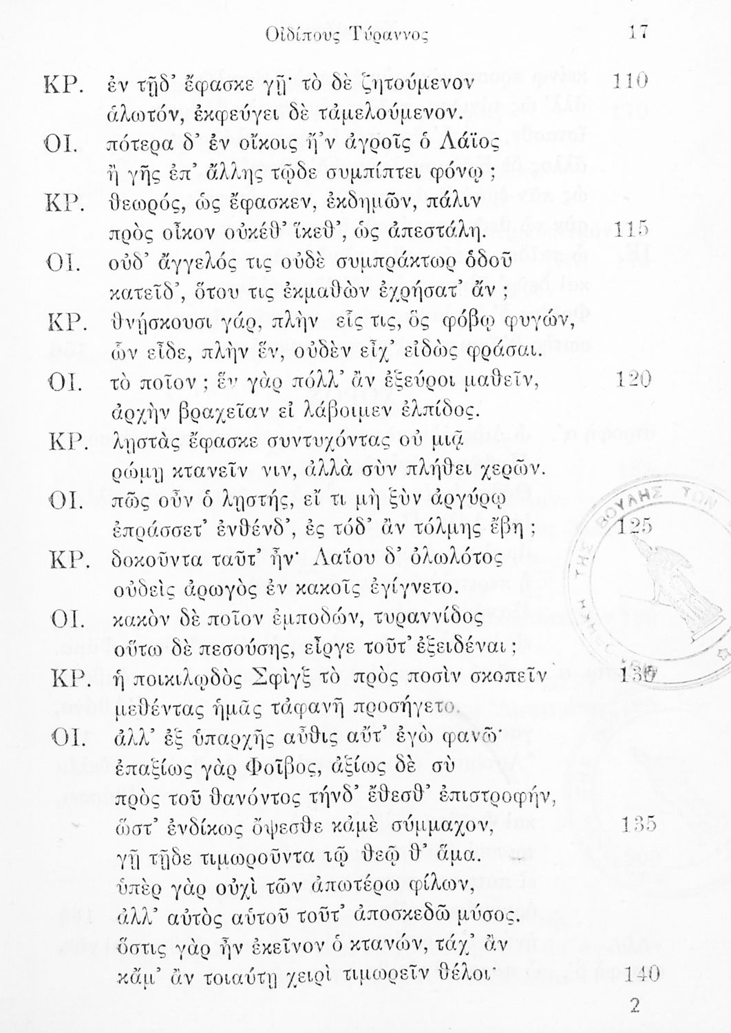 Σοφοκλέους Οιδίπους Τύραννος, δια την ΣΤ΄ τάξιν των Γυμνασίων Π. Τ.