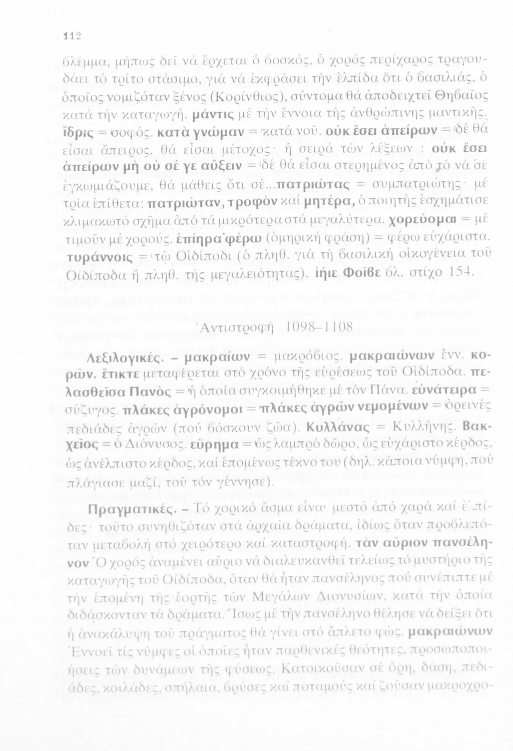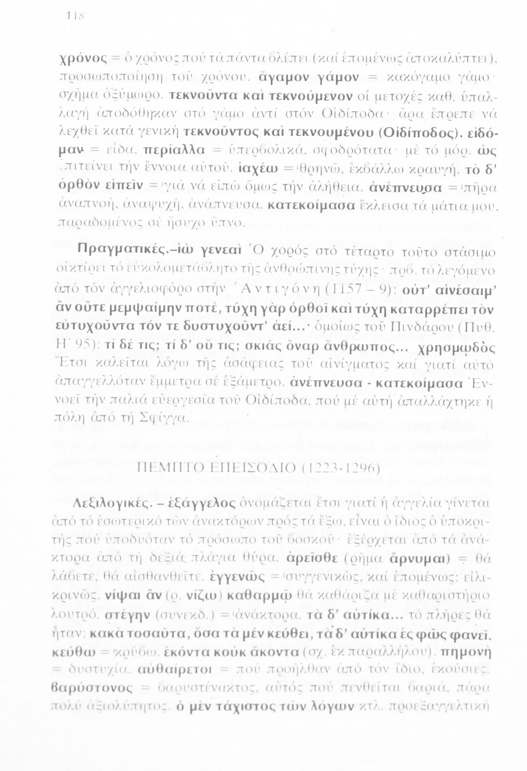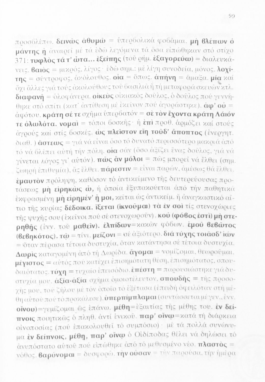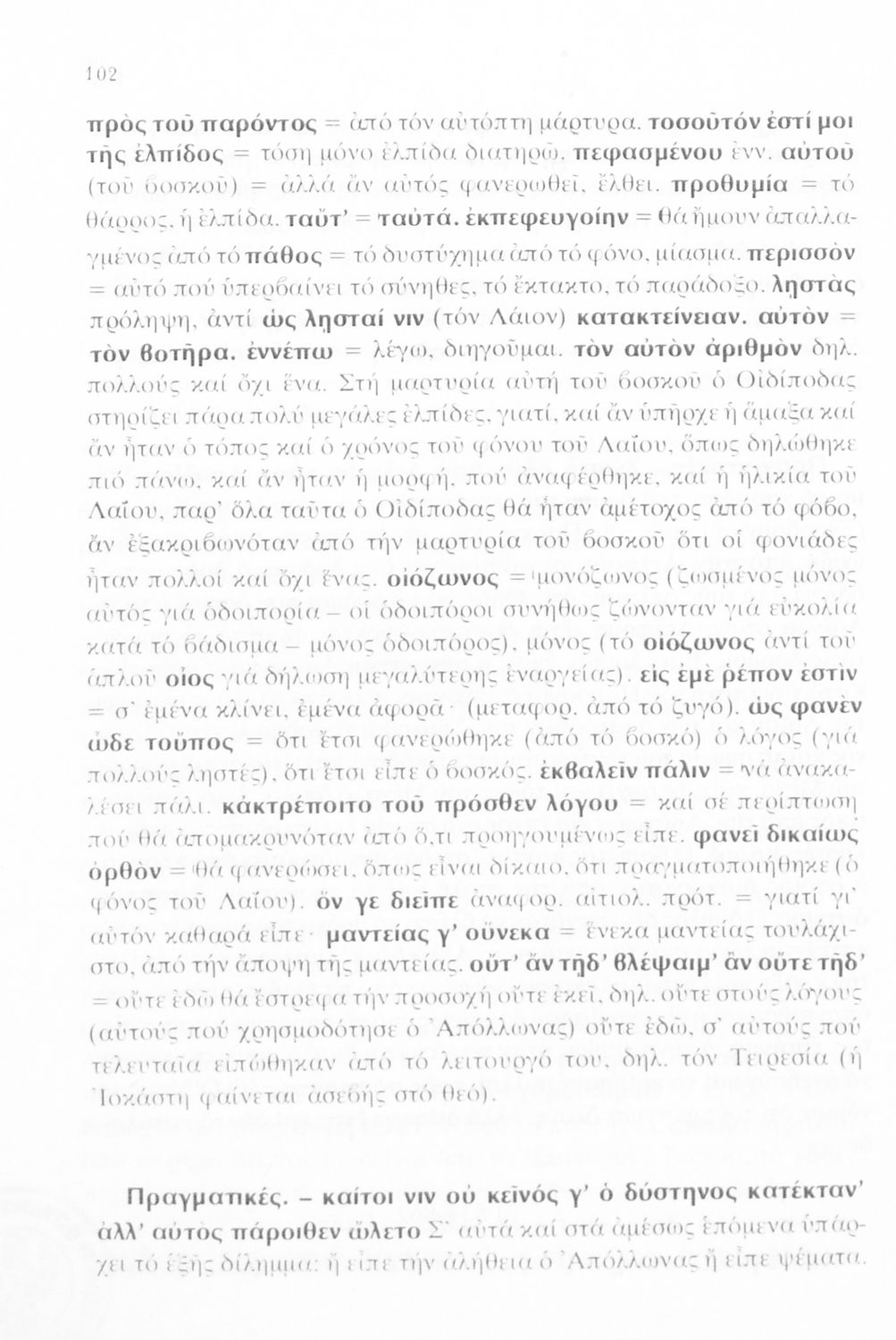 Σχολικό εγχειρίδιο Αρχαίων Ελληνικών της Γ΄ Λυκείου. Το βιβλίο περιέχει τις δύο τραγωδίες του Σοφοκλή, τον Οιδίπους Τύραννο και την Αντιγόνη. Στο βιβλίο τα έργα συνοδεύονται από γλωσσολογικές σημειώσεις και αναλύσεις περιεχομένου.