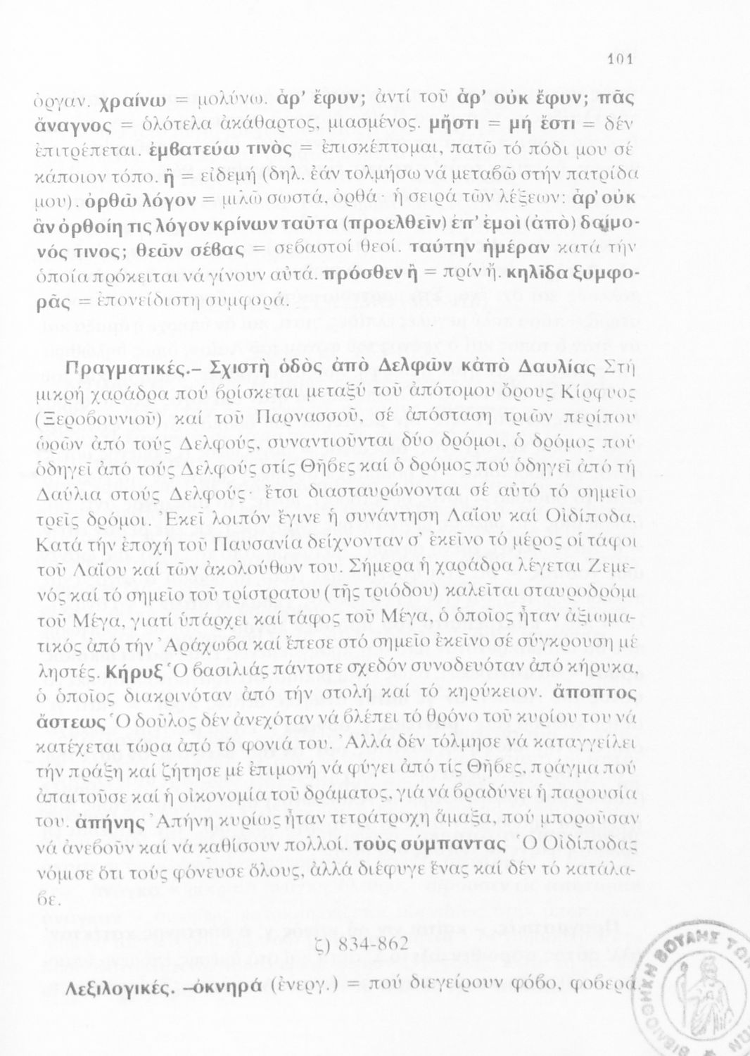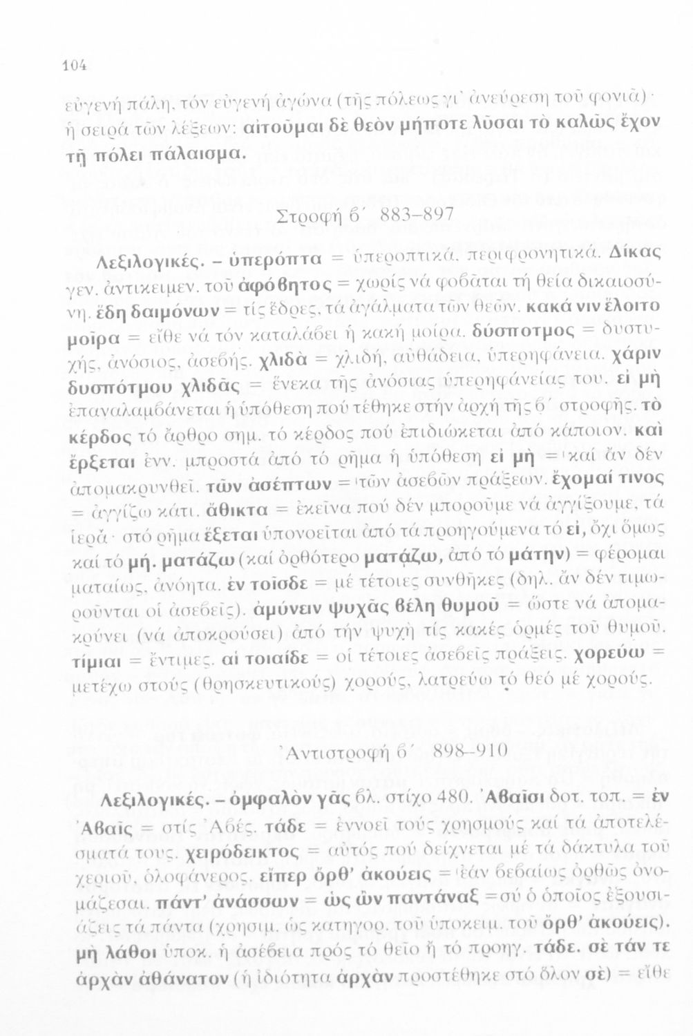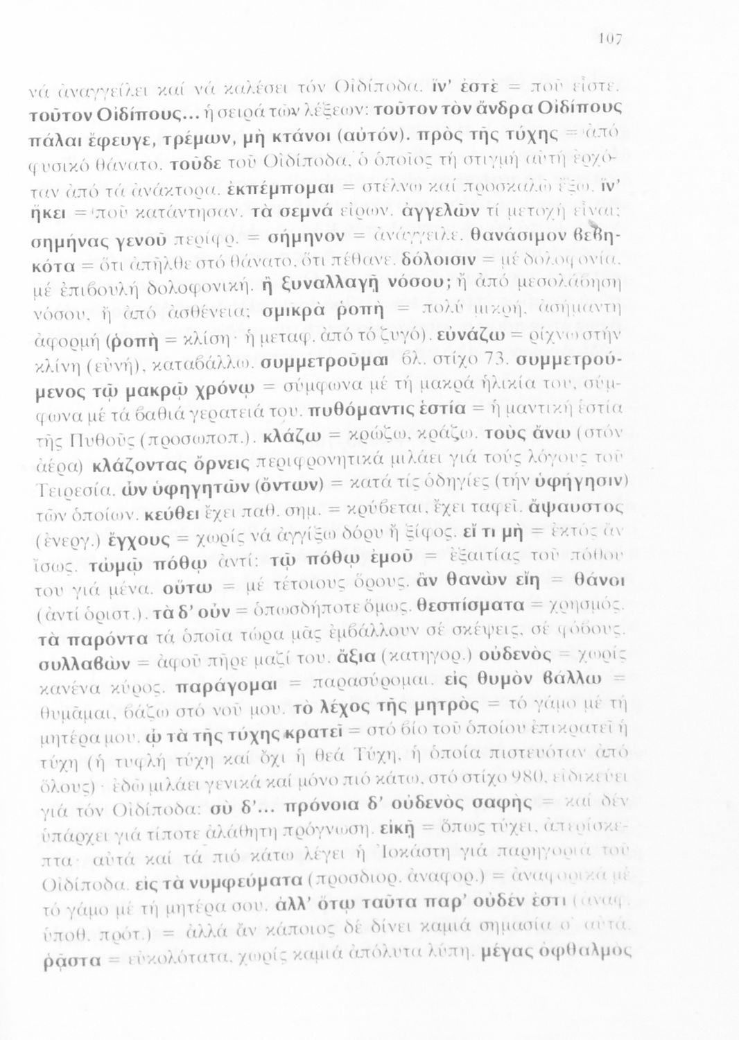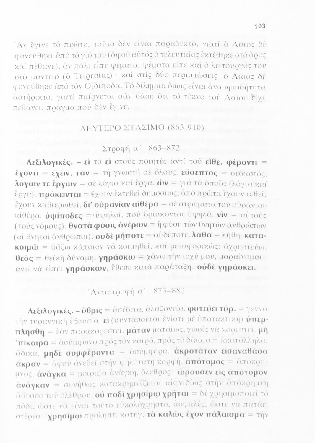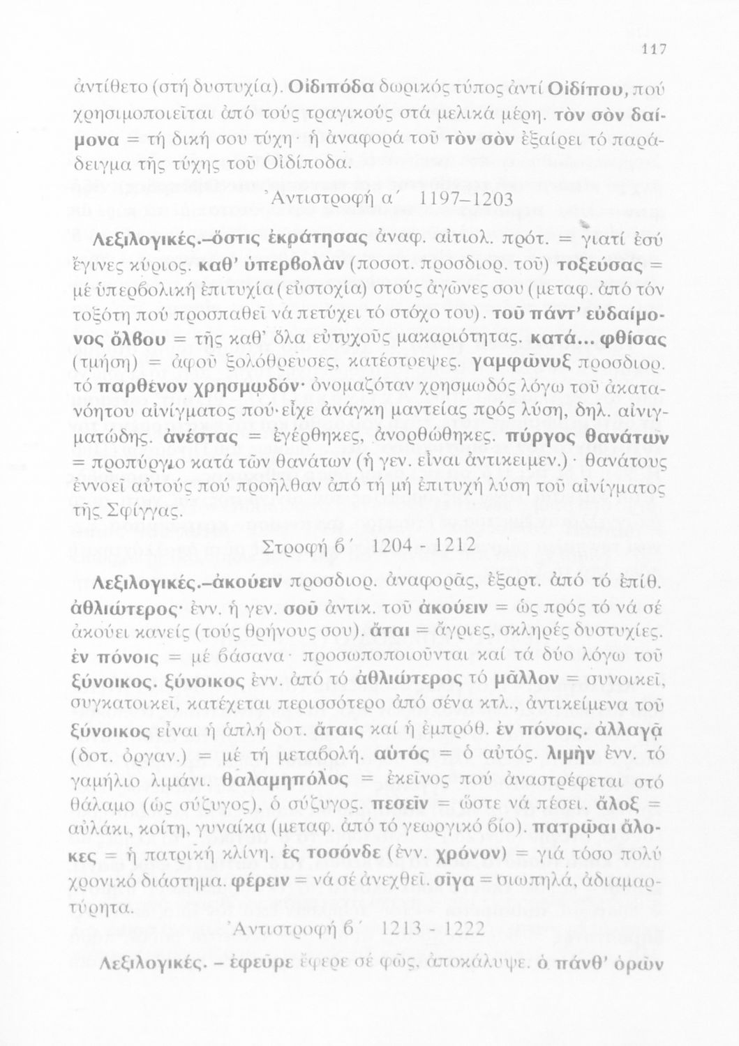 Σχολικό εγχειρίδιο Αρχαίων Ελληνικών της Γ΄ Λυκείου. Το βιβλίο περιέχει τις δύο τραγωδίες του Σοφοκλή, τον Οιδίπους Τύραννο και την Αντιγόνη. Στο βιβλίο τα έργα συνοδεύονται από γλωσσολογικές σημειώσεις και αναλύσεις περιεχομένου.