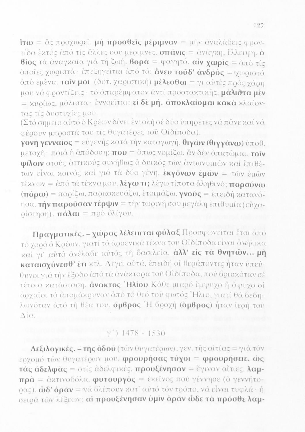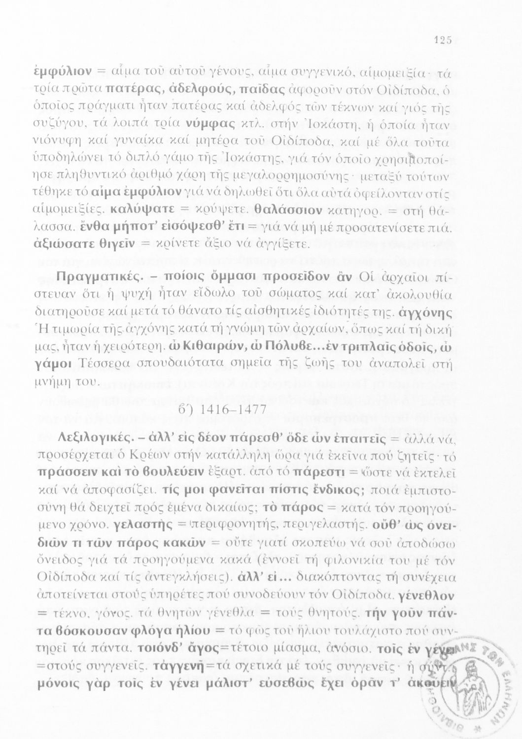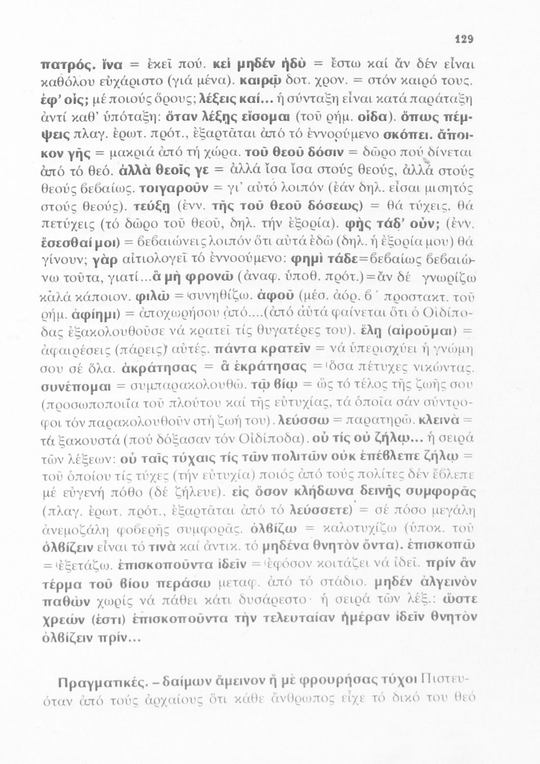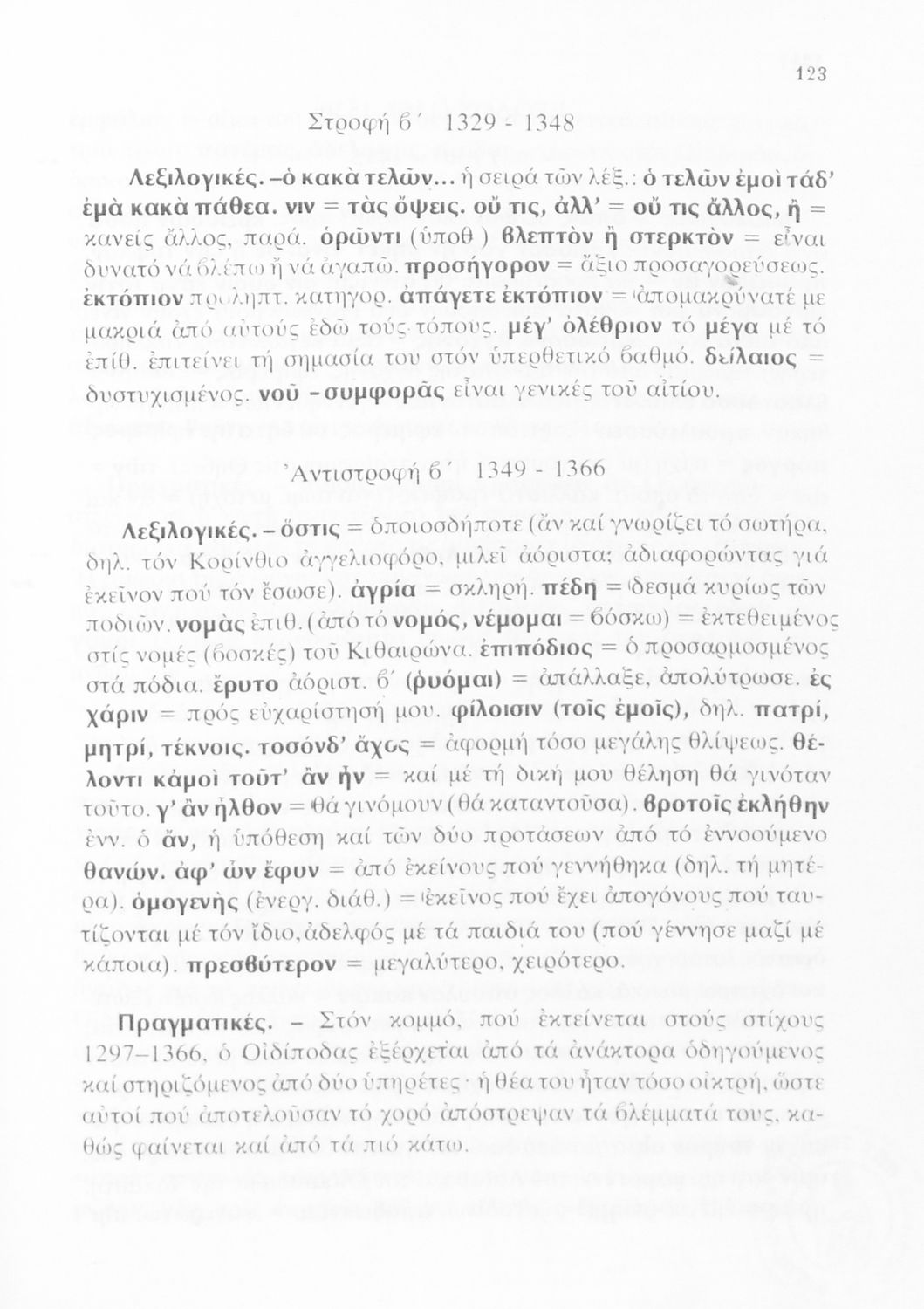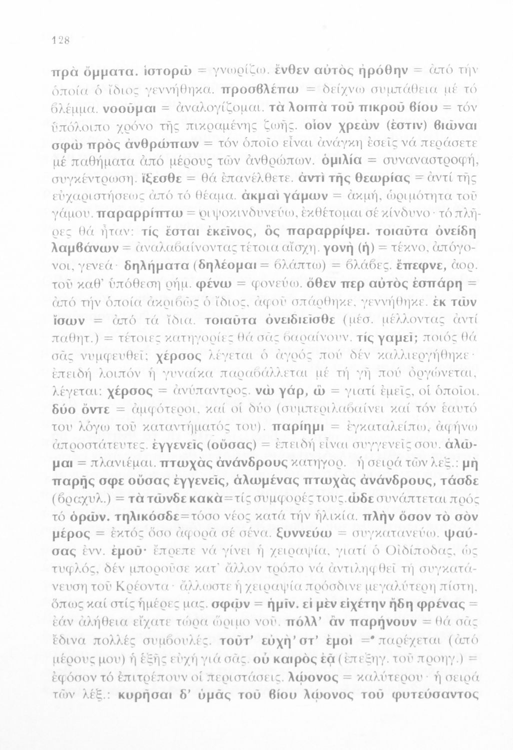 Σχολικό εγχειρίδιο Αρχαίων Ελληνικών της Γ΄ Λυκείου. Το βιβλίο περιέχει τις δύο τραγωδίες του Σοφοκλή, τον Οιδίπους Τύραννο και την Αντιγόνη. Στο βιβλίο τα έργα συνοδεύονται από γλωσσολογικές σημειώσεις και αναλύσεις περιεχομένου.