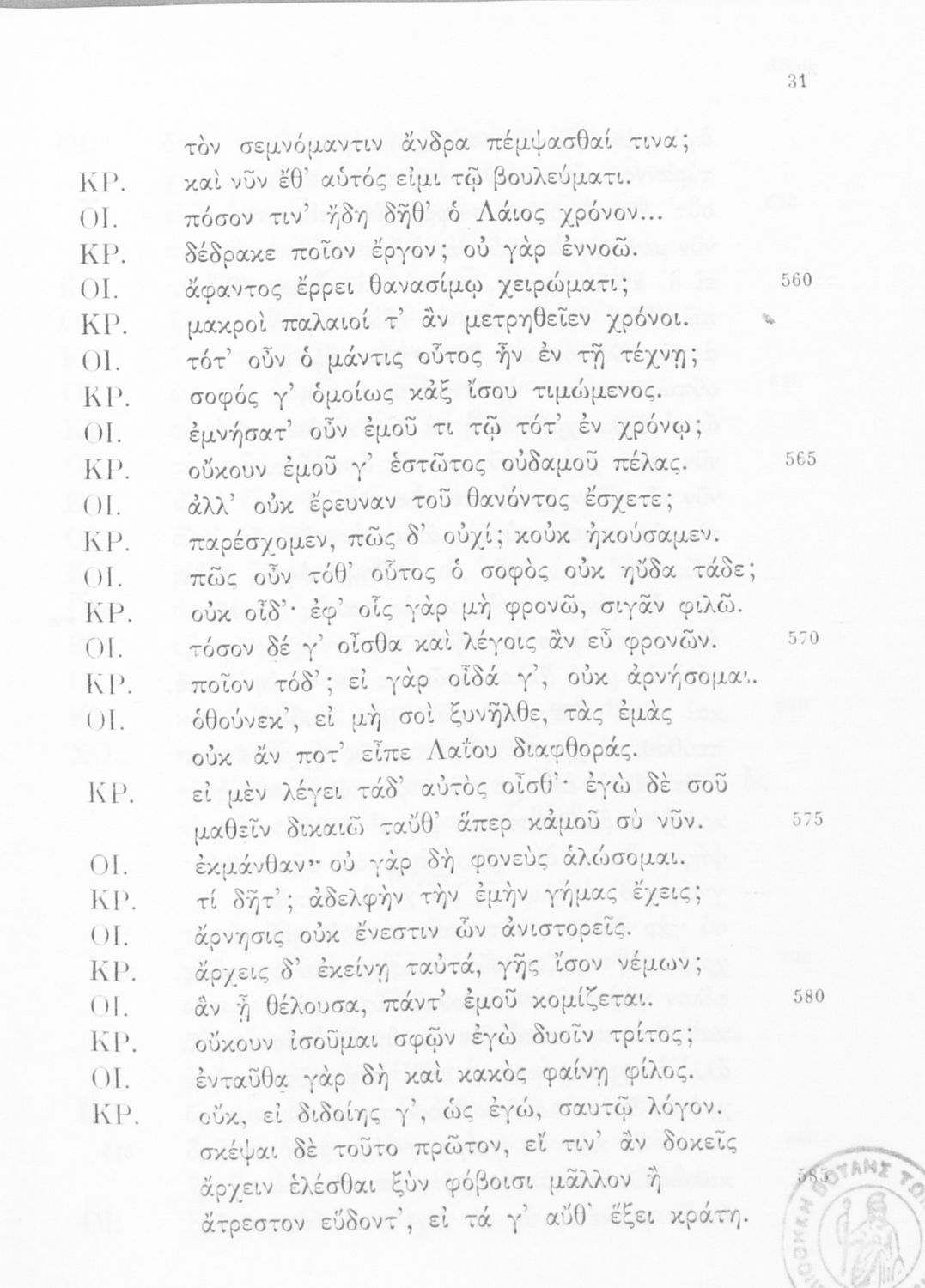 Σχολικό εγχειρίδιο Αρχαίων Ελληνικών της Γ΄ Λυκείου. Το βιβλίο περιέχει τις δύο τραγωδίες του Σοφοκλή, τον Οιδίπους Τύραννο και την Αντιγόνη. Στο βιβλίο τα έργα συνοδεύονται από γλωσσολογικές σημειώσεις και αναλύσεις περιεχομένου.