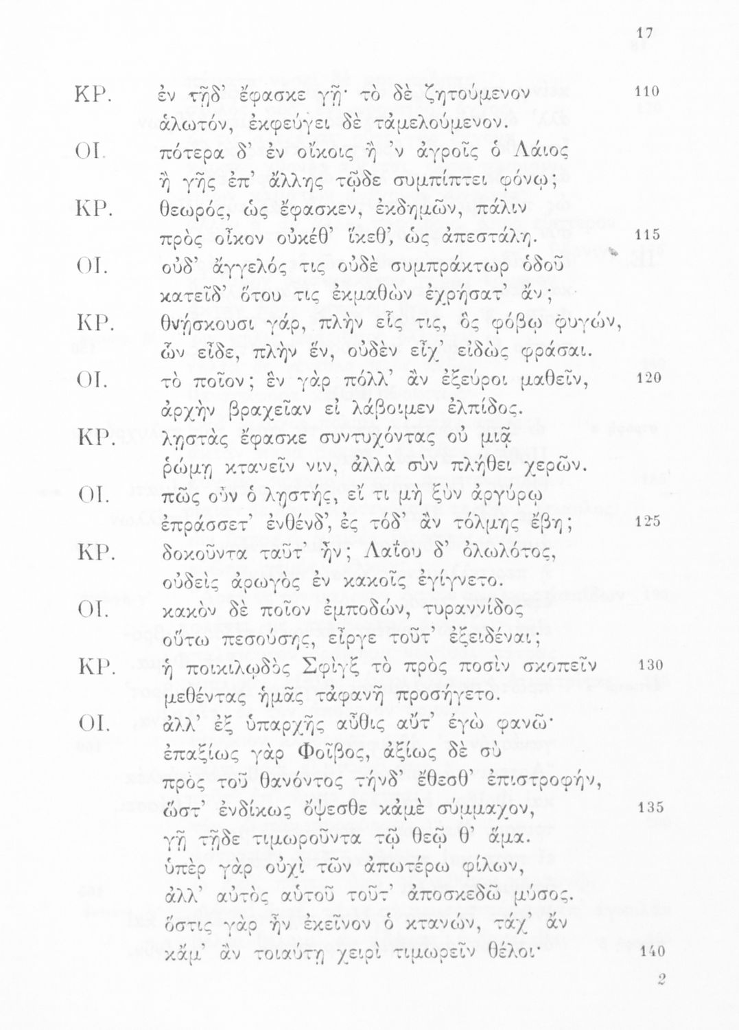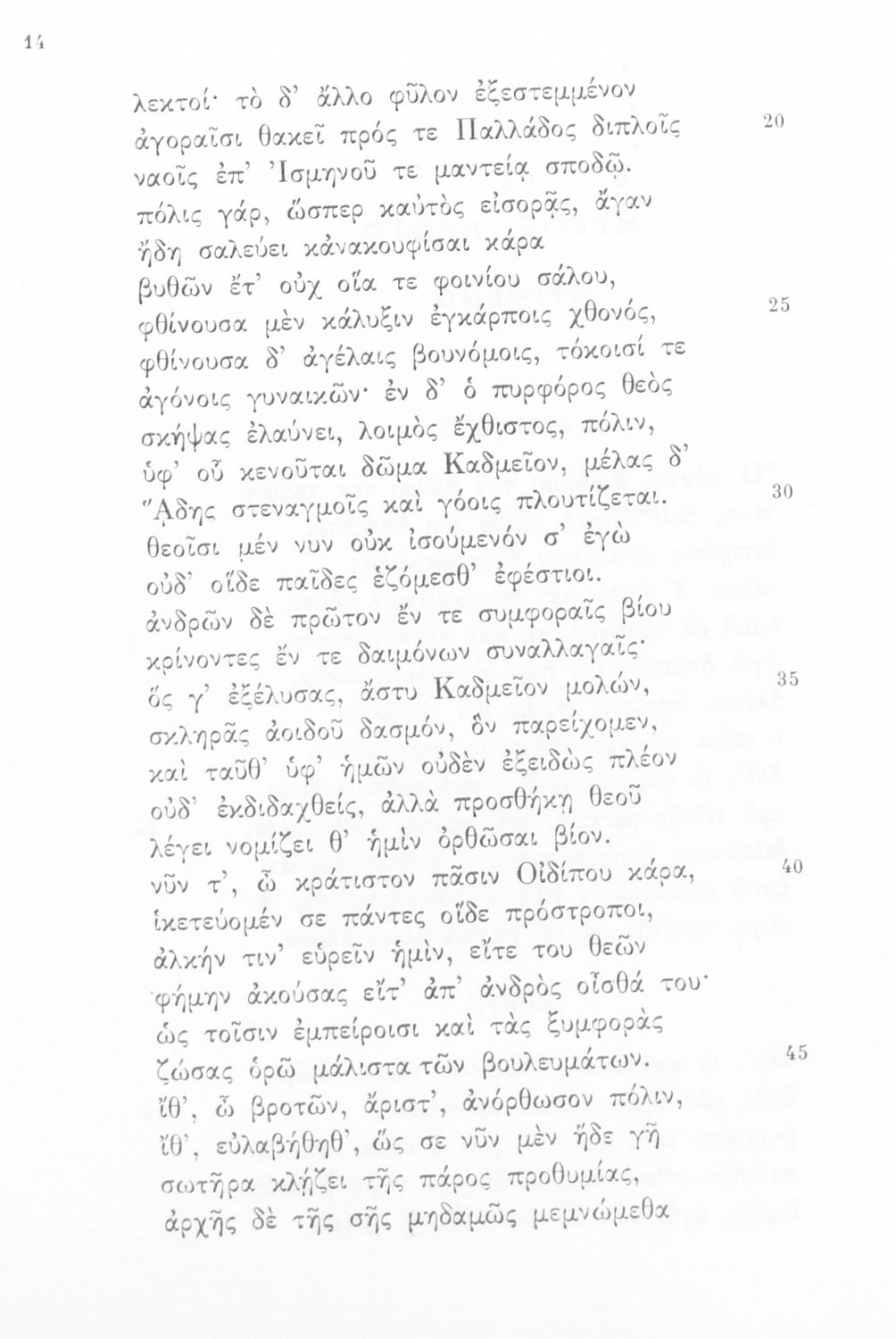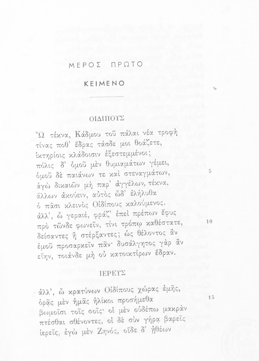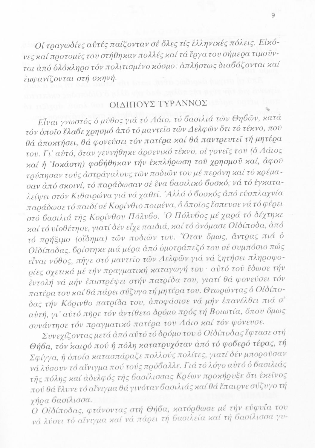 Σχολικό εγχειρίδιο Αρχαίων Ελληνικών της Γ΄ Λυκείου. Το βιβλίο περιέχει τις δύο τραγωδίες του Σοφοκλή, τον Οιδίπους Τύραννο και την Αντιγόνη. Στο βιβλίο τα έργα συνοδεύονται από γλωσσολογικές σημειώσεις και αναλύσεις περιεχομένου.
