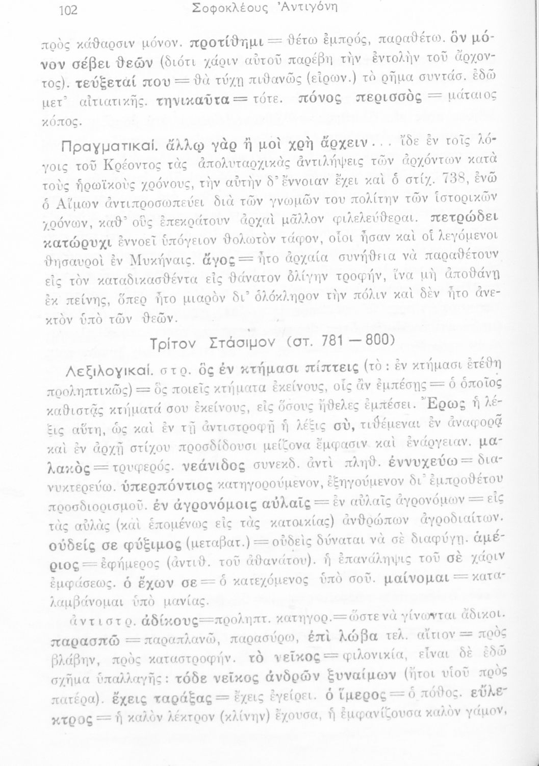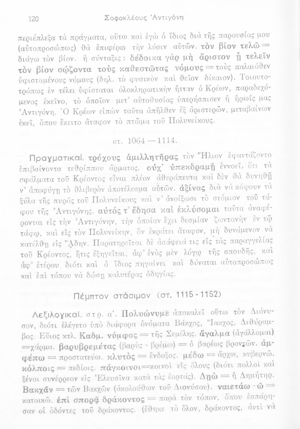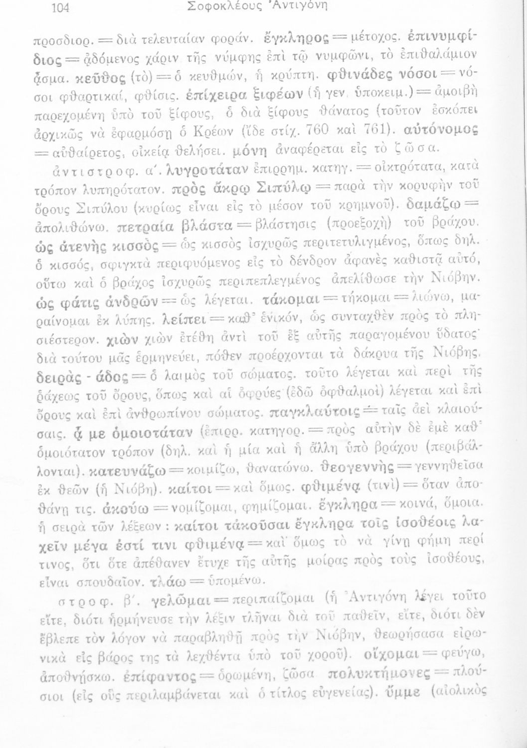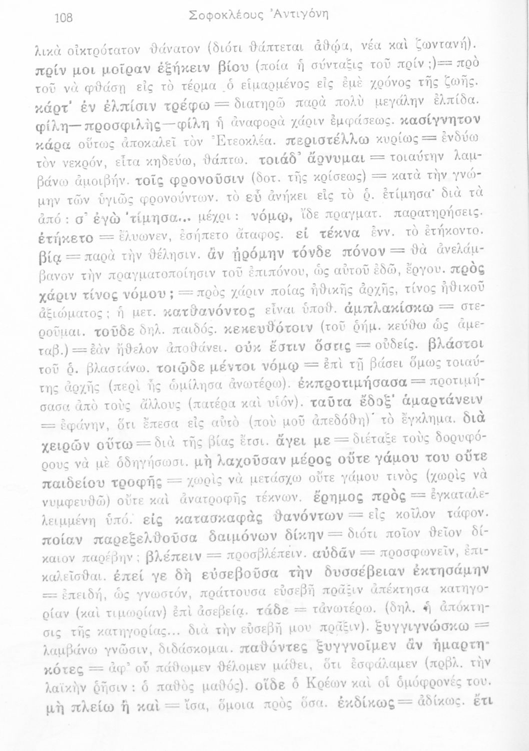 Σχολικό εγχειρίδιο Αρχαίων Ελληνικών της ΣΤ΄ Γυμνασίου. Το βιβλίο παρουσιάζει το έργο του Σοφοκλή, Αντιγόνη. Στο δεύτερο μέρος περιλαμβάνει λεξιλογικά και ερμηνευτικά σχόλια.