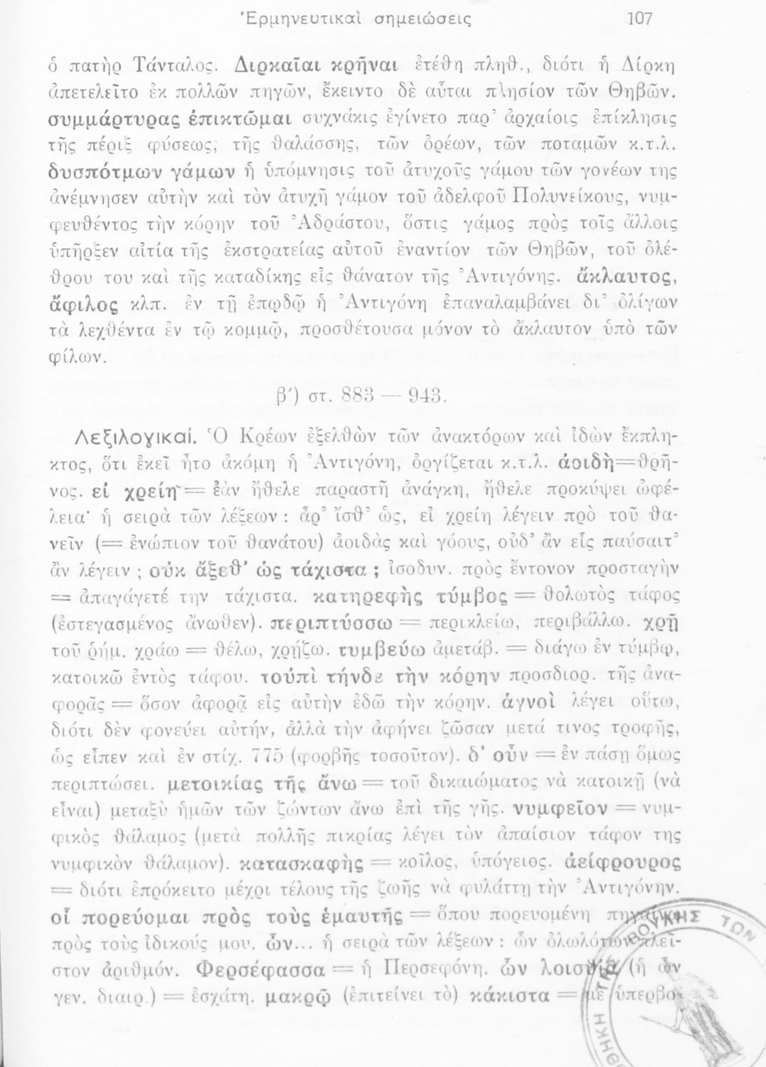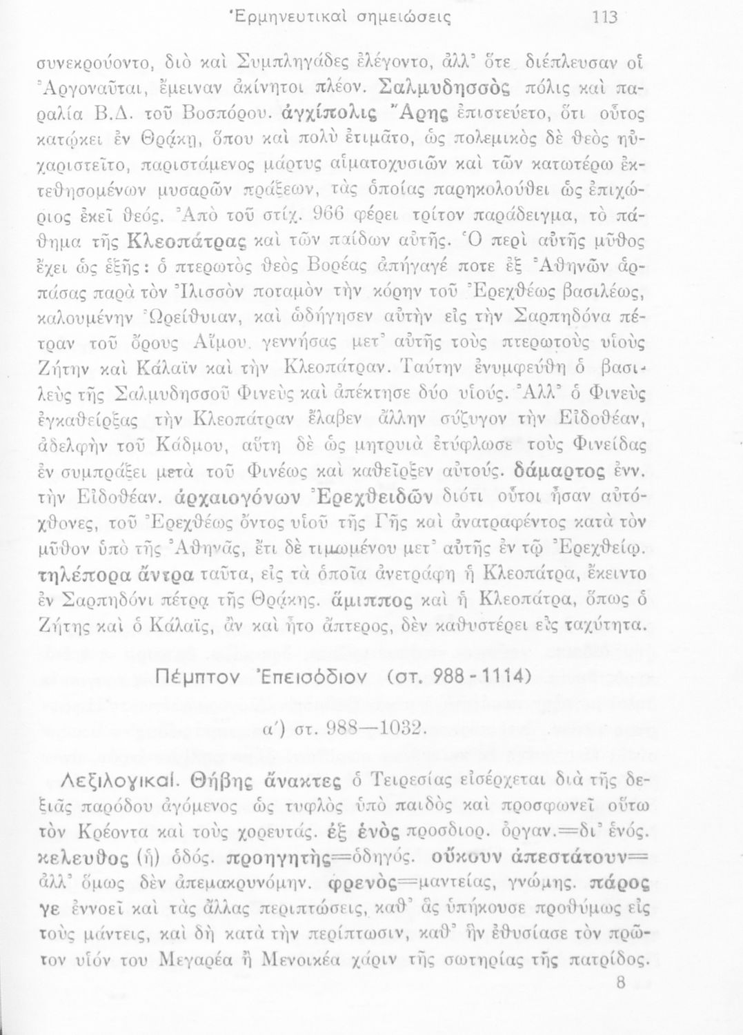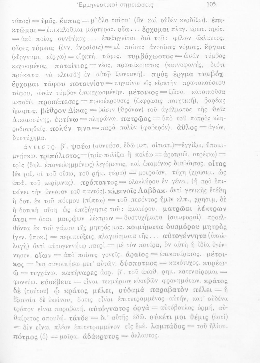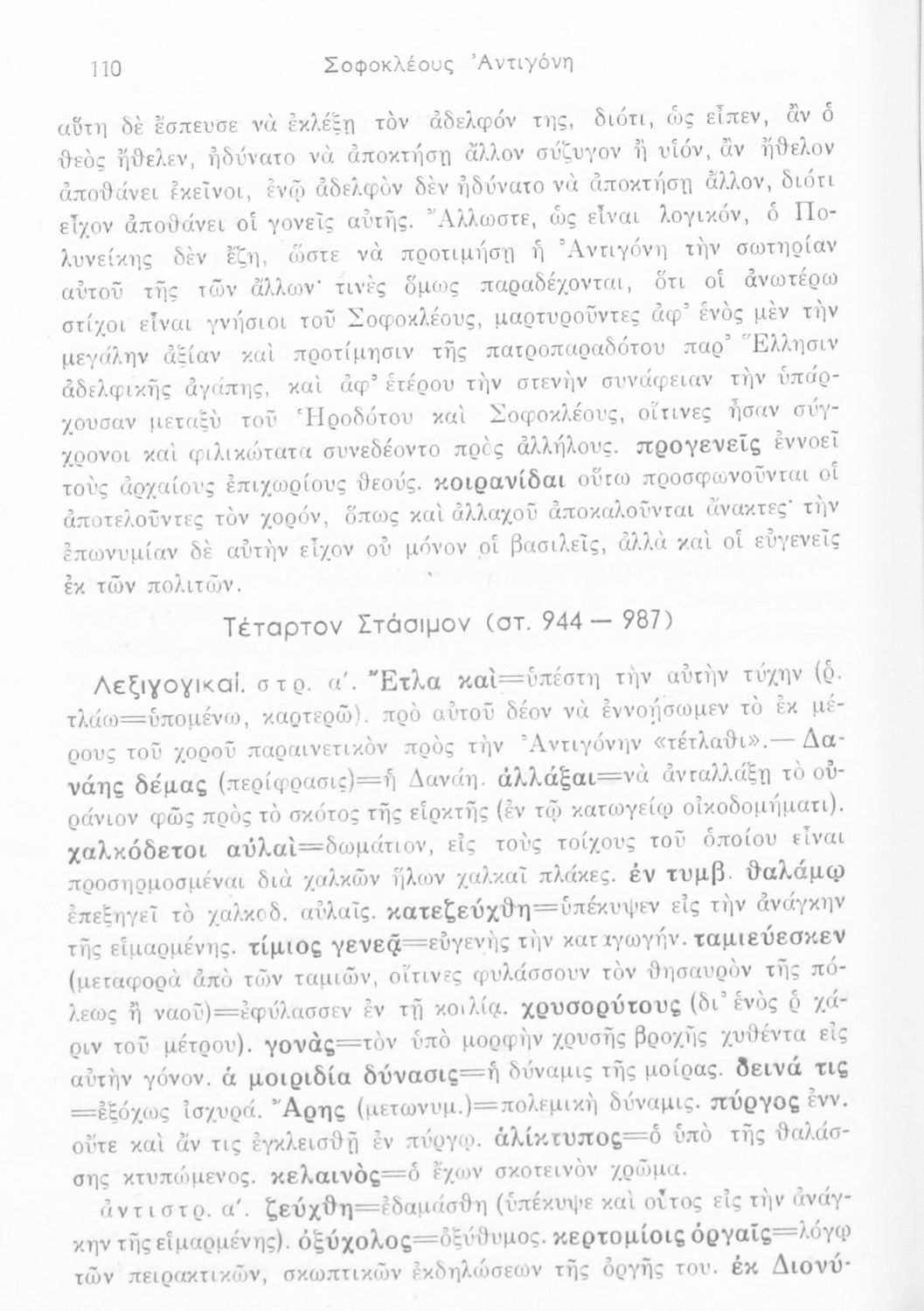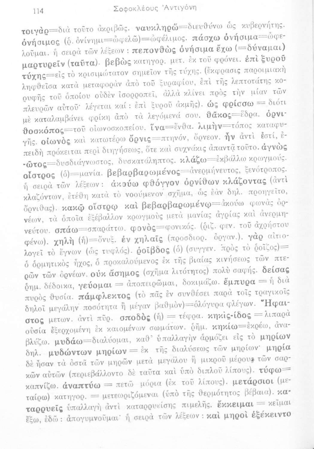 Σχολικό εγχειρίδιο Αρχαίων Ελληνικών της ΣΤ΄ Γυμνασίου. Το βιβλίο παρουσιάζει το έργο του Σοφοκλή, Αντιγόνη. Στο δεύτερο μέρος περιλαμβάνει λεξιλογικά και ερμηνευτικά σχόλια.