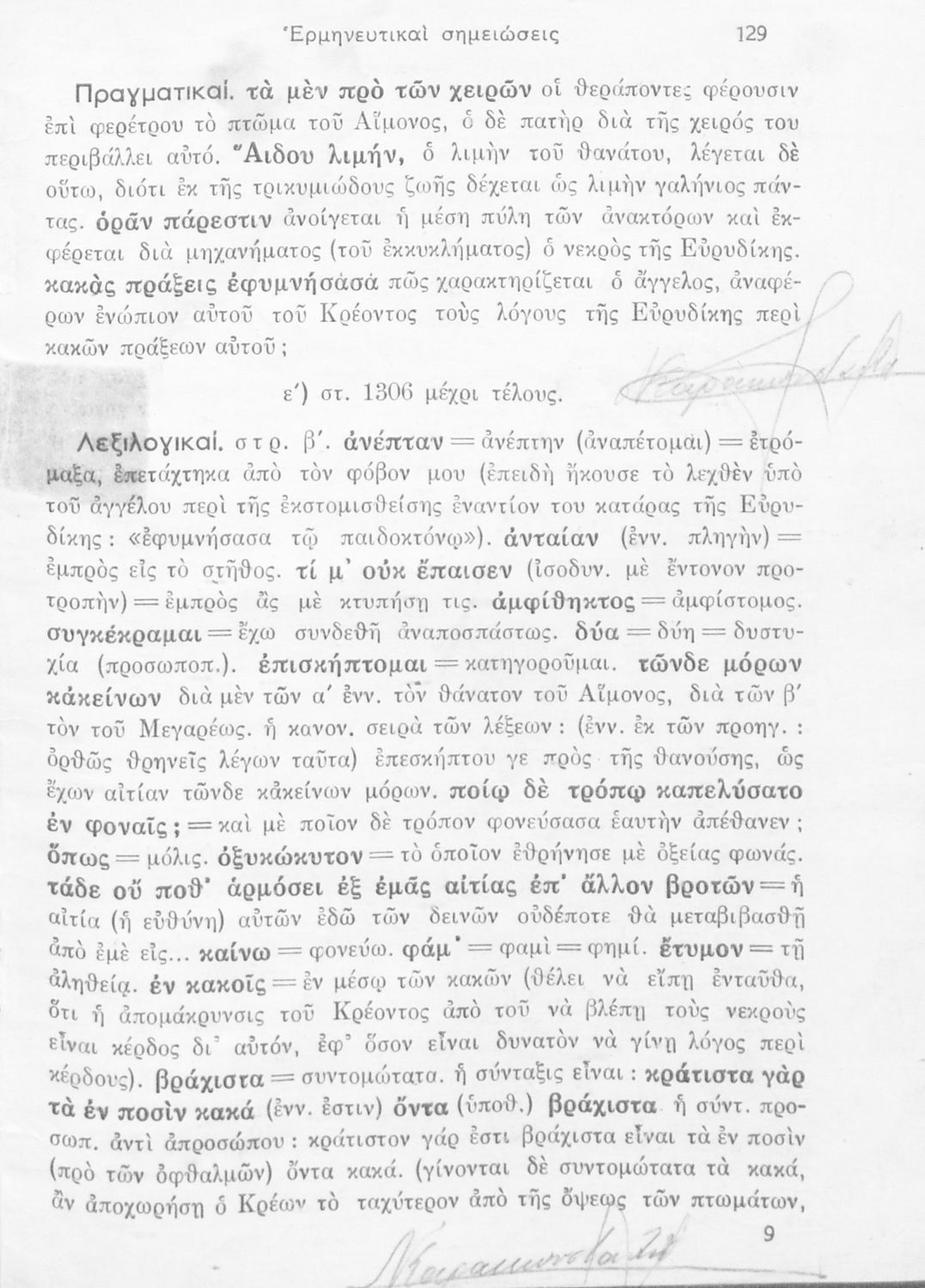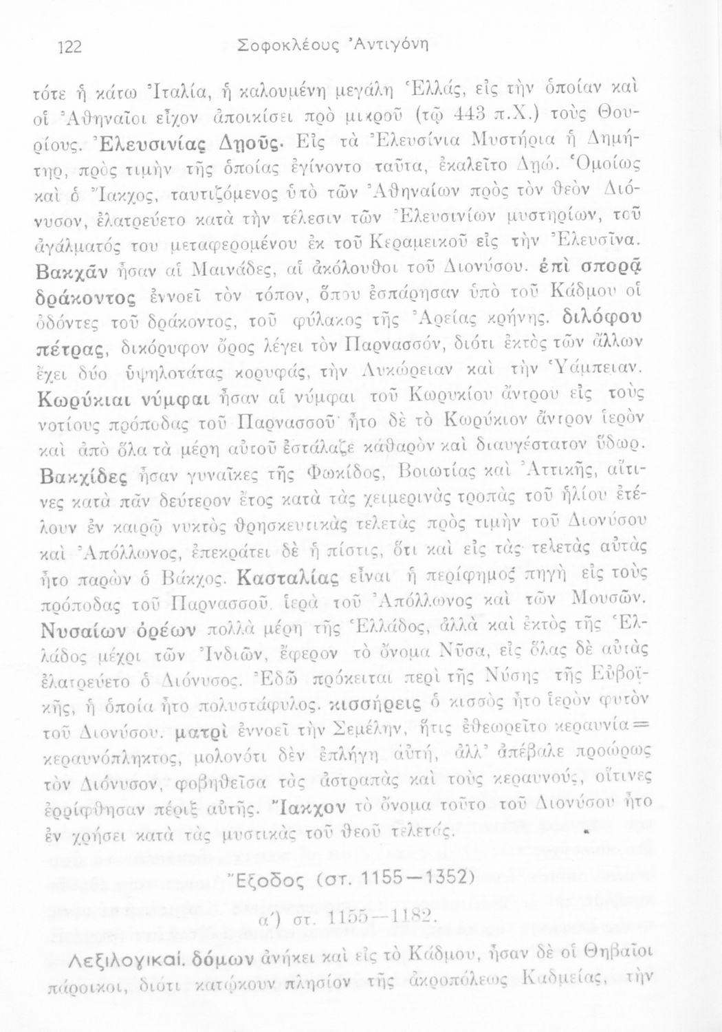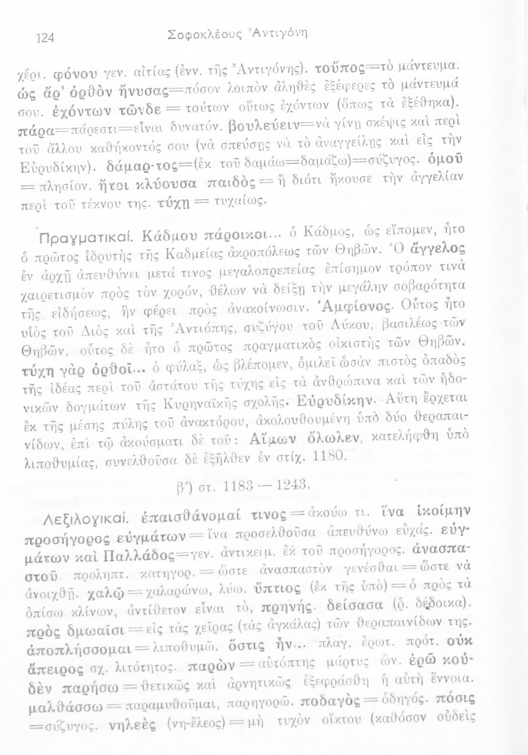 Σχολικό εγχειρίδιο Αρχαίων Ελληνικών της ΣΤ΄ Γυμνασίου. Το βιβλίο παρουσιάζει το έργο του Σοφοκλή, Αντιγόνη. Στο δεύτερο μέρος περιλαμβάνει λεξιλογικά και ερμηνευτικά σχόλια.