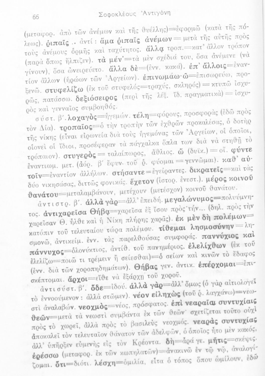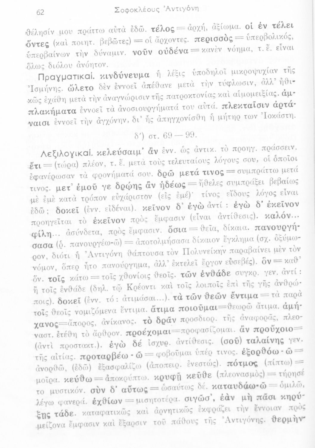 Σχολικό εγχειρίδιο Αρχαίων Ελληνικών της ΣΤ΄ Γυμνασίου. Το βιβλίο παρουσιάζει το έργο του Σοφοκλή, Αντιγόνη. Στο δεύτερο μέρος περιλαμβάνει λεξιλογικά και ερμηνευτικά σχόλια.