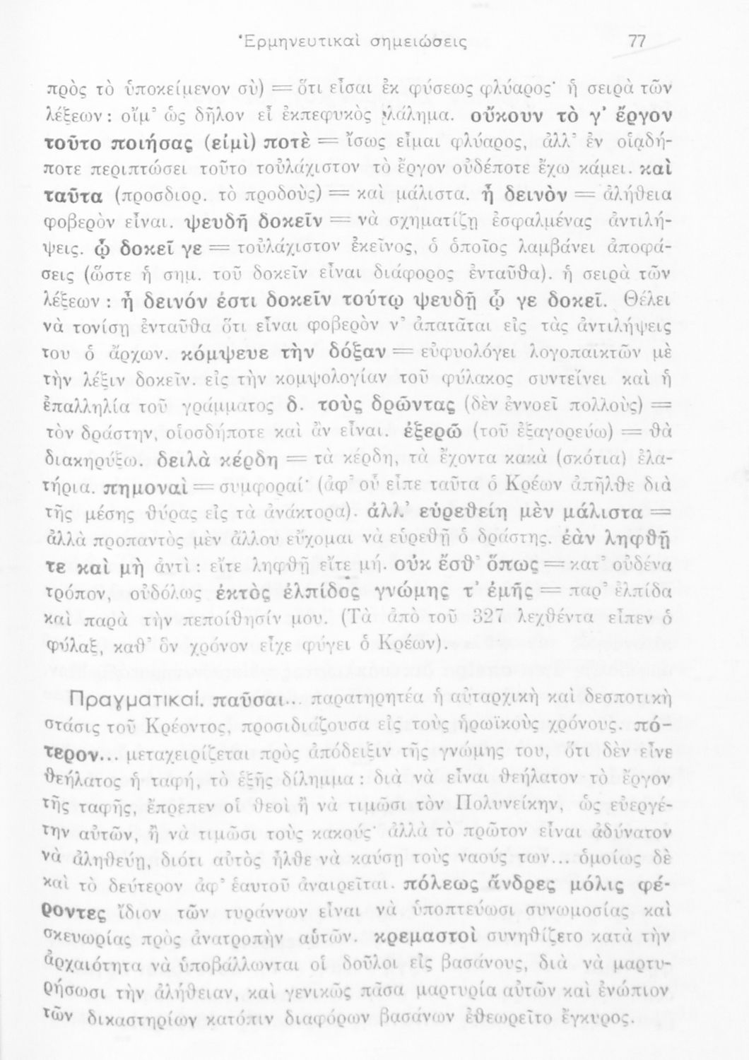 Σοφοκλής, Π. Ν. Δημόπουλος (σχόλια)