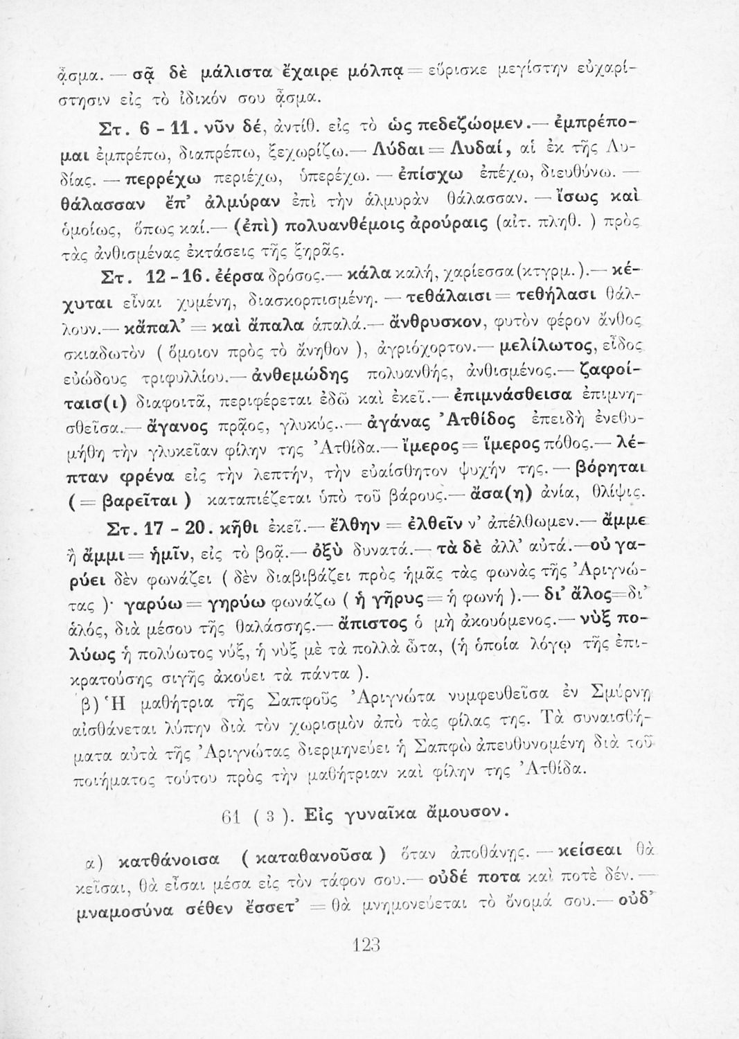 Σχολικό εγχειρίδιο Αρχαίων Ελληνικών Ε΄ Γυμνασίου που περιλαμβάνει εισαγωγή στη λυρική ποίηση, έργα αρχαίων Ελλήνων ποιητών, ερμηνευτικά και πραγματολογικά σχόλια, και λεξιλογικές παρατηρήσεις.