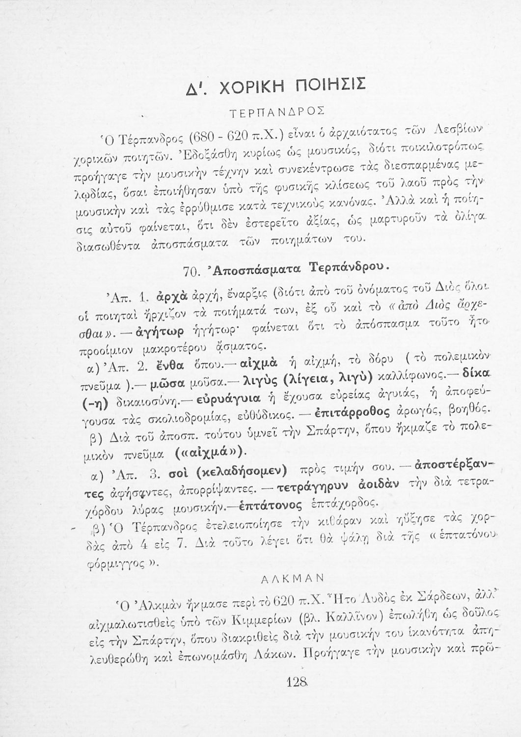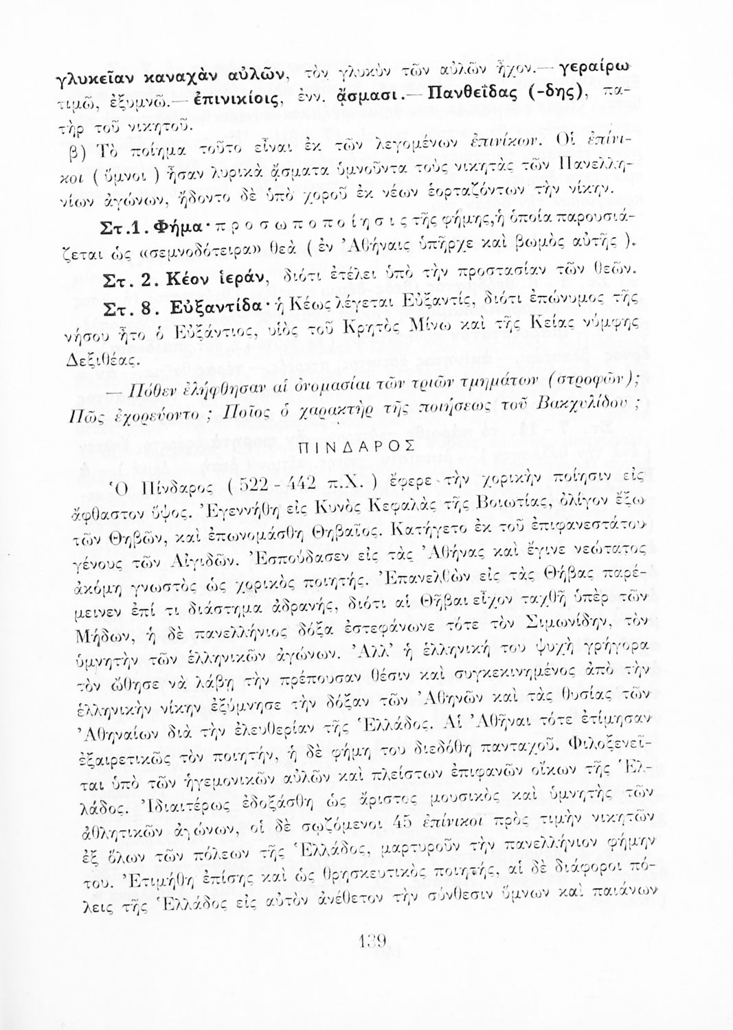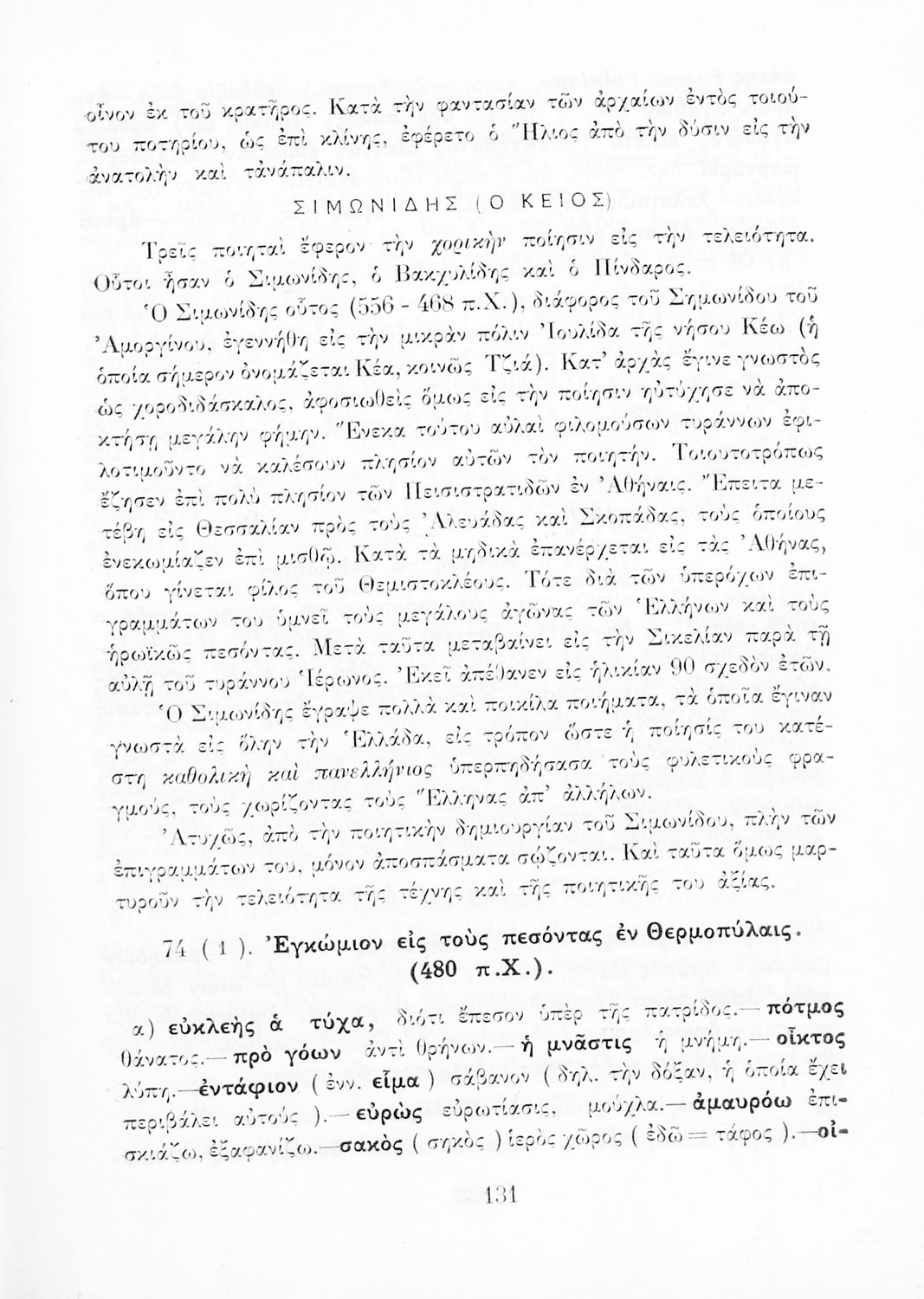 Βαθμίδα εκπαίδευσης: Δευτεροβάθμια Τάξη: Ε' Γυμνασίου Μάθημα: Αρχαία Ελληνικά Γλώσσα: Καθαρεύουσα Παρουσίαση περιεχομένου: Σχολικό εγχειρίδιο Αρχαίων Ελληνικών Ε΄ Γυμνασίου που περιλαμβάνει εισαγωγή στη λυρική ποίηση, έργα αρχαίων Ελλήνων ποιητών, ερμηνευτικά και πραγματολογικά σχόλια, και λεξιλογικές παρατηρήσεις. |