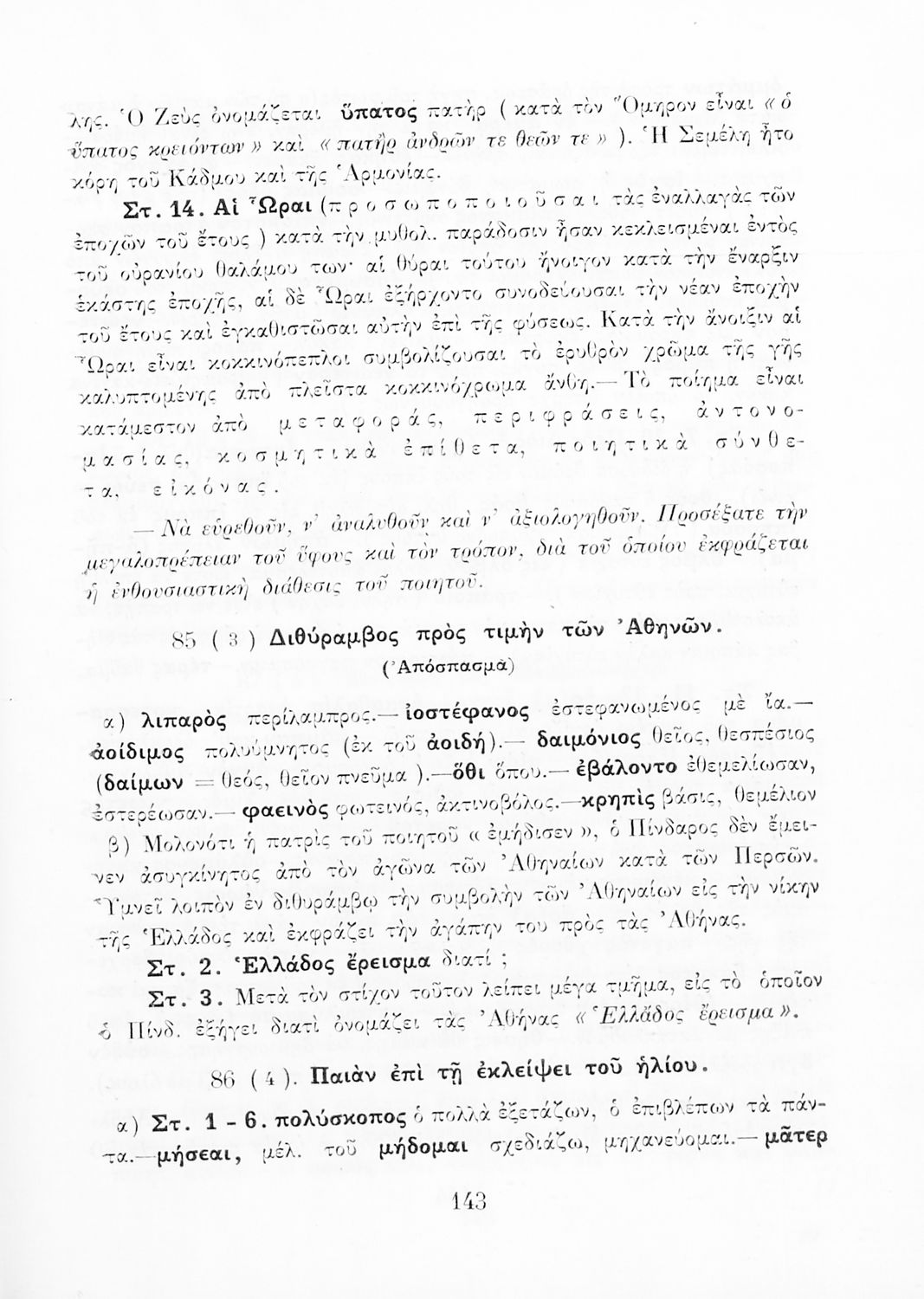 Σχολικό εγχειρίδιο Αρχαίων Ελληνικών Ε΄ Γυμνασίου που περιλαμβάνει αποσπάσματα από έργα αρχαίων Ελλήνων και χριστιανών ποιητών, και λεξιλόγιο