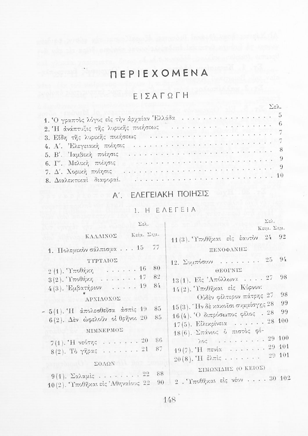 Σχολικό εγχειρίδιο Αρχαίων Ελληνικών Ε΄ Γυμνασίου που περιλαμβάνει αποσπάσματα έργων αρχαίων Ελλήνων λυρικών, πολιτικές και γνωμικές ελεγείες, ιάμβους και επιγράμματα. Περιέχει υπόμνημα με ερμηνευτικά, ...