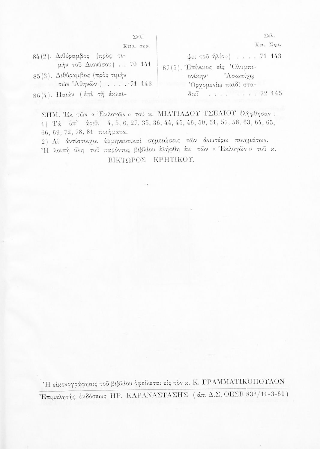 Συγγραφέας: Βίκτωρας Δ. Κρητικός, Μιλτιάδης Τσέλιος (σχόλια)