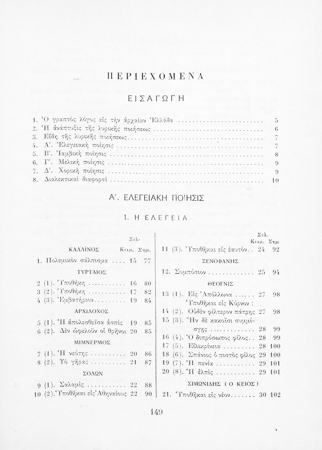 Σχολικό εγχειρίδιο Αρχαίων Ελληνικών Ε΄ Γυμνασίου που περιλαμβάνει αποσπάσματα έργων αρχαίων Ελλήνων λυρικών, πολιτικές και γνωμικές ελεγείες, ιάμβους και επιγράμματα. Περιέχει υπόμνημα με ερμηνευτικά, ...