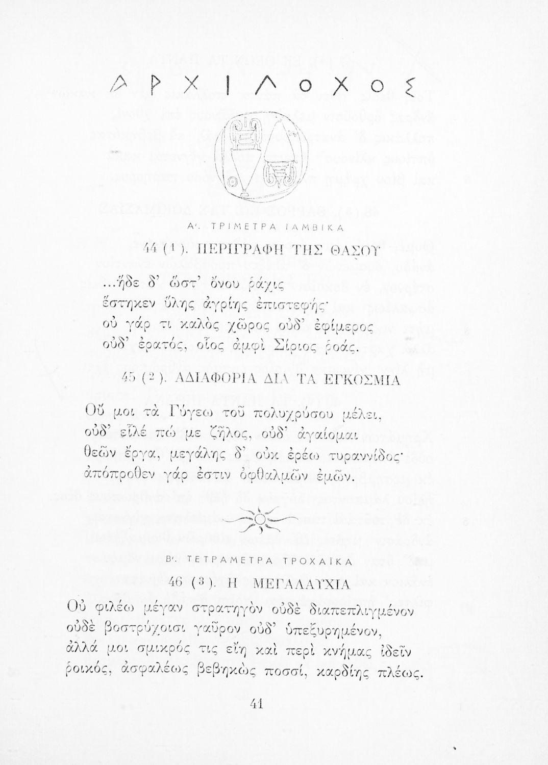 520 ## _aΣχολικό εγχειρίδιο Αρχαίων Ελληνικών Ε΄ Γυμνασίου που περιέχει αποσπάσματα αρχαίων Ελλήνων λυρικών, εισαγωγή και ερμηνευτικά σχόλια.