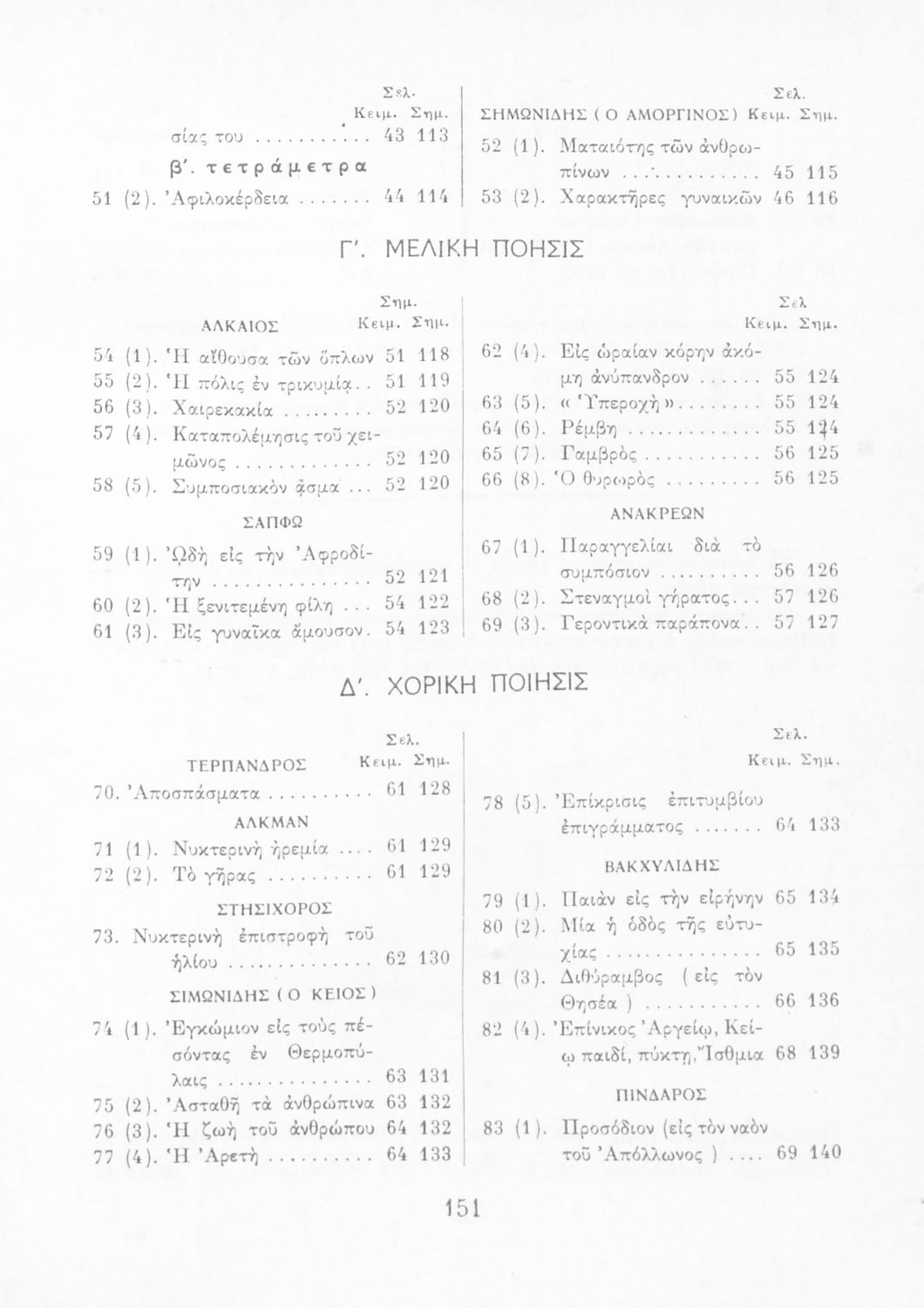 Σχολικό εγχειρίδιο Αρχαίων Ελληνικών που περιέχει αποσπάσματα αρχαίων Ελλήνων λυρικών, εισαγωγή και ερμηνευτικά σχόλια. Κοσμείται από μικρά διακοσμητικά σχέδια.
