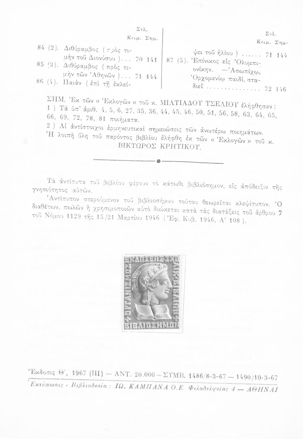 Συγγραφέας: Βίκτωρας Δ. Κρητικός, Μιλτιάδης Τσέλιος (σχόλια)