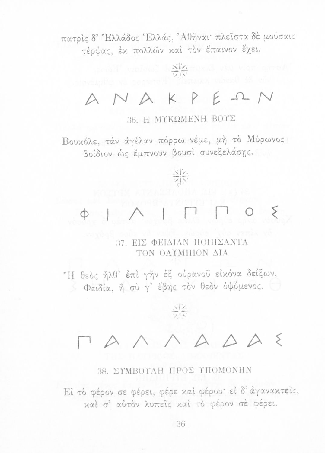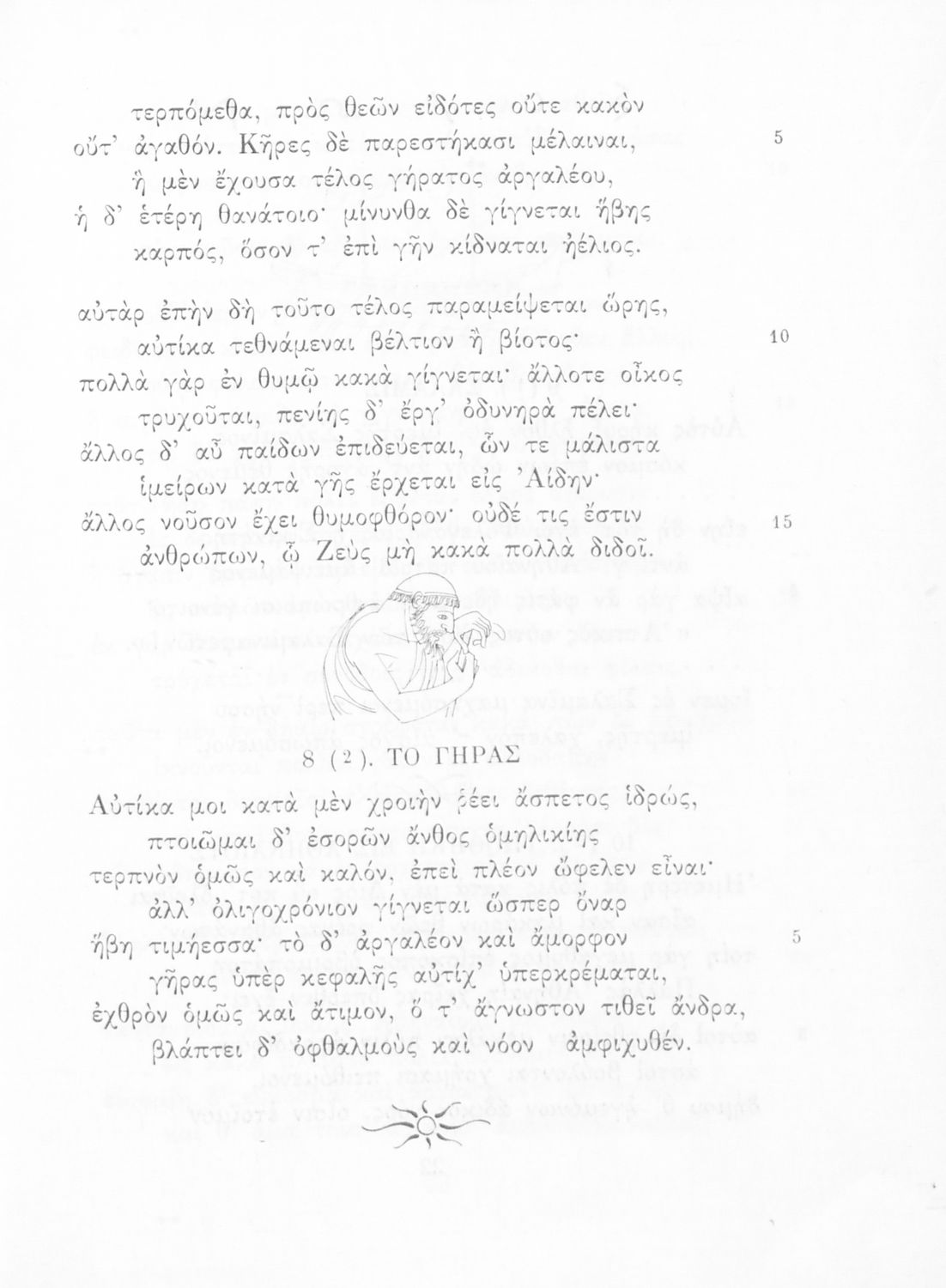 Σχολικό εγχειρίδιο Αρχαίων Ελληνικών που περιέχει αποσπάσματα αρχαίων Ελλήνων λυρικών, εισαγωγή και ερμηνευτικά σχόλια. Κοσμείται από μικρά διακοσμητικά σχέδια.