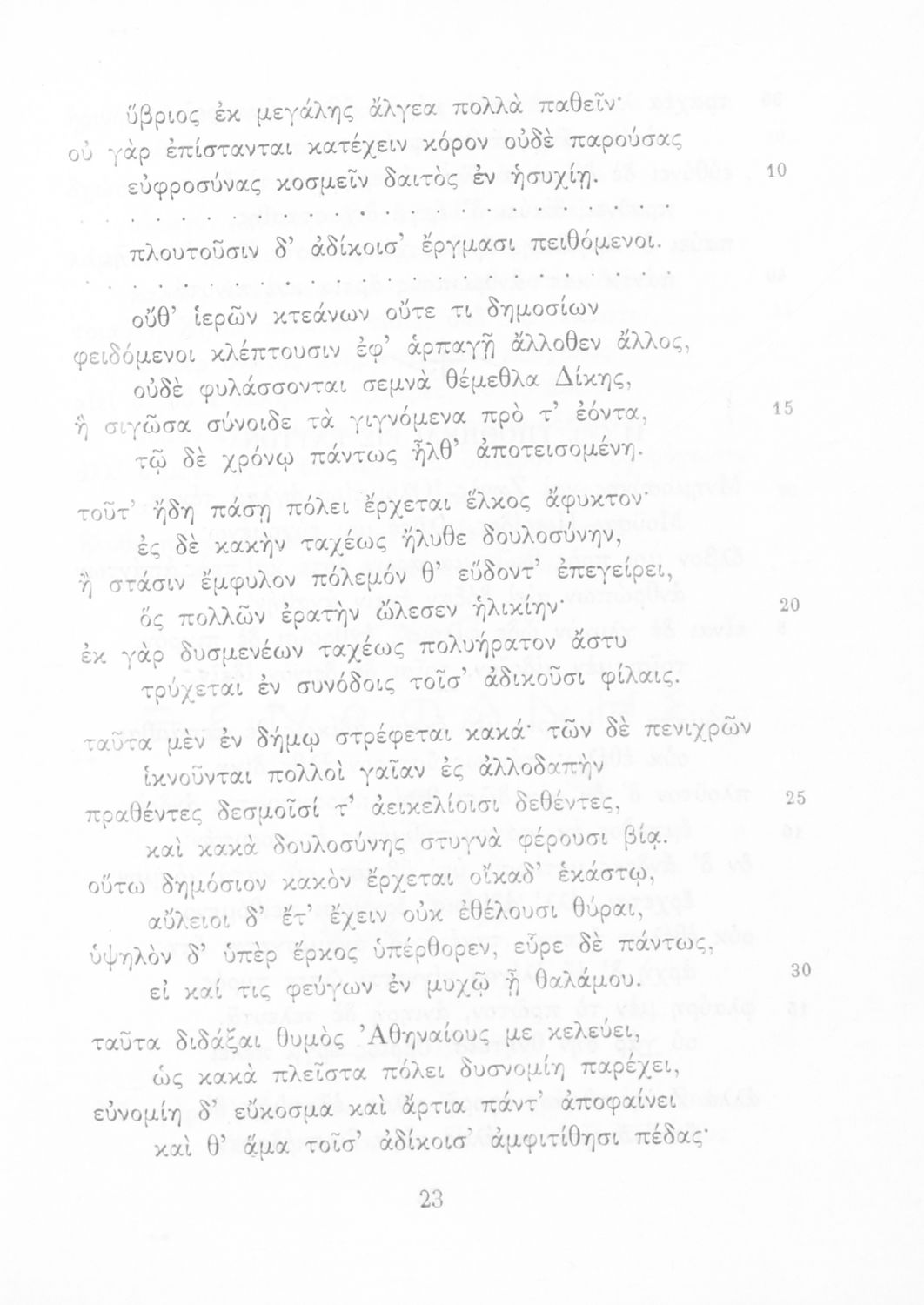 Σχολικό εγχειρίδιο Αρχαίων Ελληνικών Ε΄ Γυμνασίου που περιέχει αποσπάσματα αρχαίων Ελλήνων λυρικών, εισαγωγή και ερμηνευτικά σχόλια.