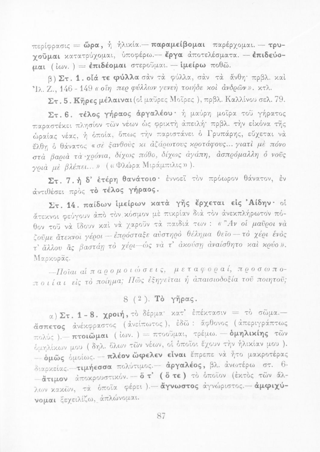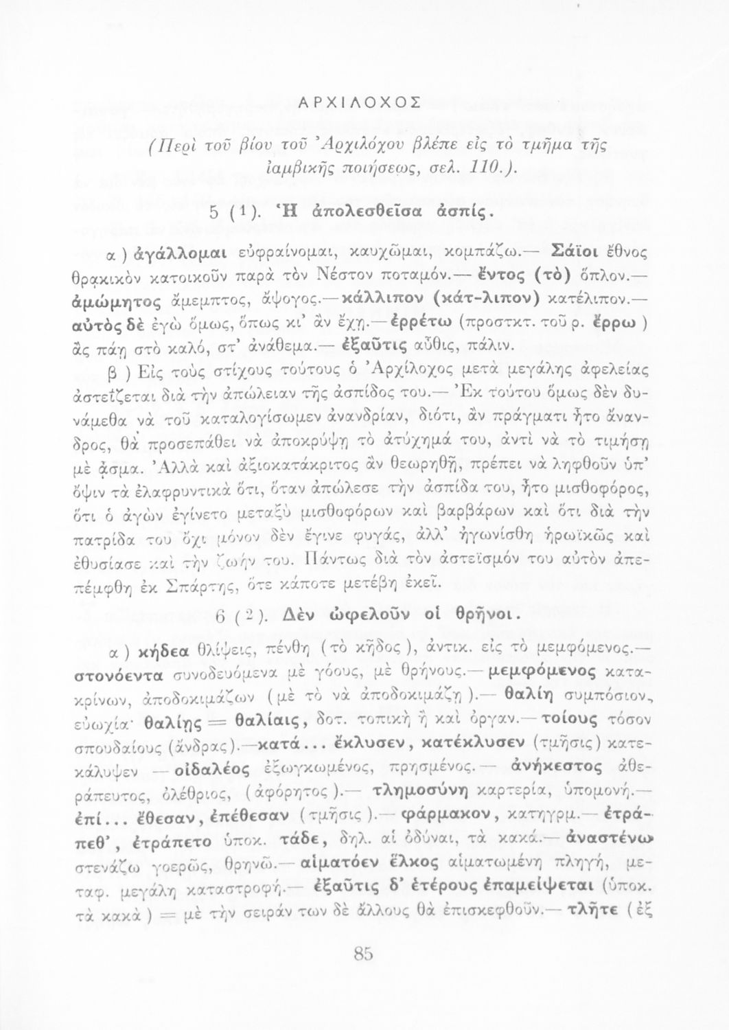 Σχολικό εγχειρίδιο Αρχαίων Ελληνικών που περιέχει αποσπάσματα αρχαίων Ελλήνων λυρικών, εισαγωγή και ερμηνευτικά σχόλια. Κοσμείται από μικρά διακοσμητικά σχέδια.
