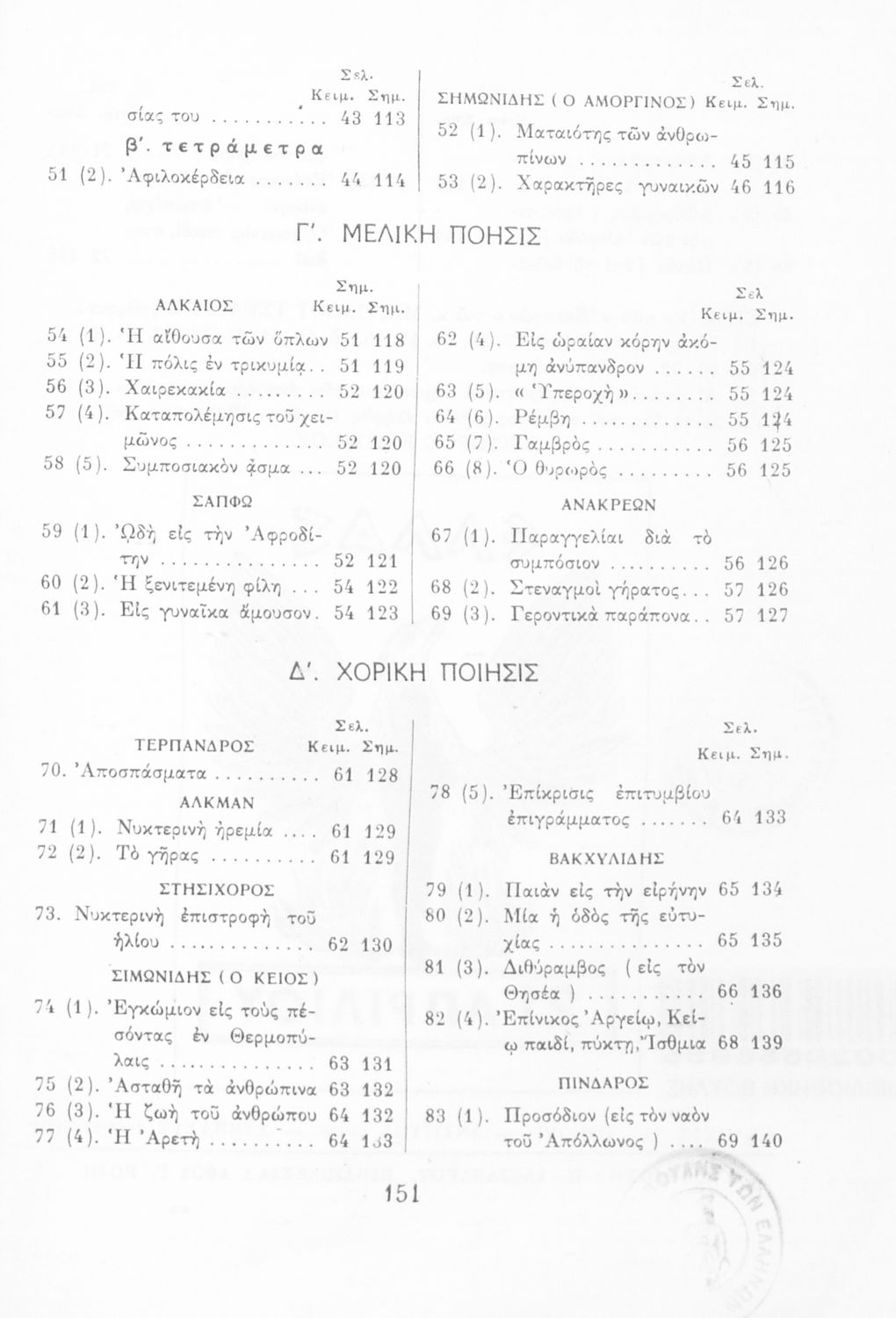 Αρχαίοι Έλληνες Λυρικοί εκλογαί Ε'-ΣΤ΄ Γυμνασίου