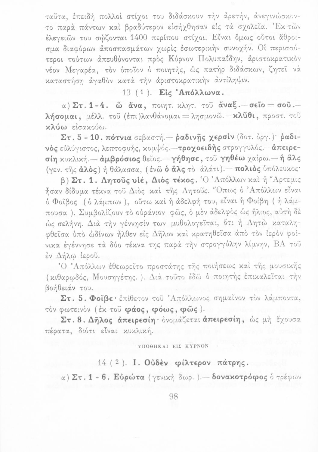 Βαθμίδα εκπαίδευσης: Δευτεροβάθμια Τάξη: Ε' Γυμνασίου / ΣΤ' Γυμνασίου Μάθημα: Αρχαία Ελληνικά Γλώσσα: Καθαρεύουσα Παρουσίαση περιεχομένου: Σχολικό εγχειρίδιο Αρχαίων Ελληνικών Ε΄ και ΣΤ΄ Γυμνασίου που περιλαμβάνει εισαγωγή στη λυρική ποίηση, έργα αρχαίων Ελλήνων ποιητών, ερμηνευτικά και πραγματολογικά σχόλια, και λεξιλογικές παρατηρήσεις. |