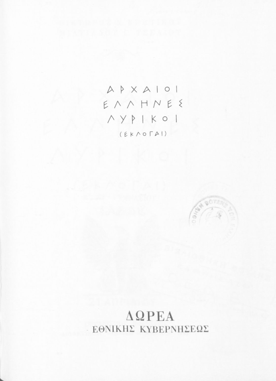 Σχολικό εγχειρίδιο Αρχαίων Ελληνικών Ε΄ και ΣΤ΄ Γυμνασίου που περιλαμβάνει εισαγωγή στη λυρική ποίηση, έργα αρχαίων Ελλήνων ποιητών, ερμηνευτικά και πραγματολογικά σχόλια, και λεξιλογικές παρατηρήσεις.