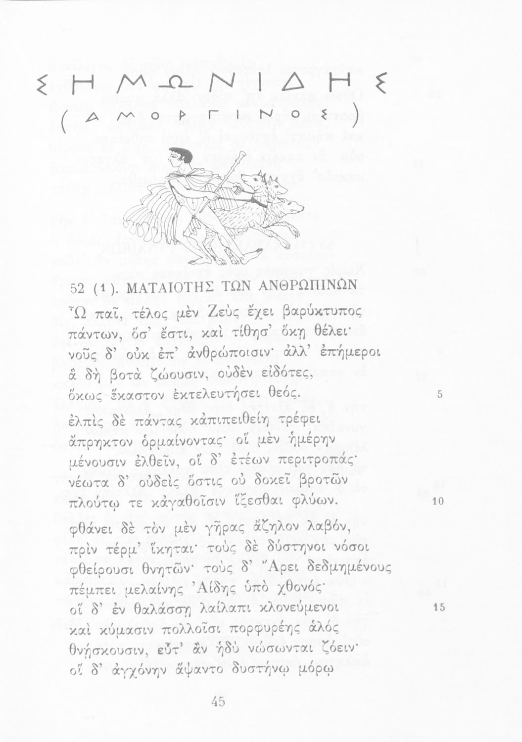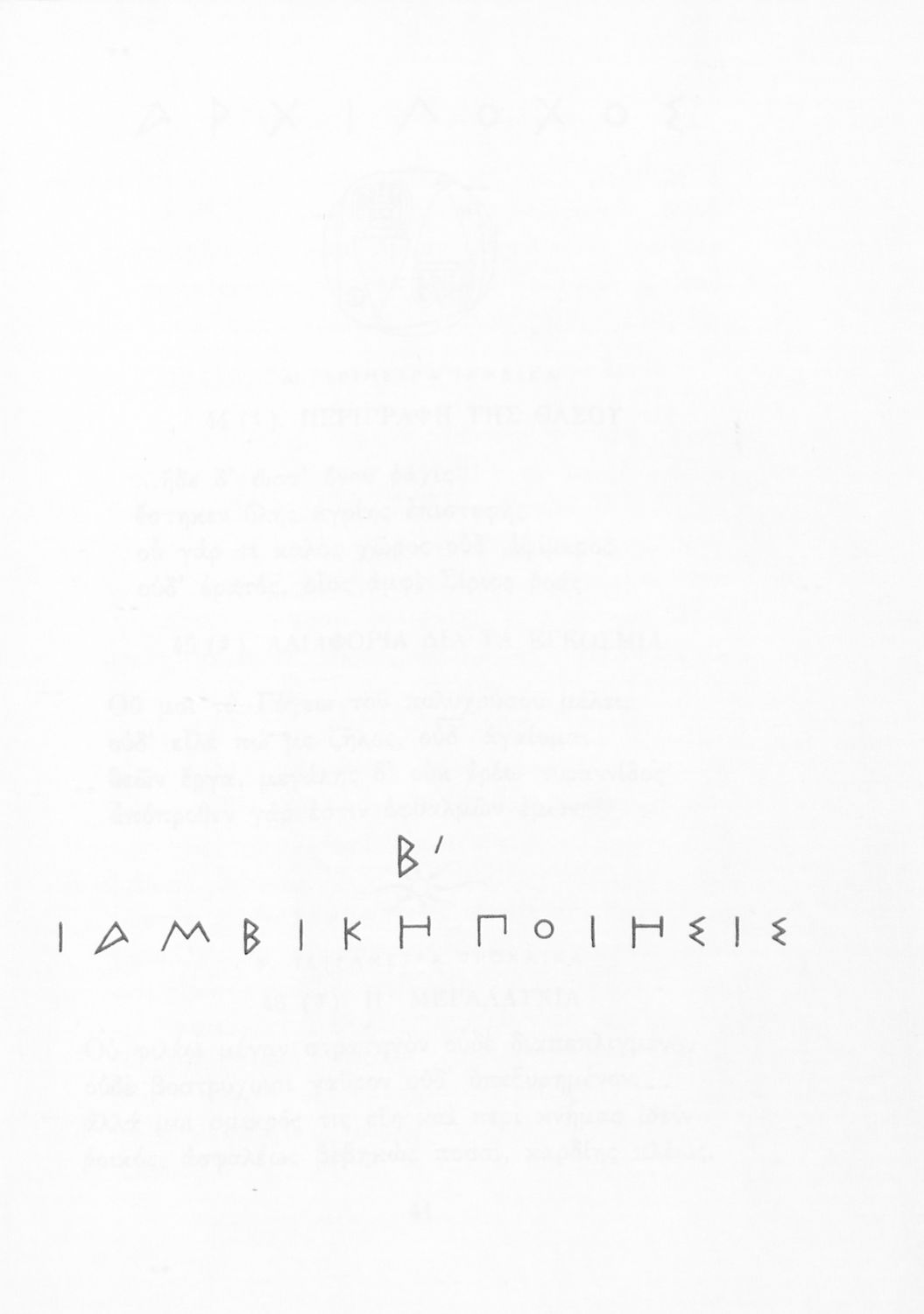 Σχολικό εγχειρίδιο Αρχαίων Ελληνικών Ε΄ Γυμνασίου που περιλαμβάνει αποσπάσματα έργων αρχαίων Ελλήνων λυρικών, πολιτικές και γνωμικές ελεγείες, ιάμβους και επιγράμματα. Περιέχει υπόμνημα με ερμηνευτικά, ...