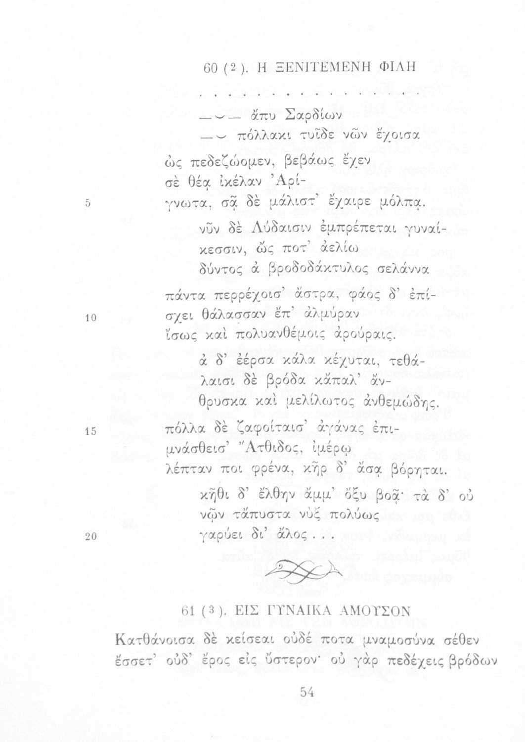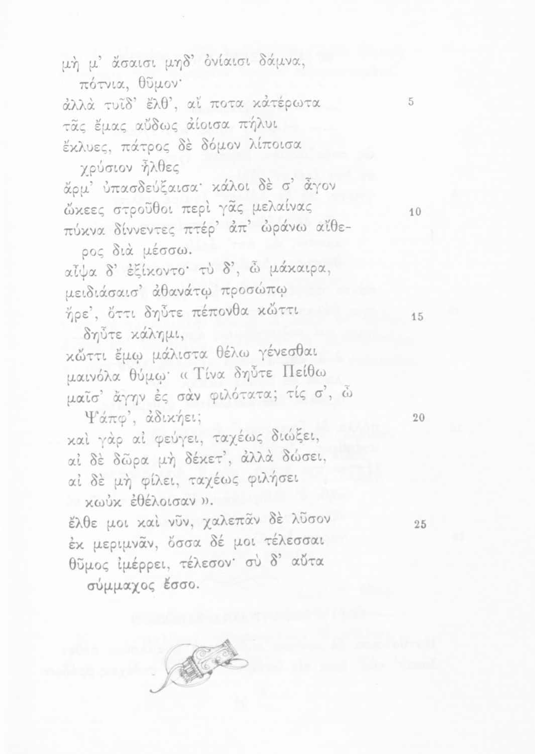 Σχολικό εγχειρίδιο Αρχαίων Ελληνικών Ε΄ και ΣΤ΄ Γυμνασίου που περιλαμβάνει εισαγωγή στη λυρική ποίηση, έργα αρχαίων Ελλήνων ποιητών, ερμηνευτικά και πραγματολογικά σχόλια, και λεξιλογικές παρατηρήσεις.