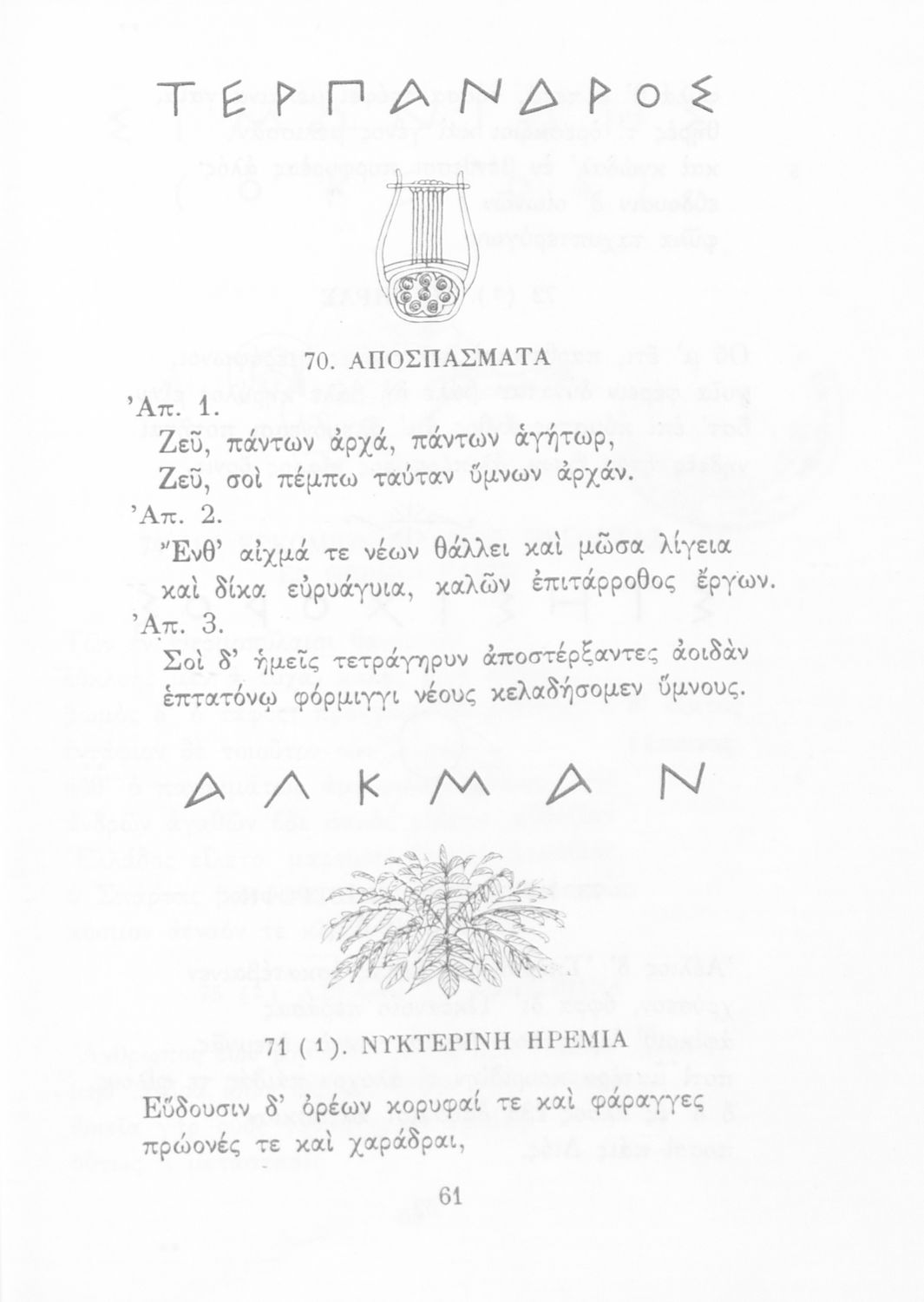 Σχολικό εγχειρίδιο Αρχαίων Ελληνικών για την ΣΤ΄ Γυμνασίου που περιέχει αποσπάσματα αρχαίων Ελλήνων λυρικών, εισαγωγή και ερμηνευτικά σχόλια. Κοσμείται από μικρά διακοσμητικά σχέδια.