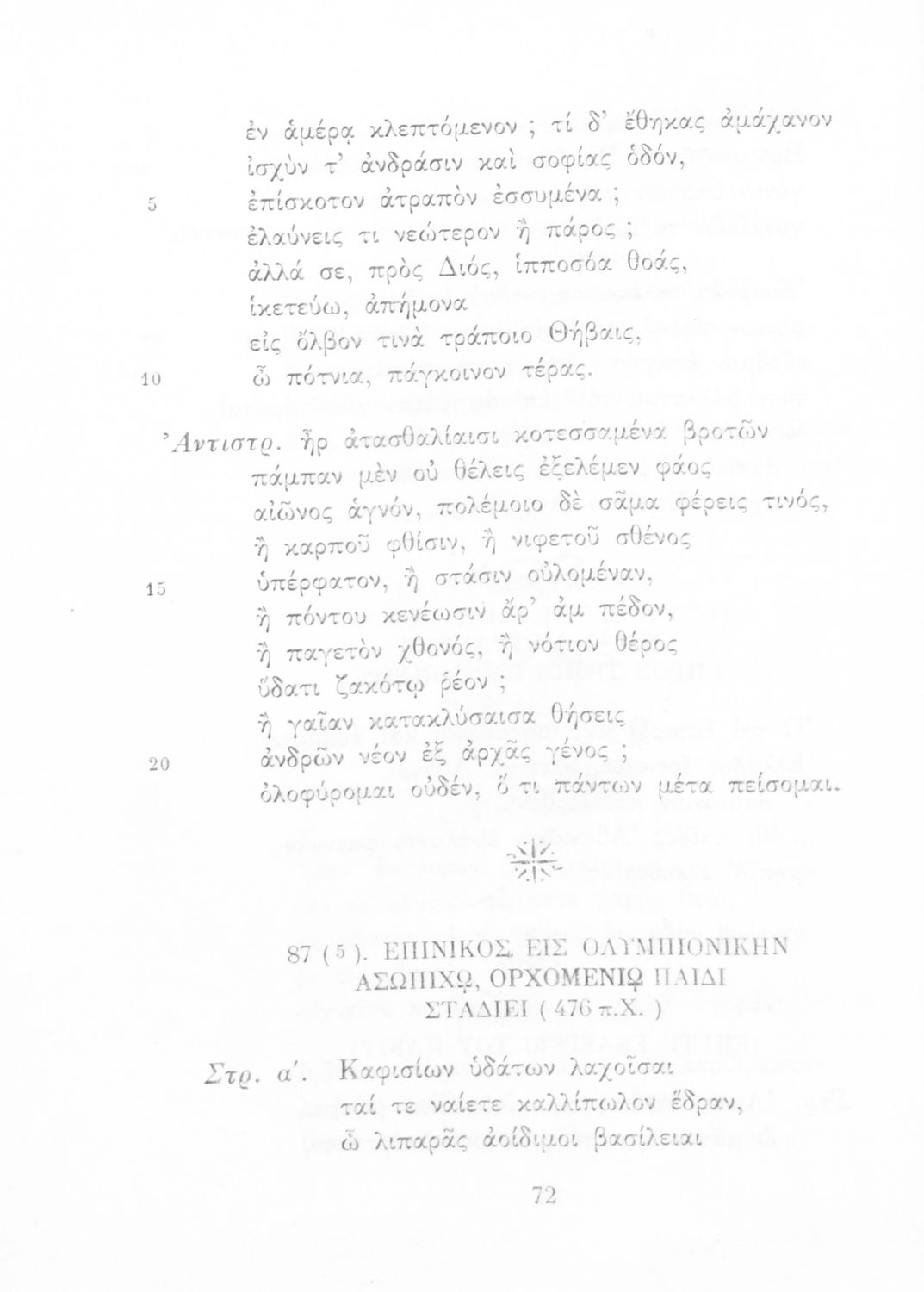 Σχολικό εγχειρίδιο Αρχαίων Ελληνικών Ε΄ Γυμνασίου που περιλαμβάνει εισαγωγή στη λυρική ποίηση, έργα αρχαίων Ελλήνων ποιητών, ερμηνευτικά και πραγματολογικά σχόλια, και λεξιλογικές παρατηρήσεις.