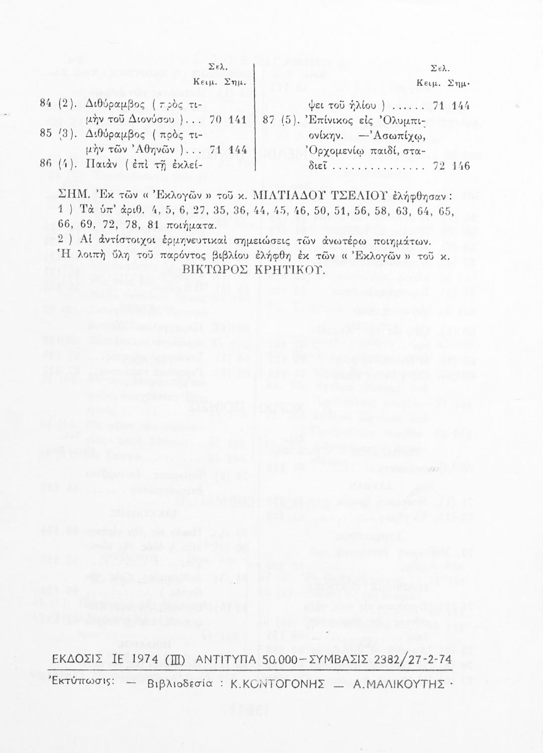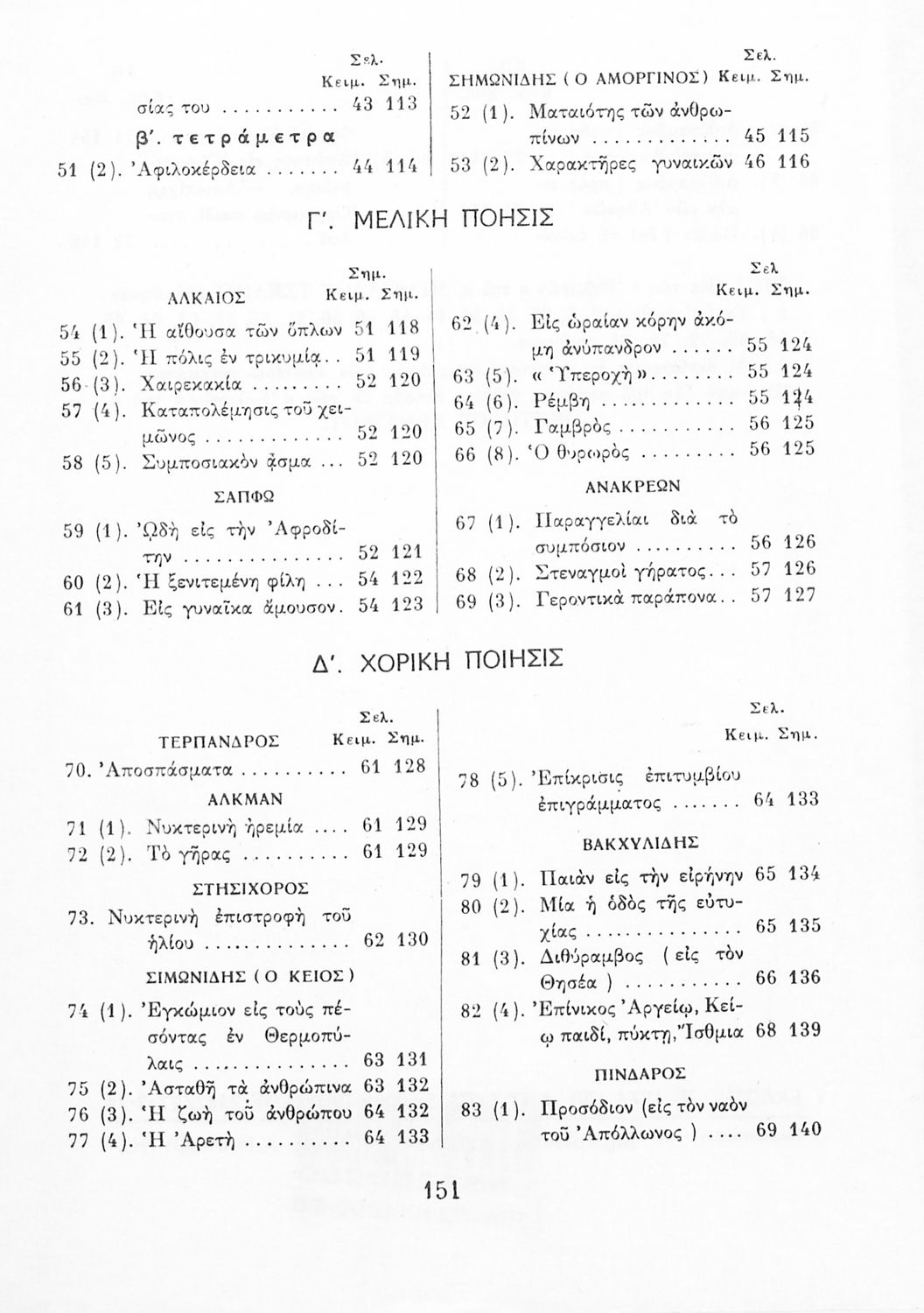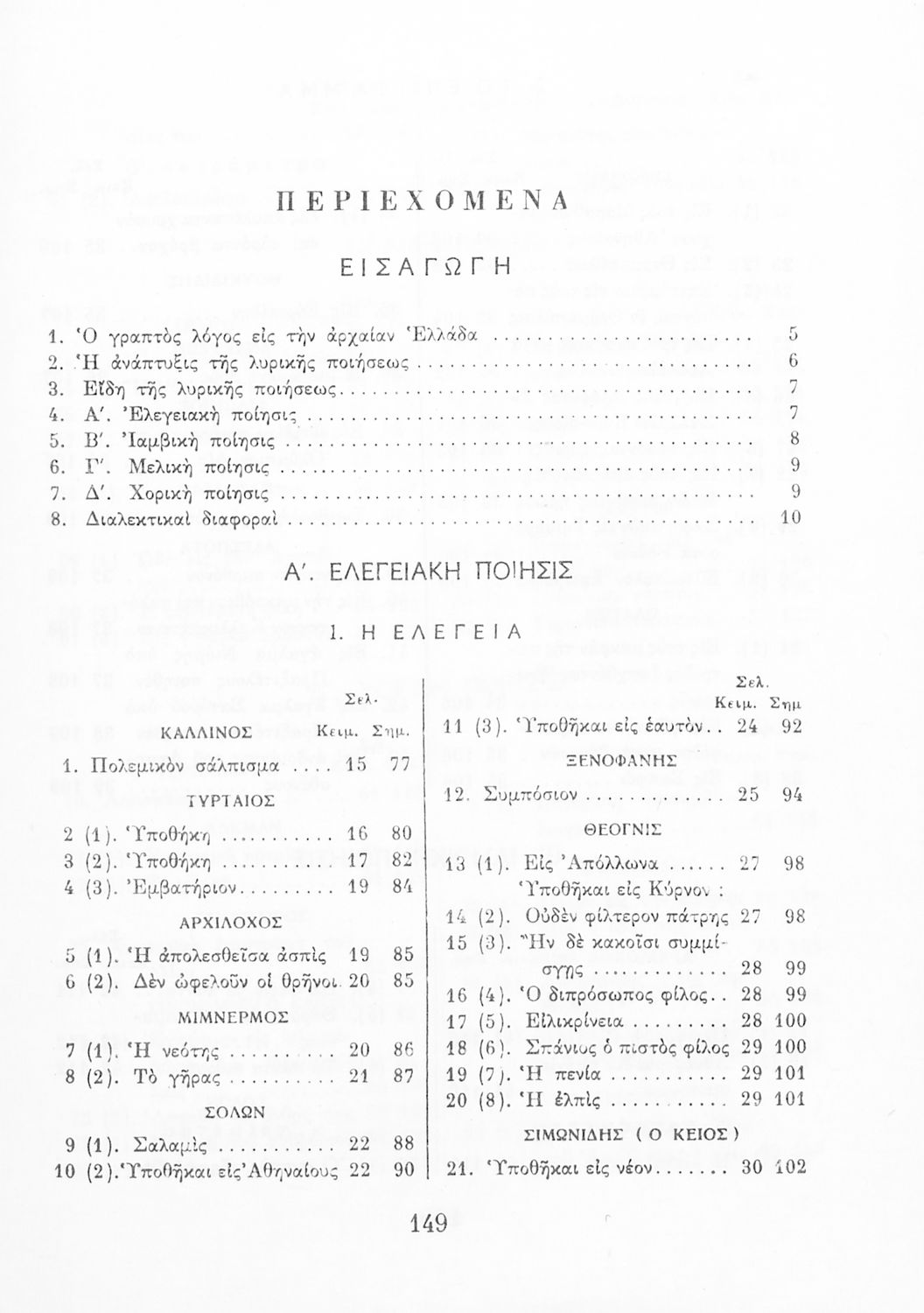 Σχολικό εγχειρίδιο Αρχαίων Ελληνικών ΣΤ΄ Γυμνασίου που περιλαμβάνει εισαγωγή στη λυρική ποίηση, έργα αρχαίων Ελλήνων ποιητών, ερμηνευτικά και πραγματολογικά σχόλια, και λεξιλογικές παρατηρήσεις.