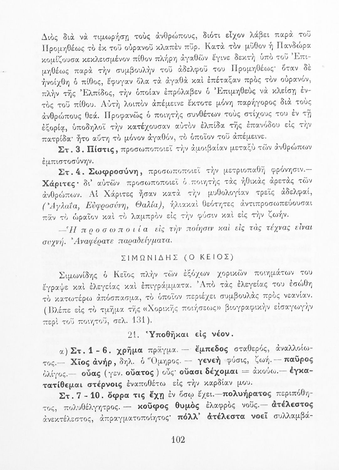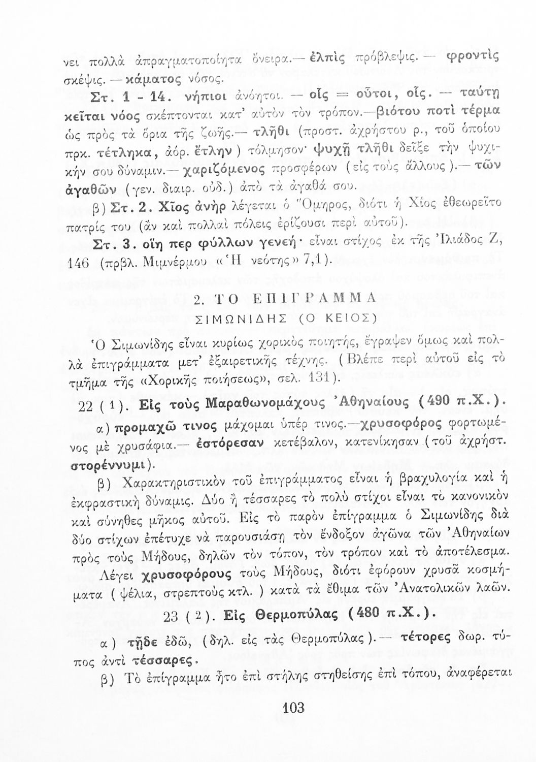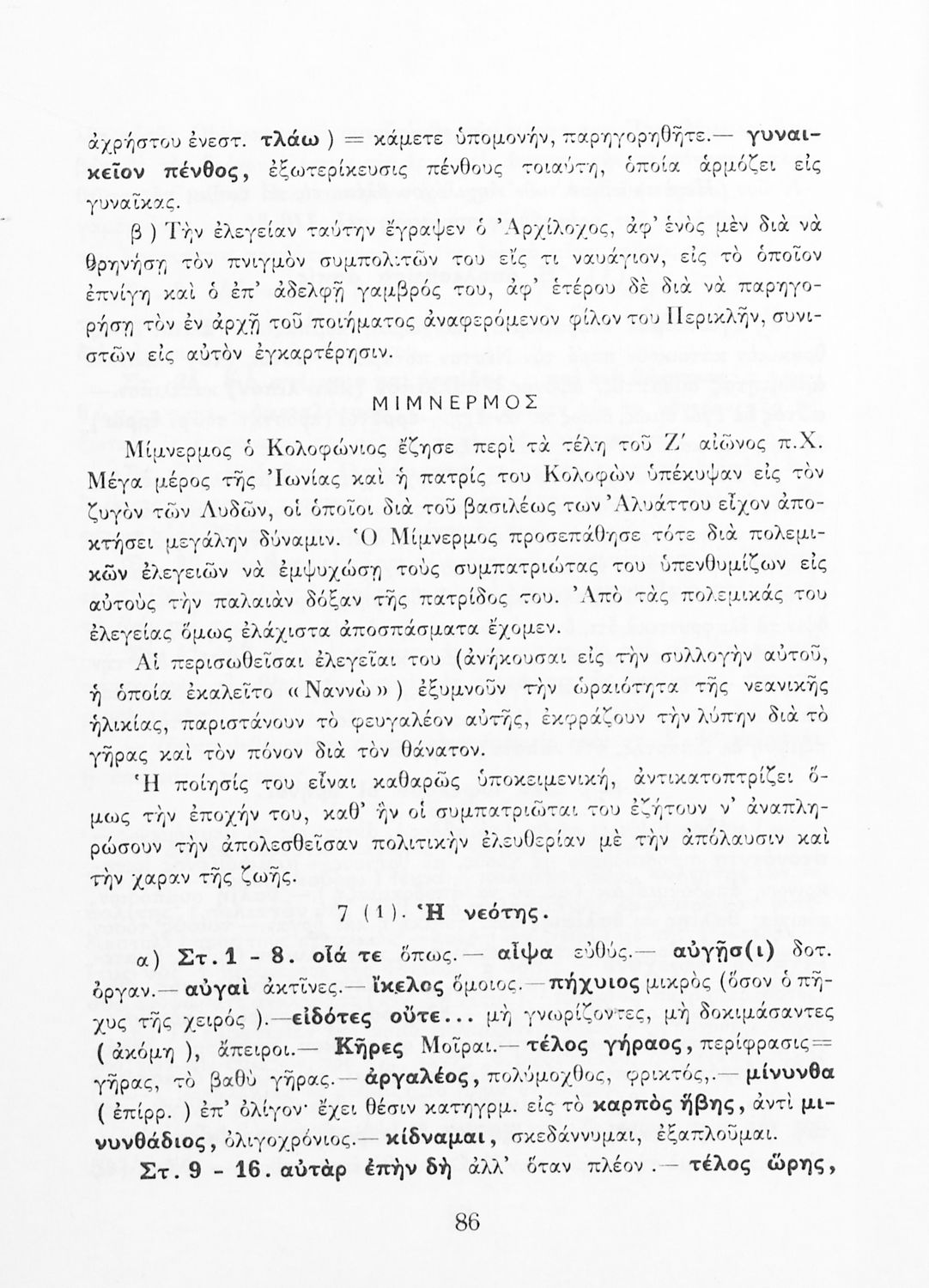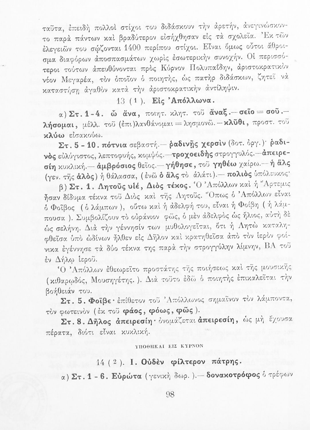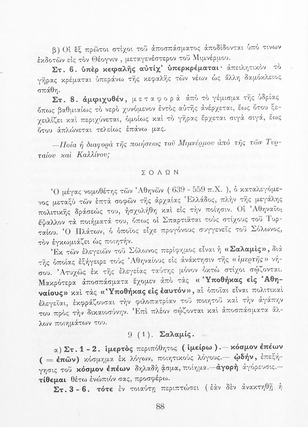 Βαθμίδα εκπαίδευσης: Δευτεροβάθμια Τάξη: ΣΤ' Γυμνασίου Μάθημα: Αρχαία Ελληνικά Γλώσσα: Απλή καθαρεύουσα Παρουσίαση περιεχομένου: Σχολικό εγχειρίδιο Αρχαίων Ελληνικών ΣΤ΄ Γυμνασίου που περιλαμβάνει εισαγωγή στη λυρική ποίηση, έργα αρχαίων Ελλήνων ποιητών, ερμηνευτικά και πραγματολογικά σχόλια, και λεξιλογικές παρατηρήσεις. |