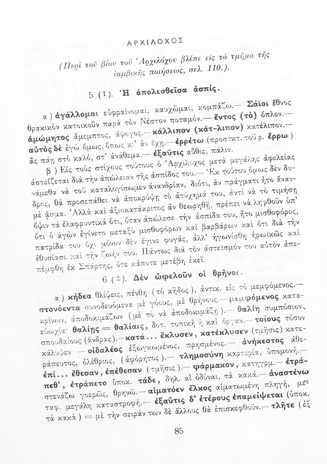 Σχολικό εγχειρίδιο Αρχαίων Ελληνικών ΣΤ΄ Γυμνασίου που περιλαμβάνει εισαγωγή στη λυρική ποίηση, έργα αρχαίων Ελλήνων ποιητών, ερμηνευτικά και πραγματολογικά σχόλια, και λεξιλογικές παρατηρήσεις.