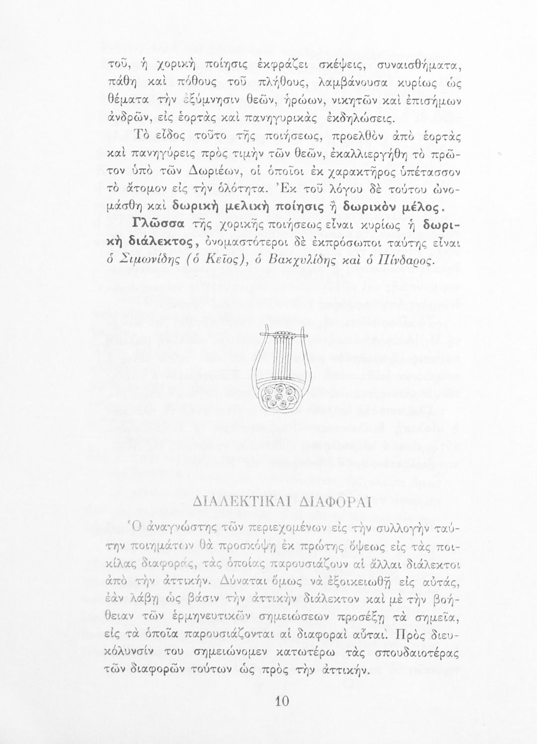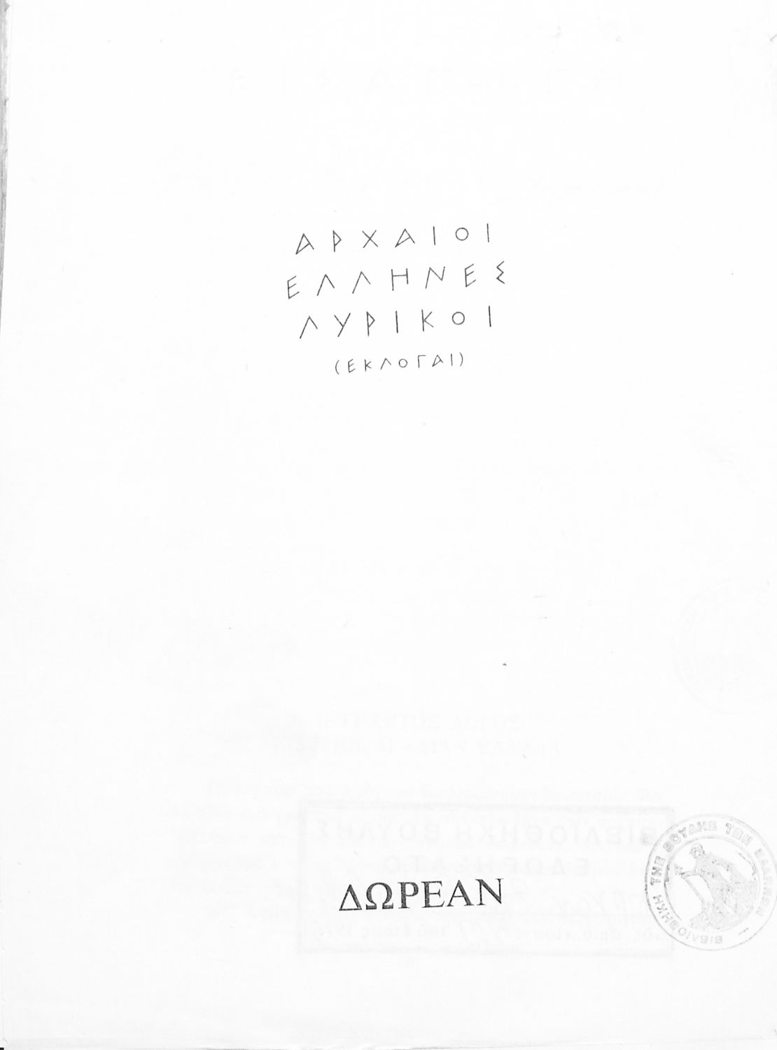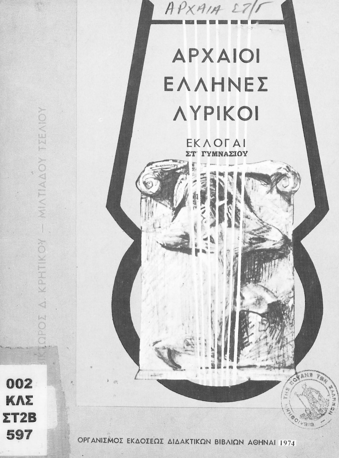 Σχολικό εγχειρίδιο Αρχαίων Ελληνικών ΣΤ΄ Γυμνασίου που περιλαμβάνει εισαγωγή στη λυρική ποίηση, έργα αρχαίων Ελλήνων ποιητών, ερμηνευτικά και πραγματολογικά σχόλια, και λεξιλογικές παρατηρήσεις.