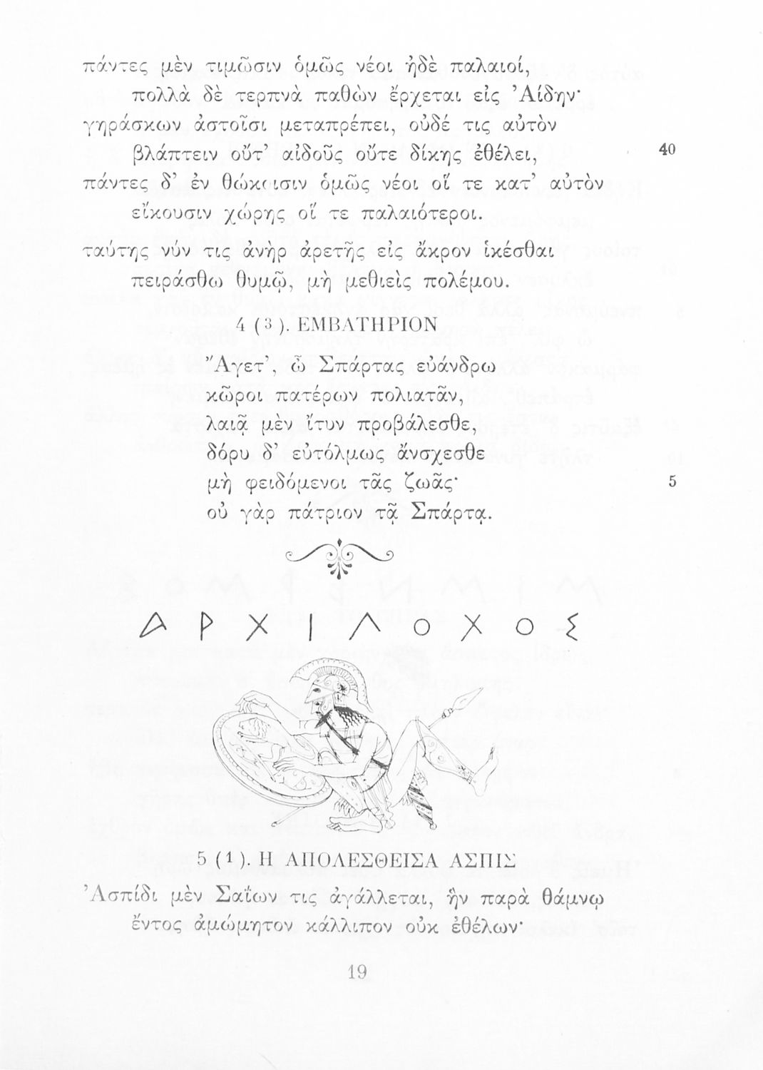 Βαθμίδα εκπαίδευσης: Δευτεροβάθμια Τάξη: ΣΤ' Γυμνασίου Μάθημα: Αρχαία Ελληνικά Γλώσσα: Απλή καθαρεύουσα Παρουσίαση περιεχομένου: Σχολικό εγχειρίδιο Αρχαίων Ελληνικών ΣΤ΄ Γυμνασίου που περιλαμβάνει εισαγωγή στη λυρική ποίηση, έργα αρχαίων Ελλήνων ποιητών, ερμηνευτικά και πραγματολογικά σχόλια, και λεξιλογικές παρατηρήσεις. |