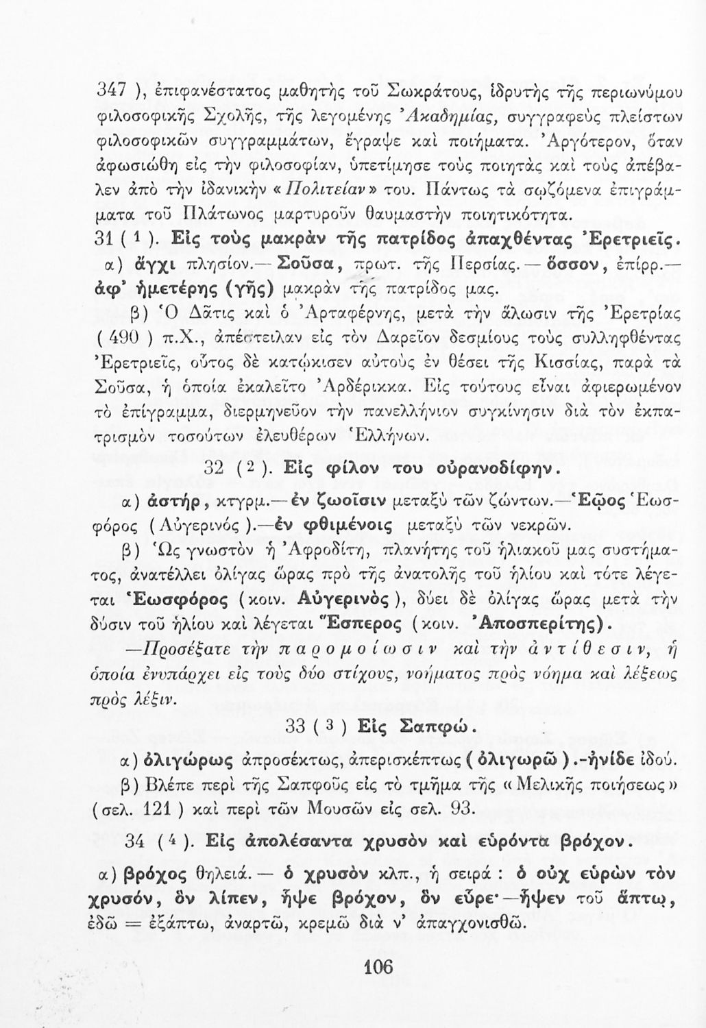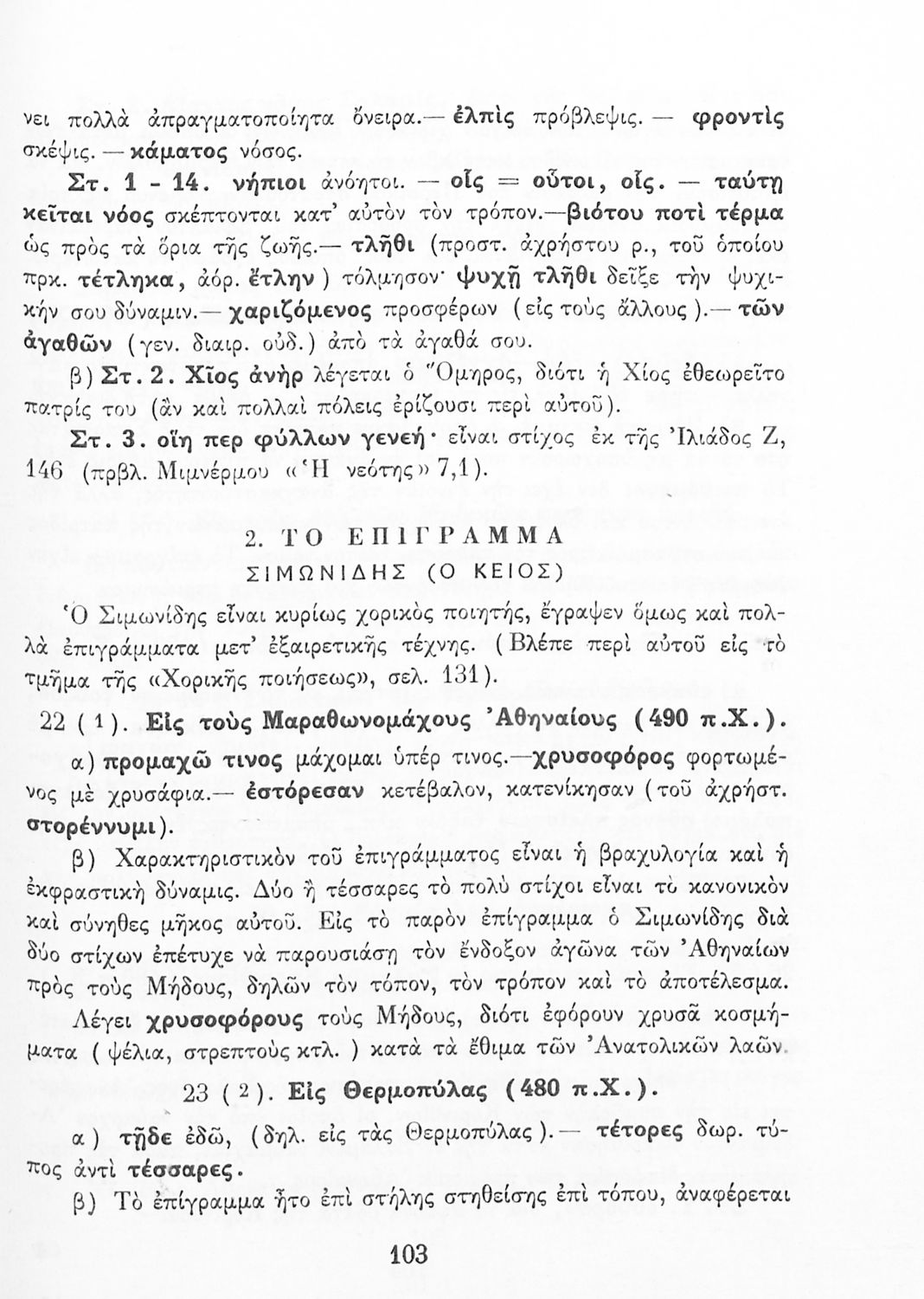 Βαθμίδα εκπαίδευσης: Δευτεροβάθμια Τάξη: ΣΤ' Γυμνασίου Μάθημα: Αρχαία Ελληνικά Γλώσσα: Απλή καθαρεύουσα Παρουσίαση περιεχομένου: Σχολικό εγχειρίδιο Αρχαίων Ελληνικών ΣΤ΄ Γυμνασίου που περιλαμβάνει εισαγωγή στη λυρική ποίηση, έργα αρχαίων Ελλήνων ποιητών, ερμηνευτικά και πραγματολογικά σχόλια, και λεξιλογικές παρατηρήσεις. |