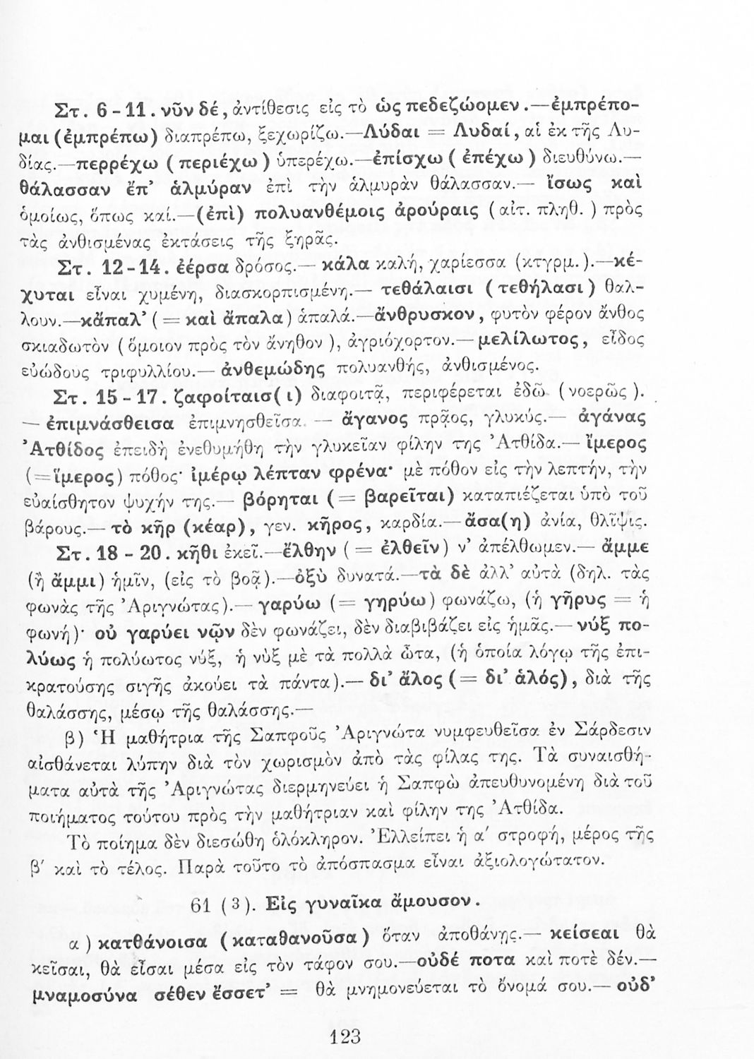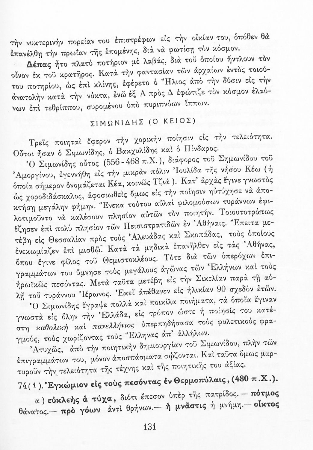Βαθμίδα εκπαίδευσης: Δευτεροβάθμια Τάξη: ΣΤ' Γυμνασίου Μάθημα: Αρχαία Ελληνικά Γλώσσα: Απλή καθαρεύουσα Παρουσίαση περιεχομένου: Σχολικό εγχειρίδιο Αρχαίων Ελληνικών ΣΤ΄ Γυμνασίου που περιλαμβάνει εισαγωγή στη λυρική ποίηση, έργα αρχαίων Ελλήνων ποιητών, ερμηνευτικά και πραγματολογικά σχόλια, και λεξιλογικές παρατηρήσεις. |