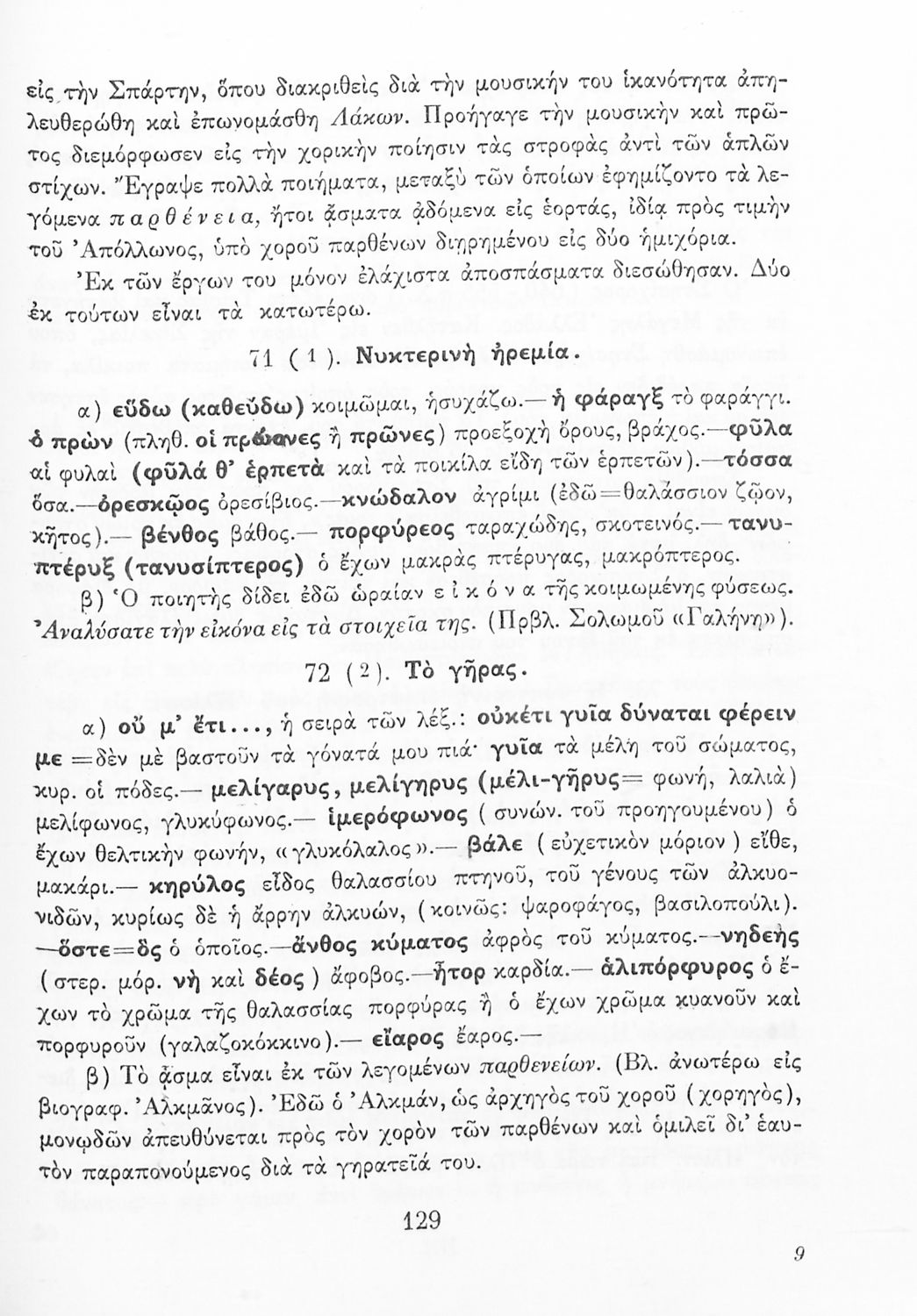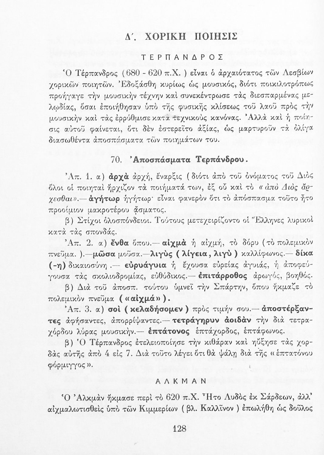 Σχολικό εγχειρίδιο Αρχαίων Ελληνικών ΣΤ΄ Γυμνασίου που περιλαμβάνει εισαγωγή στη λυρική ποίηση, έργα αρχαίων Ελλήνων ποιητών, ερμηνευτικά και πραγματολογικά σχόλια, και λεξιλογικές παρατηρήσεις.