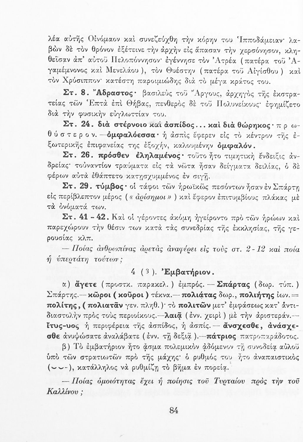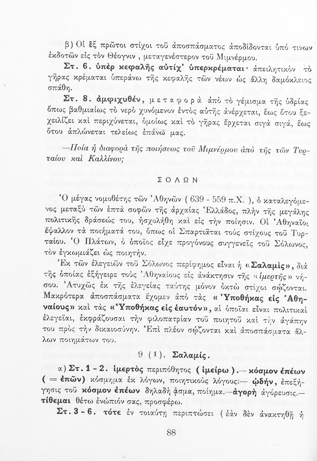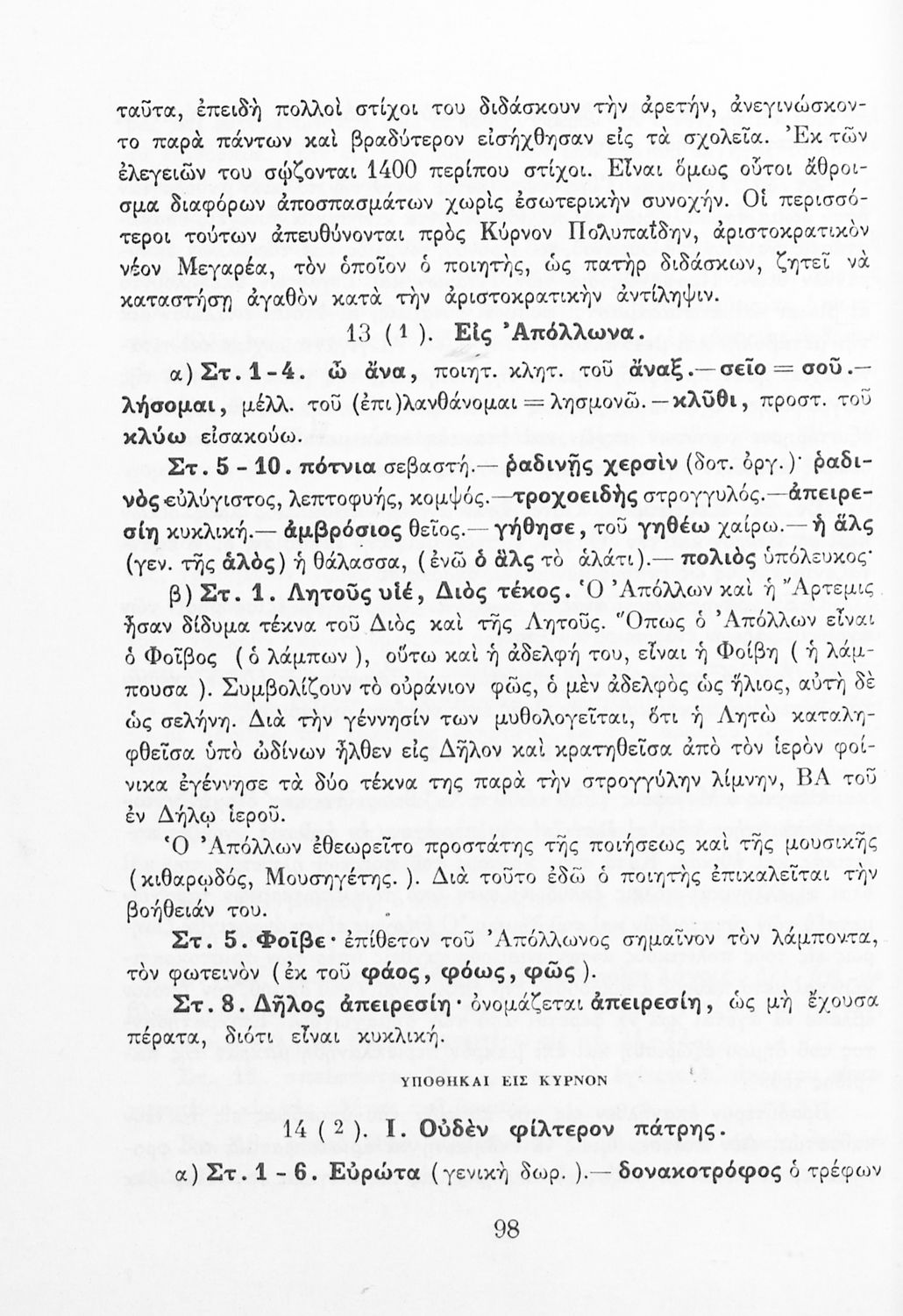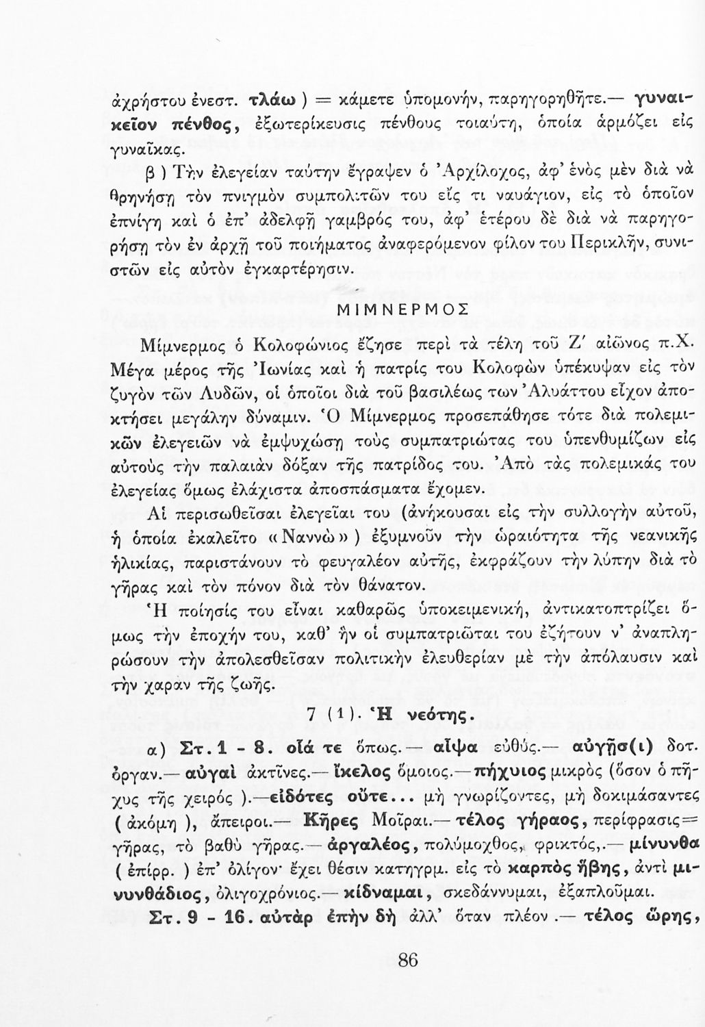 Σχολικό εγχειρίδιο Αρχαίων Ελληνικών που περιέχει αποσπάσματα αρχαίων Ελλήνων λυρικών, εισαγωγή και ερμηνευτικά σχόλια. Κοσμείται από μικρά διακοσμητικά σχέδια.