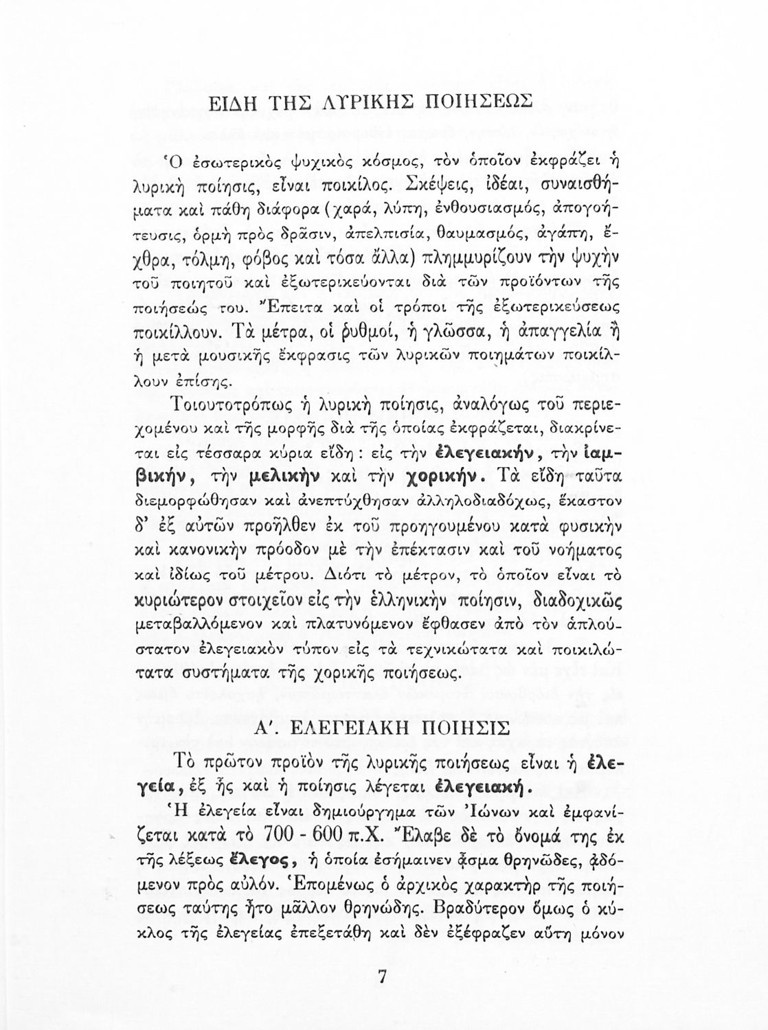 Βαθμίδα εκπαίδευσης: Δευτεροβάθμια Τάξη: ΣΤ' Γυμνασίου Μάθημα: Αρχαία Ελληνικά Γλώσσα: Απλή καθαρεύουσα Παρουσίαση περιεχομένου: Σχολικό εγχειρίδιο Αρχαίων Ελληνικών ΣΤ΄ Γυμνασίου που περιλαμβάνει εισαγωγή στη λυρική ποίηση, έργα αρχαίων Ελλήνων ποιητών, ερμηνευτικά και πραγματολογικά σχόλια, και λεξιλογικές παρατηρήσεις. |