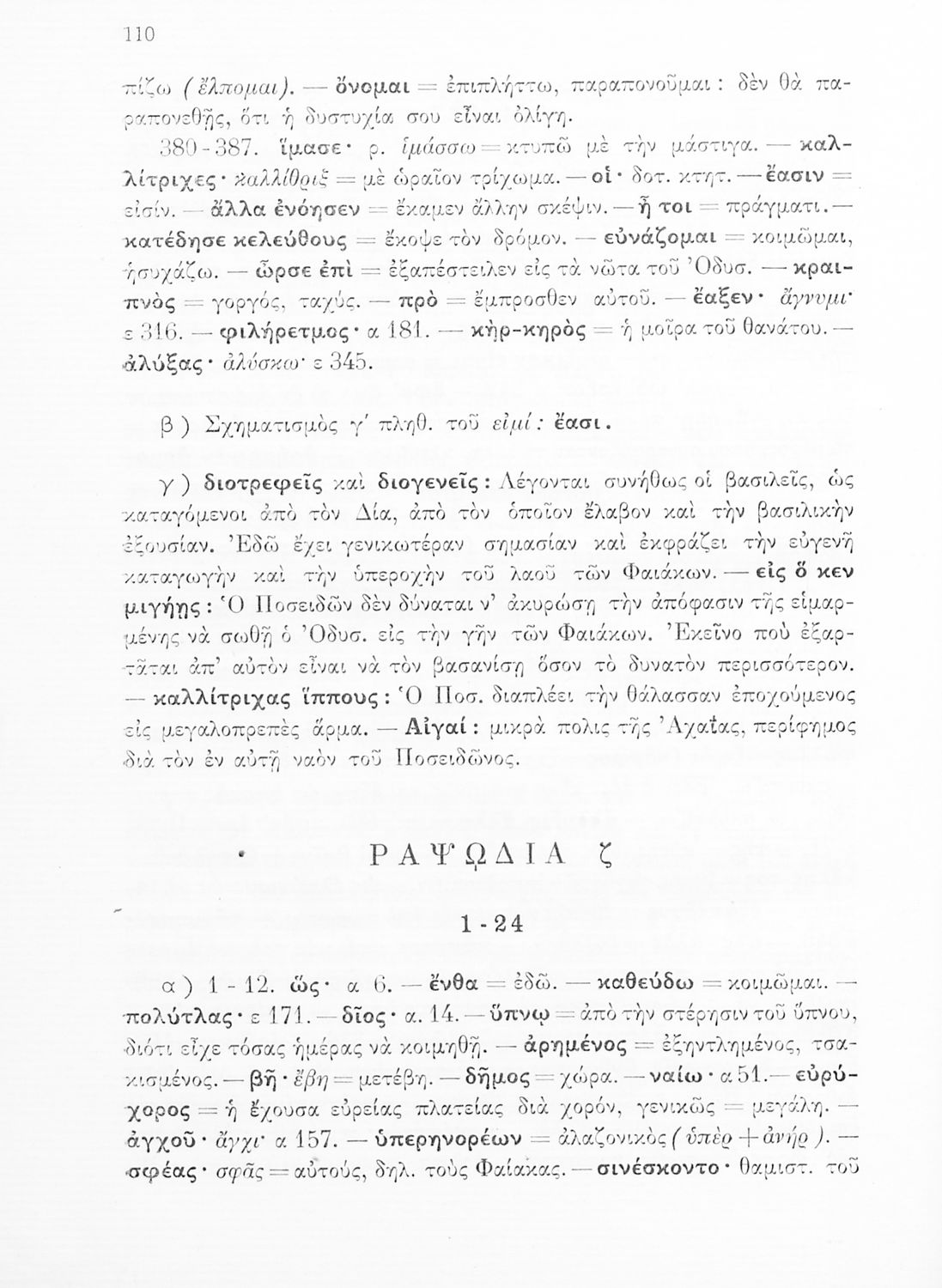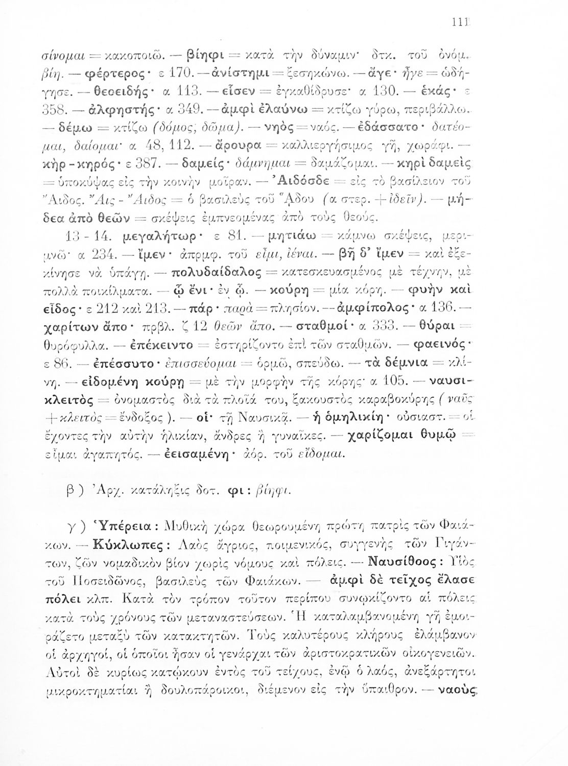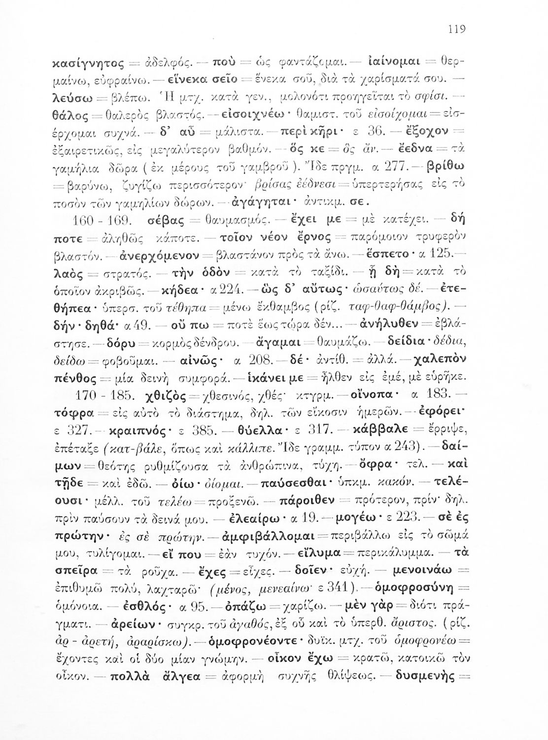 Σχολικό εγχειρίδιο Αρχαίων Ελληνικών Γυμνασίου που περιλαμβάνει μετάφραση της Οδύσσειας και λεξιλόγιο.