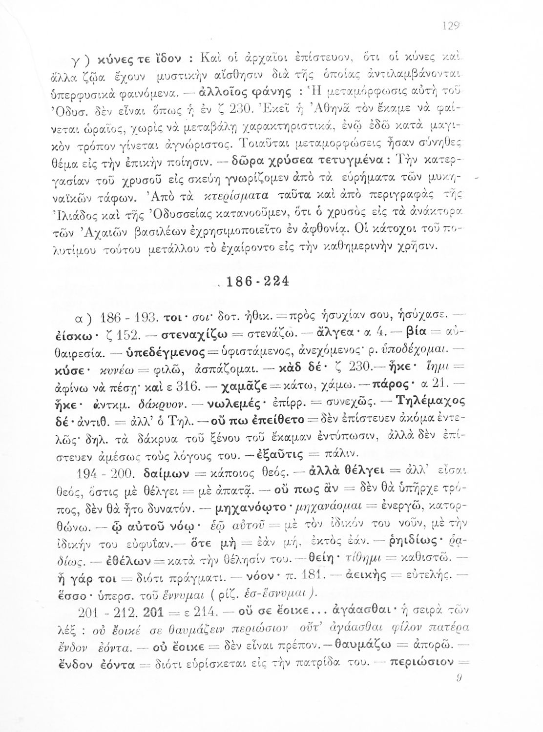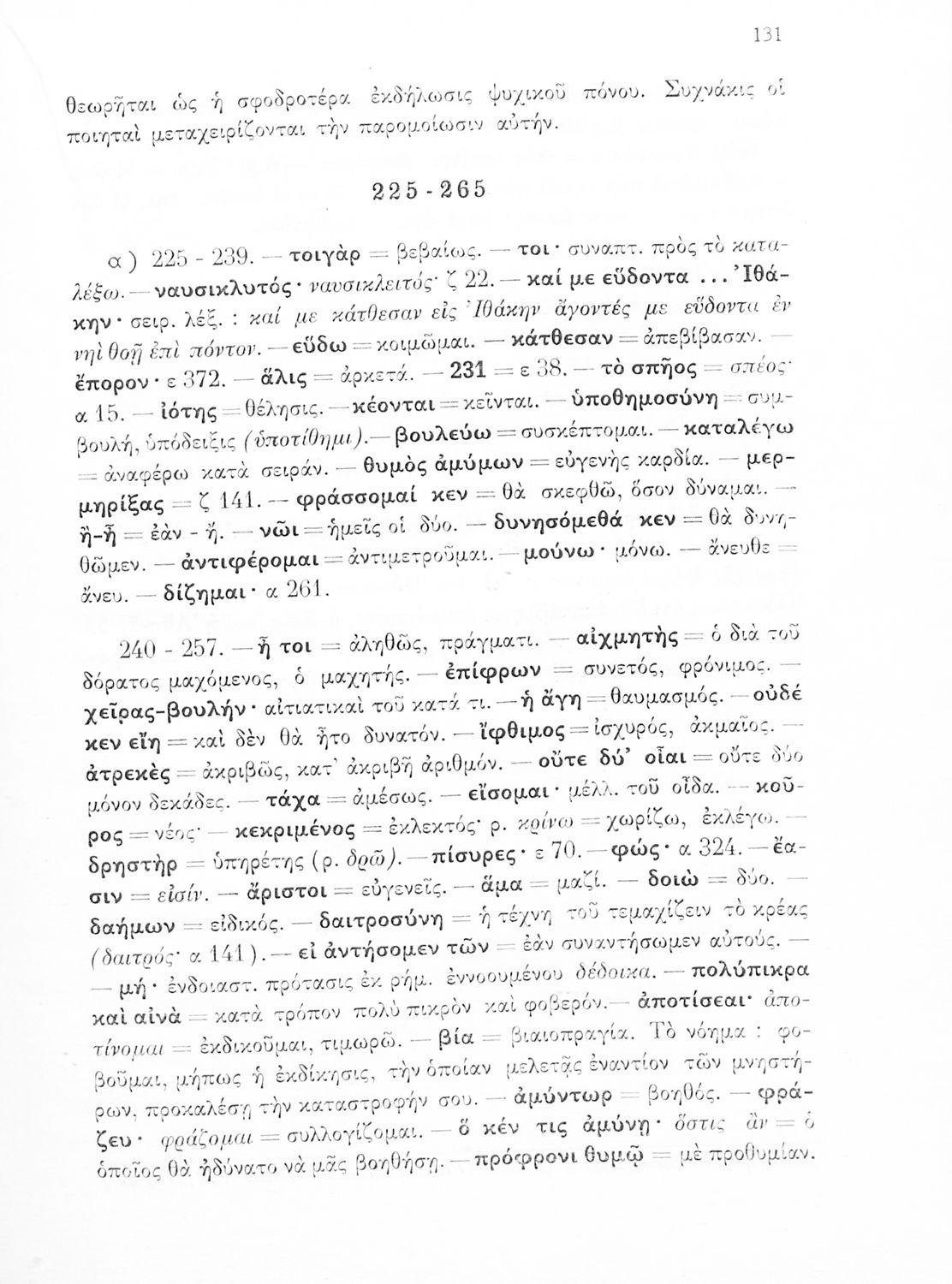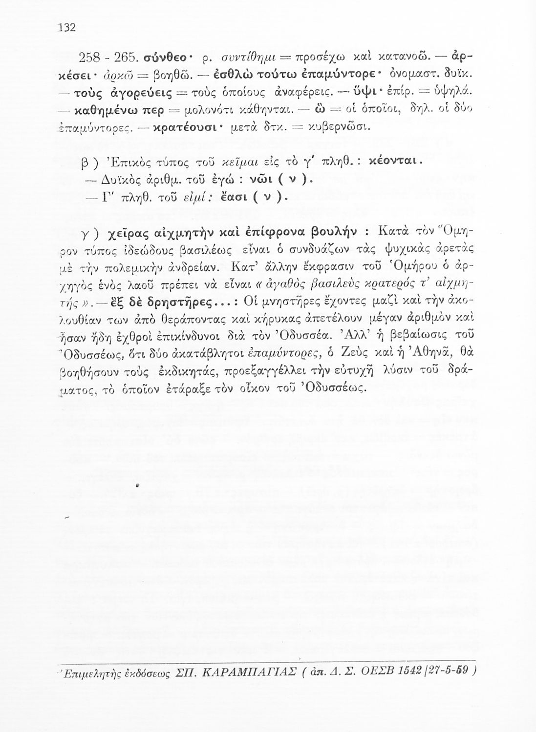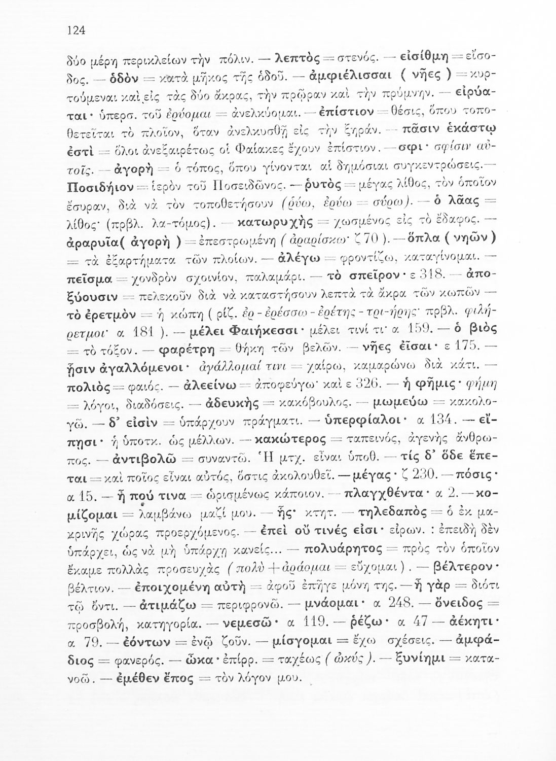 Σχολικό εγχειρίδιο Αρχαίων Ελληνικών Γυμνασίου που περιλαμβάνει μετάφραση της Οδύσσειας και λεξιλόγιο.