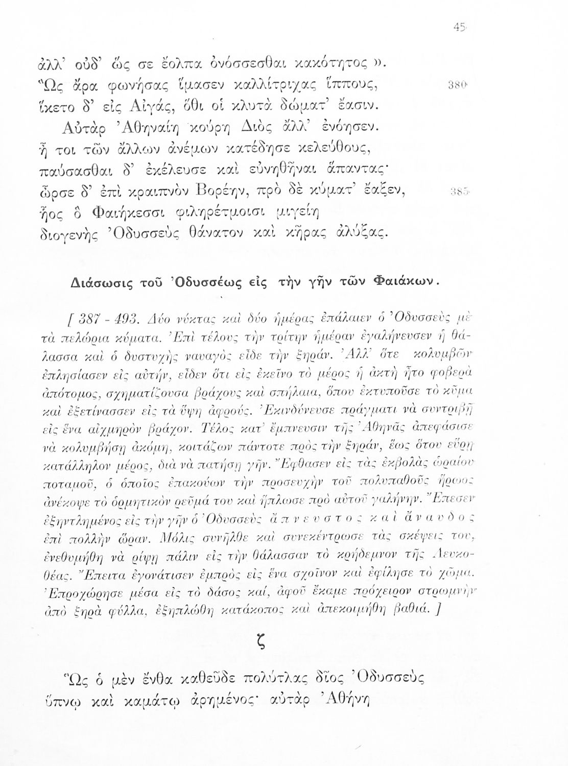 Σχολικό εγχειρίδιο της Δευτεροβάθμιας Εκπαίδευσης για το μάθημα των Αρχαίων Ελληνικών. Περιέχει ραψωδίες από την Οδύσσεια του Ομήρου με ερμηνευτικά σχόλια.