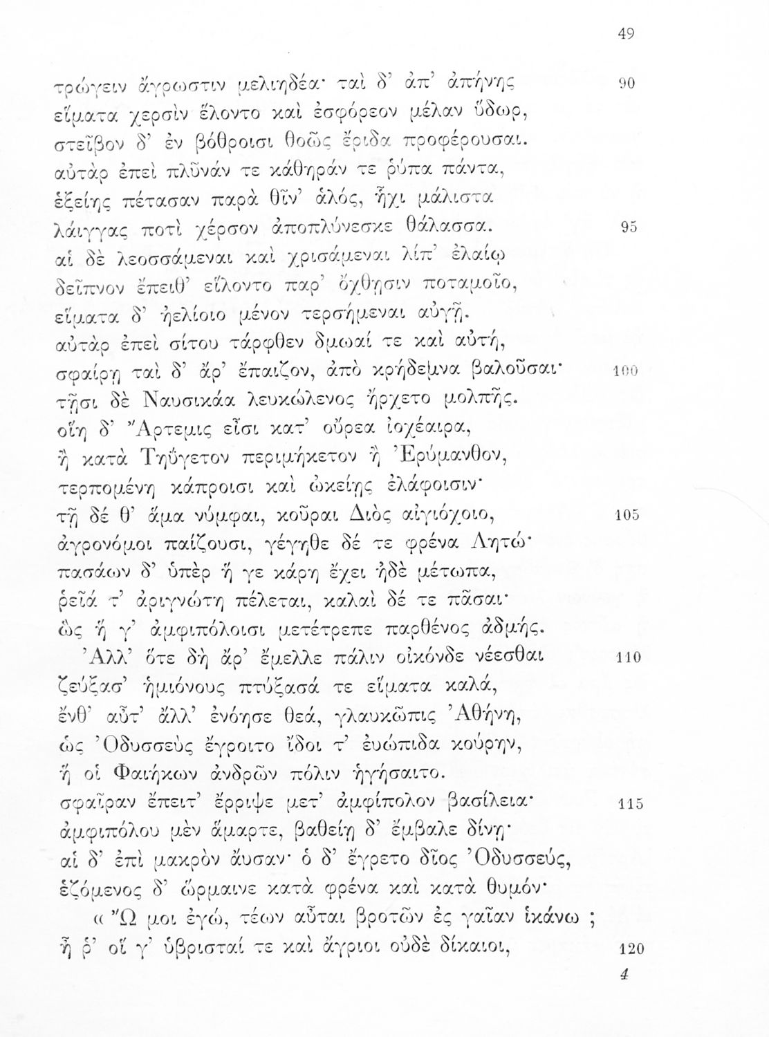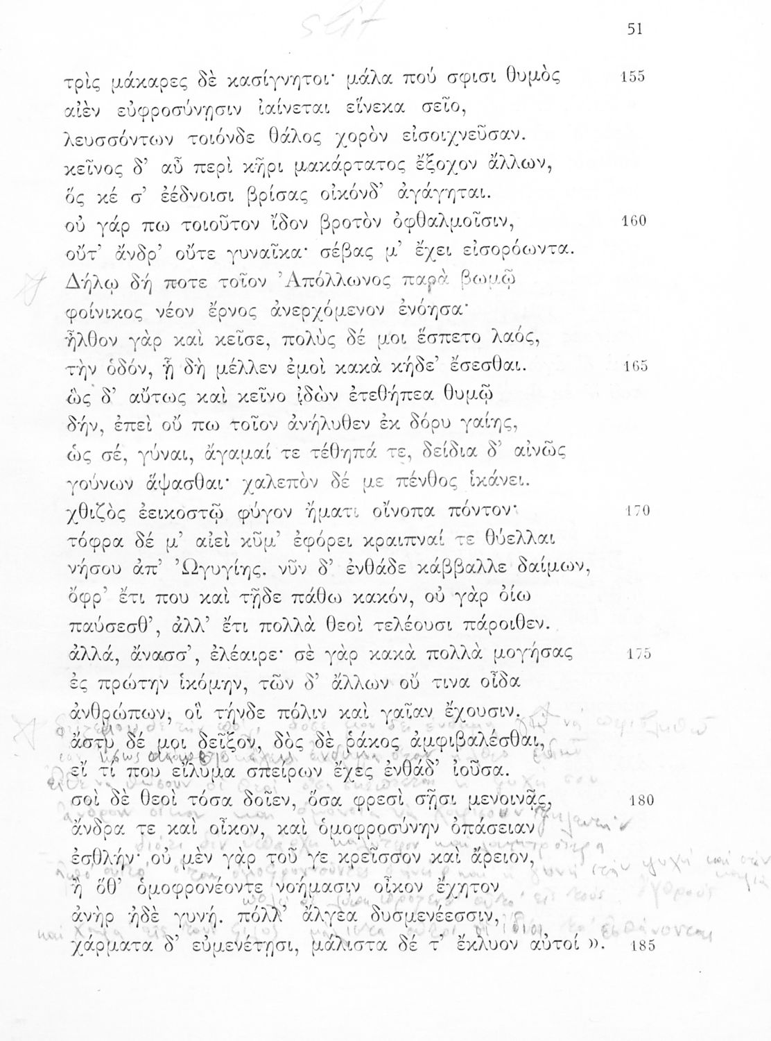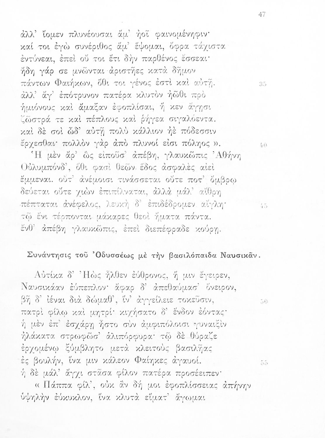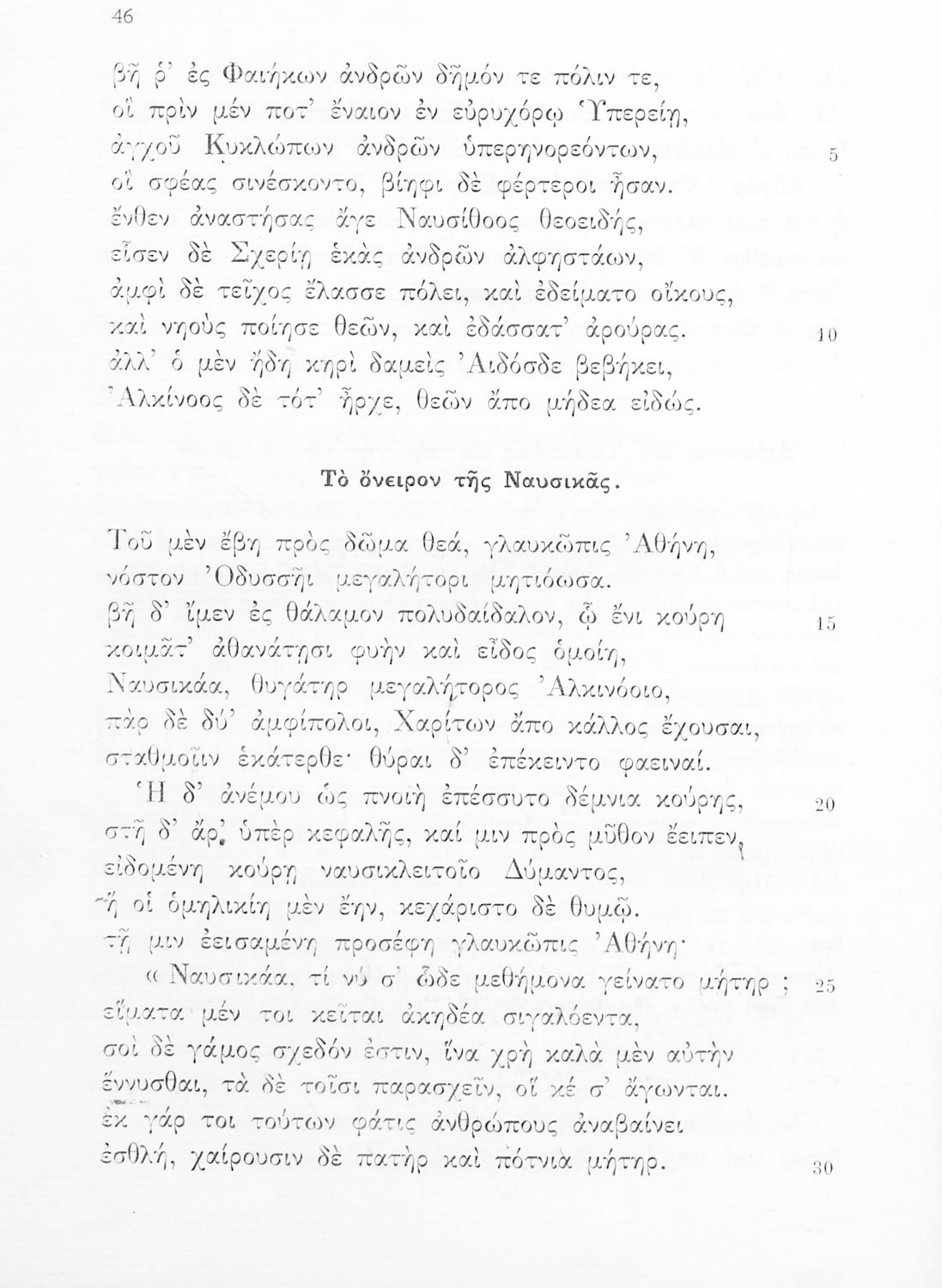 Σχολικό εγχειρίδιο της Ε΄ Γυμνασίου για το μάθημα των Αρχαίων Ελληνικών. Περιέχει αποσπάσματα από τις ραψωδίες της Οδύσσειας, ερμηνευτικά και πραγματολογικά σχόλια και τις γραμματικές παρατηρήσεις.